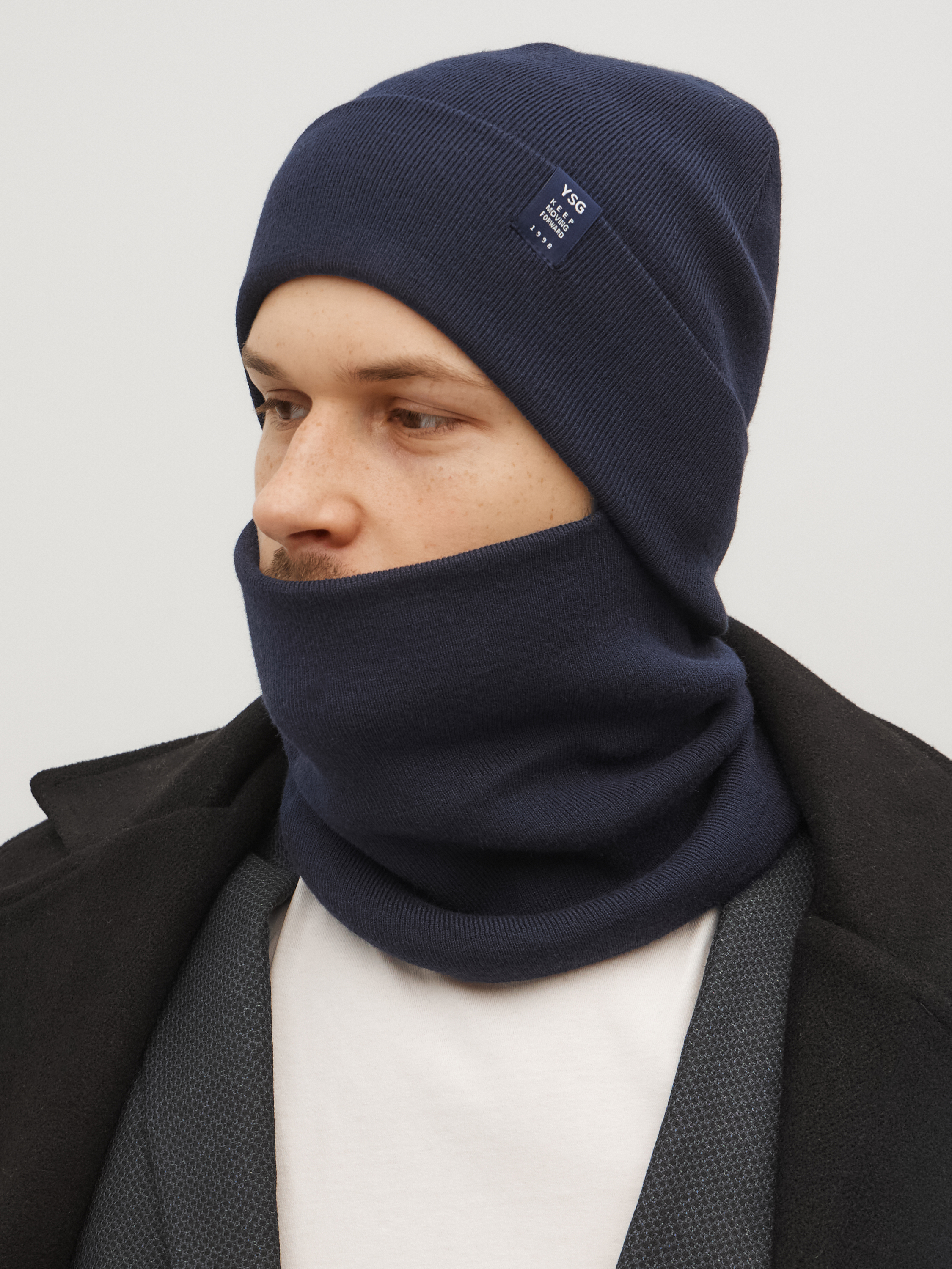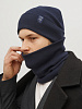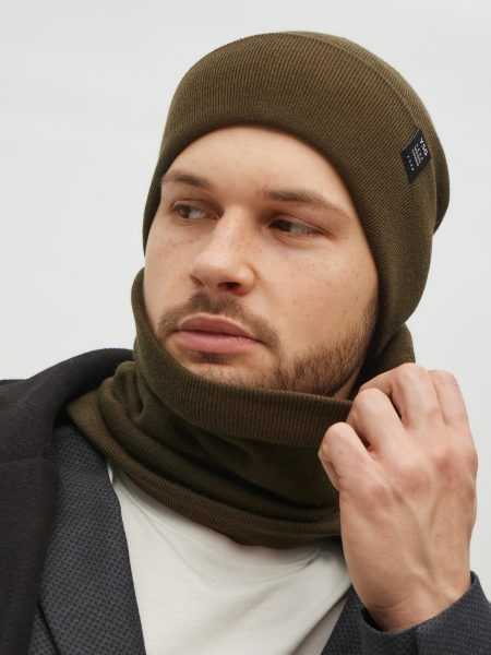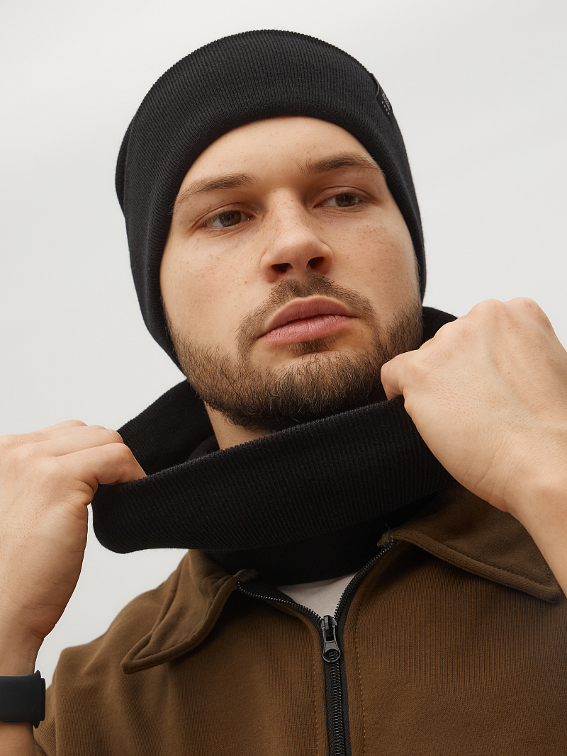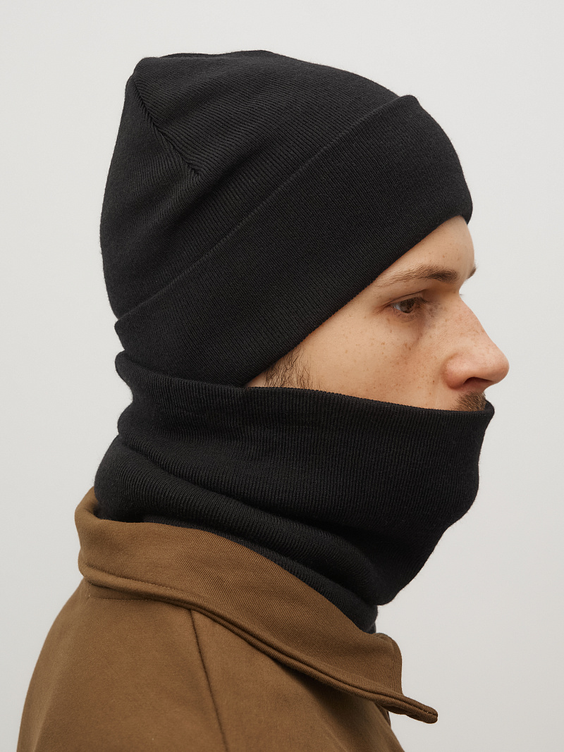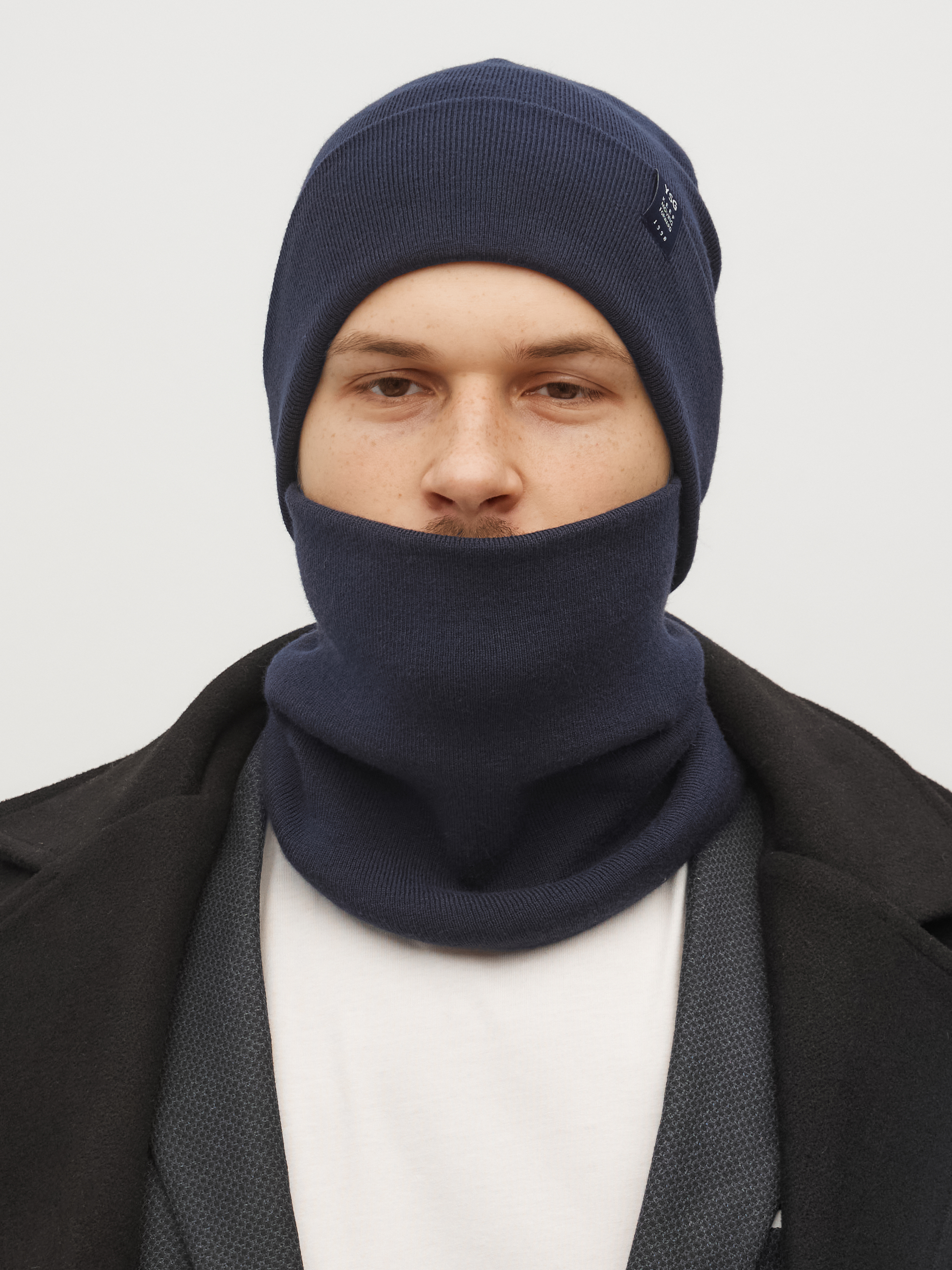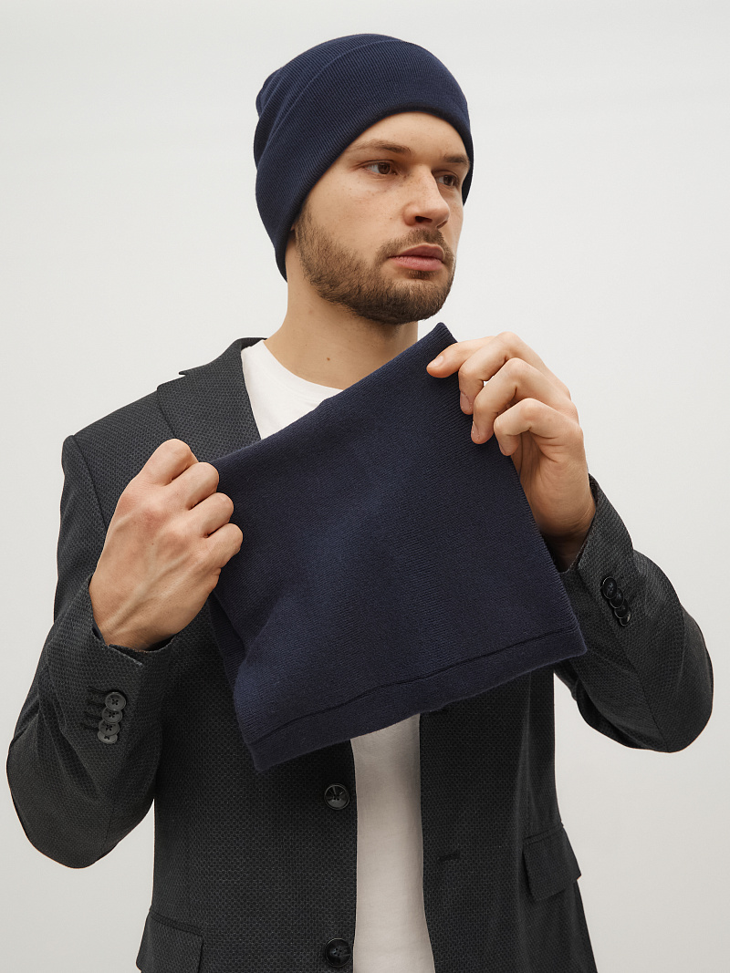 Классический осенне - зимний мужской комплект двойной с кашемиром. Шапка + удобный снуд-труба.