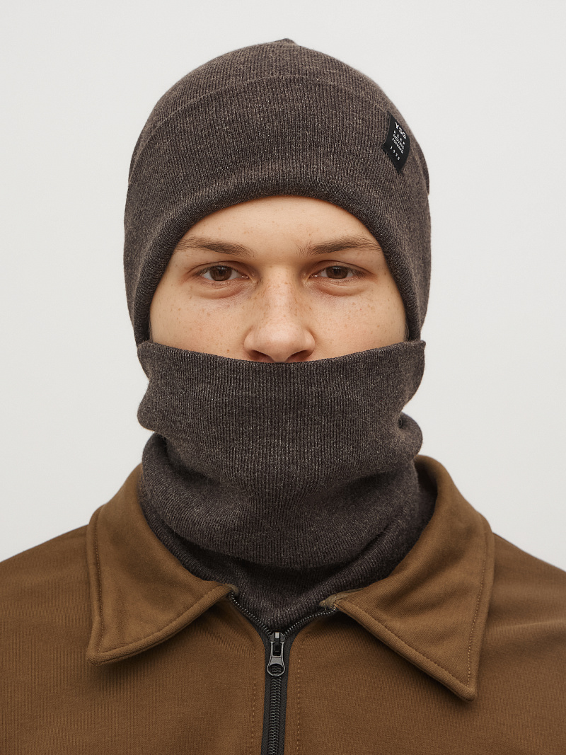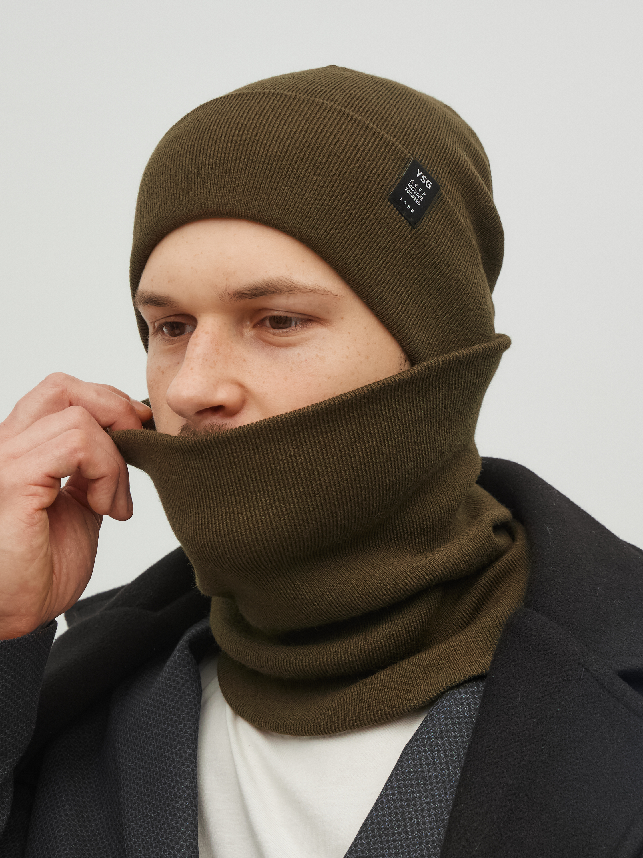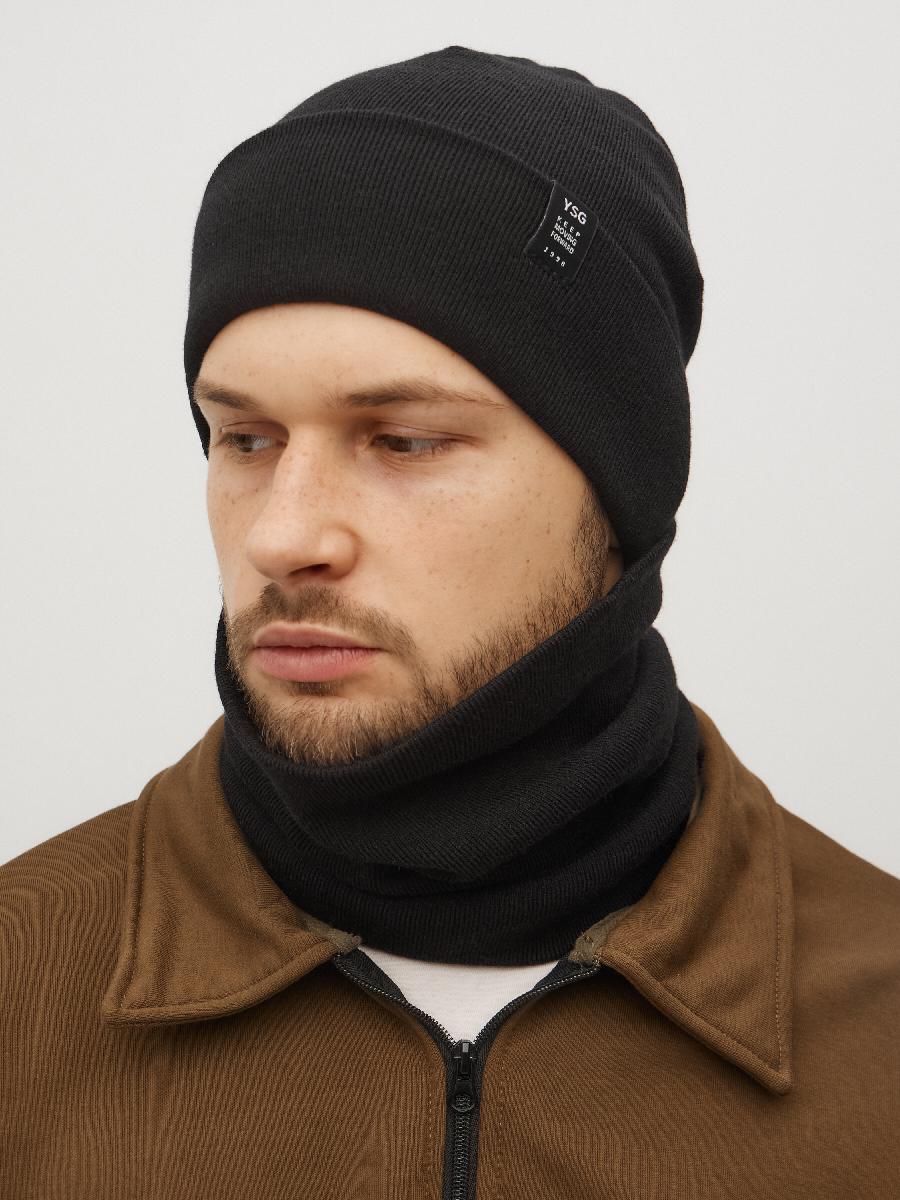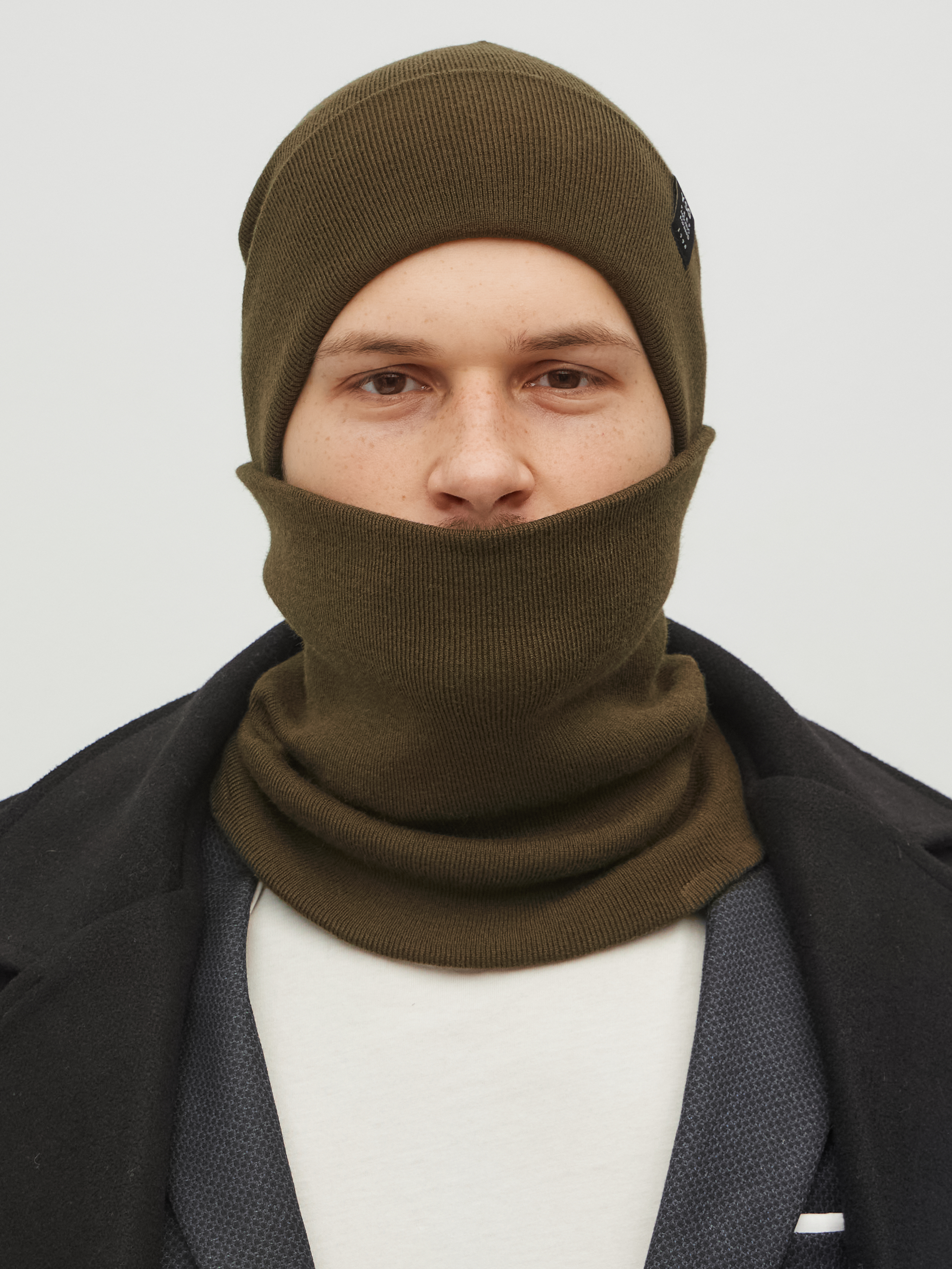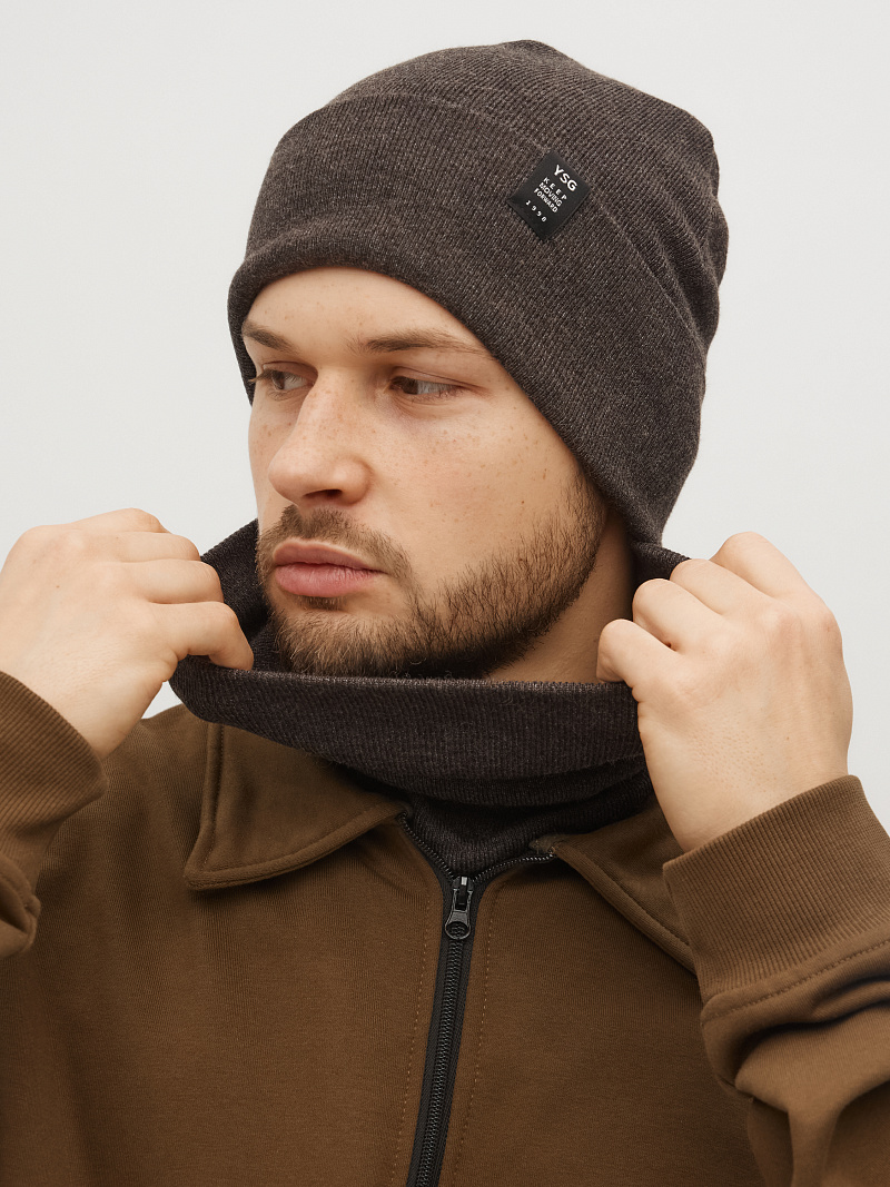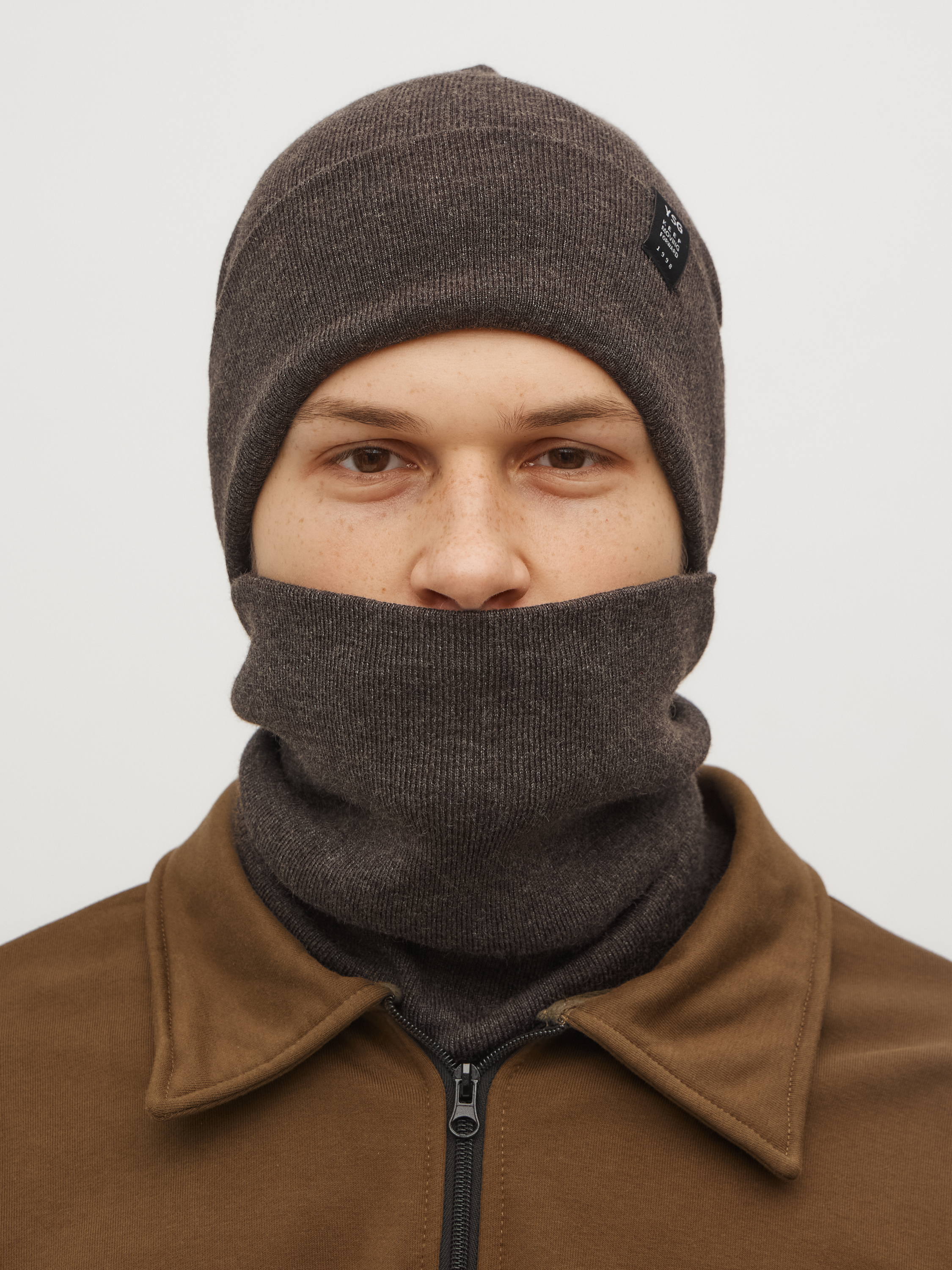 Классический осенне - зимний мужской комплект двойной с кашемиром. Шапка + удобный снуд-труба.