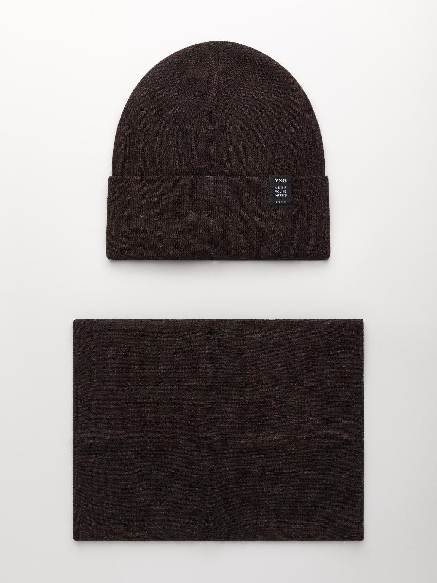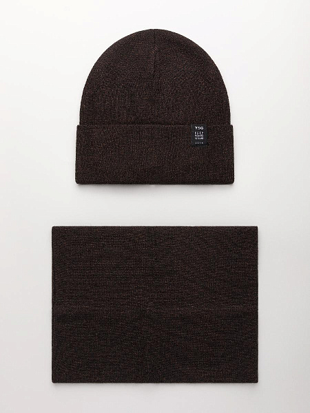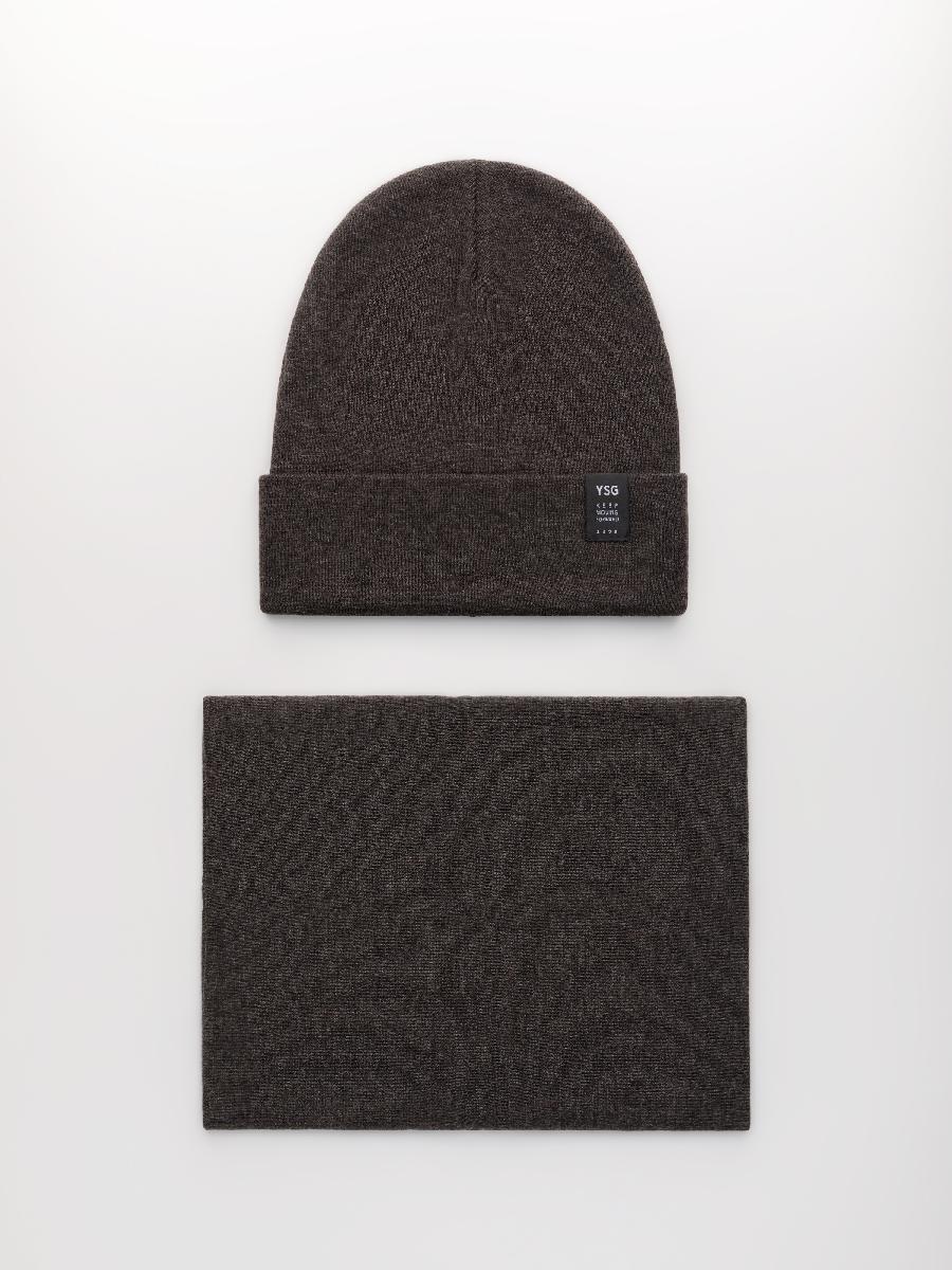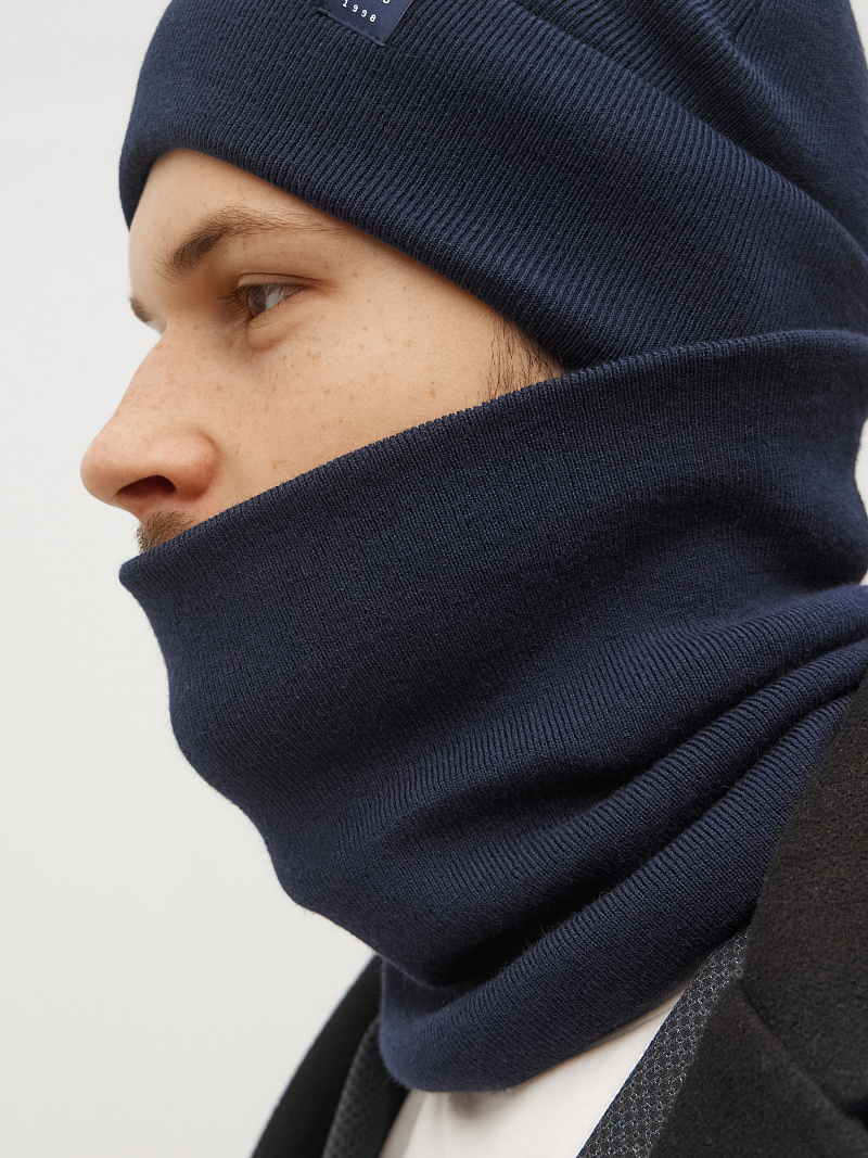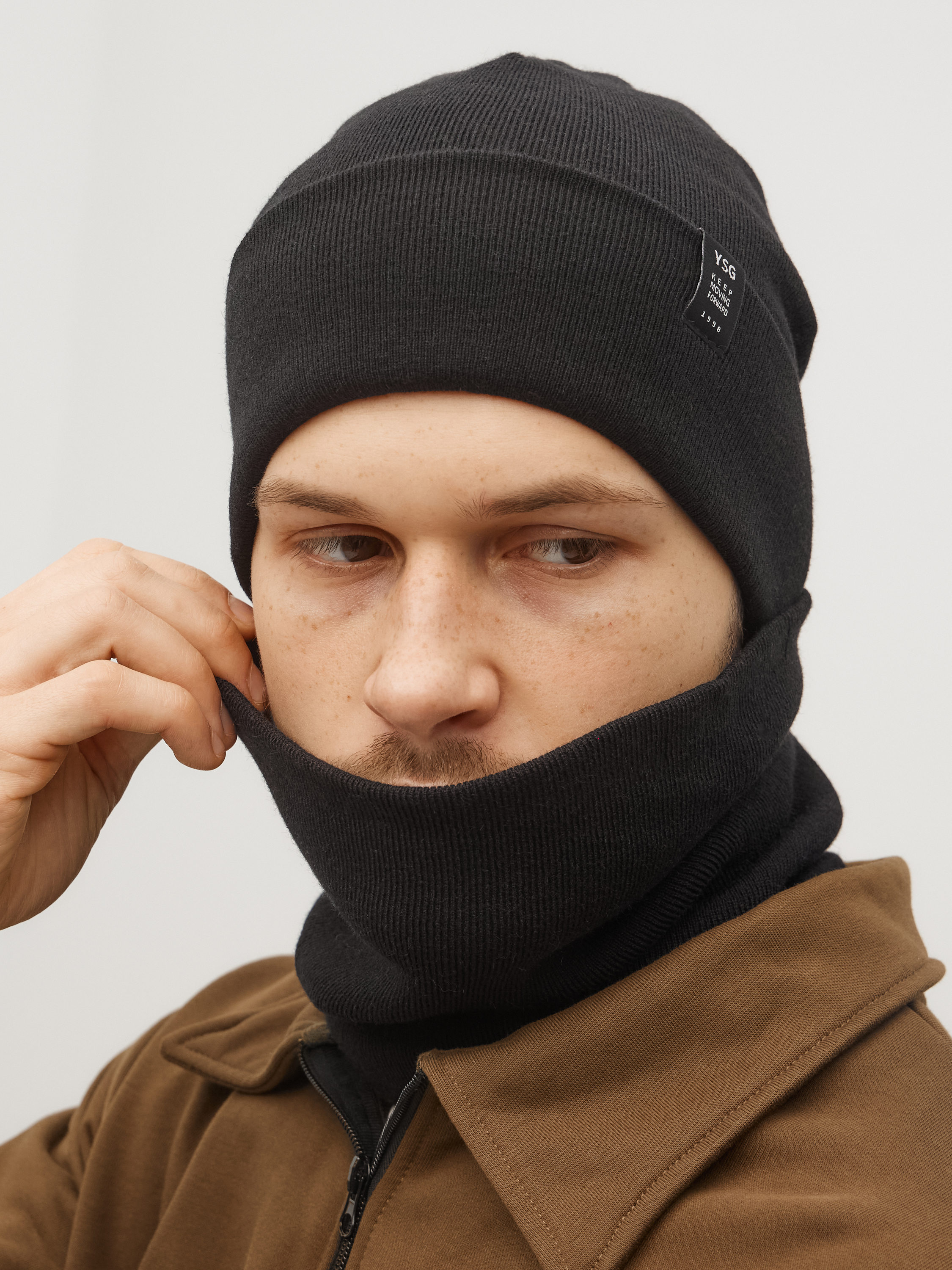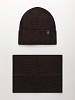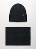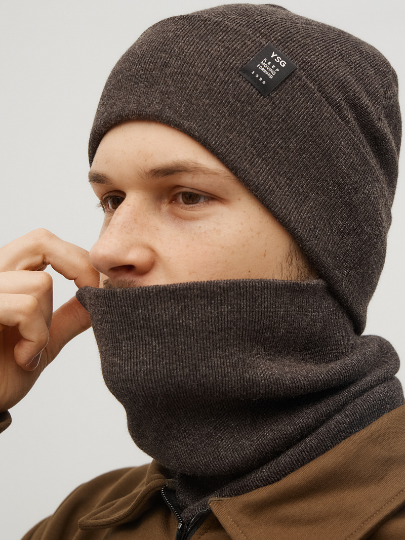 Классический осенне - зимний мужской комплект двойной с кашемиром. Шапка + удобный снуд-труба.