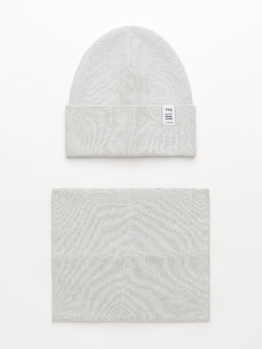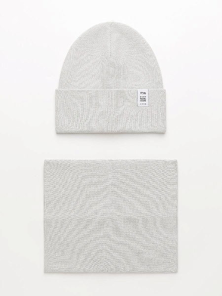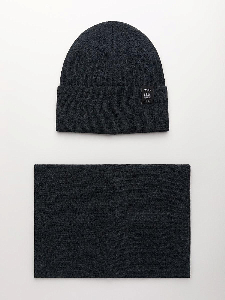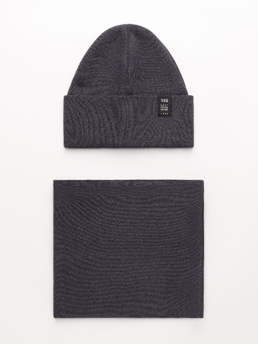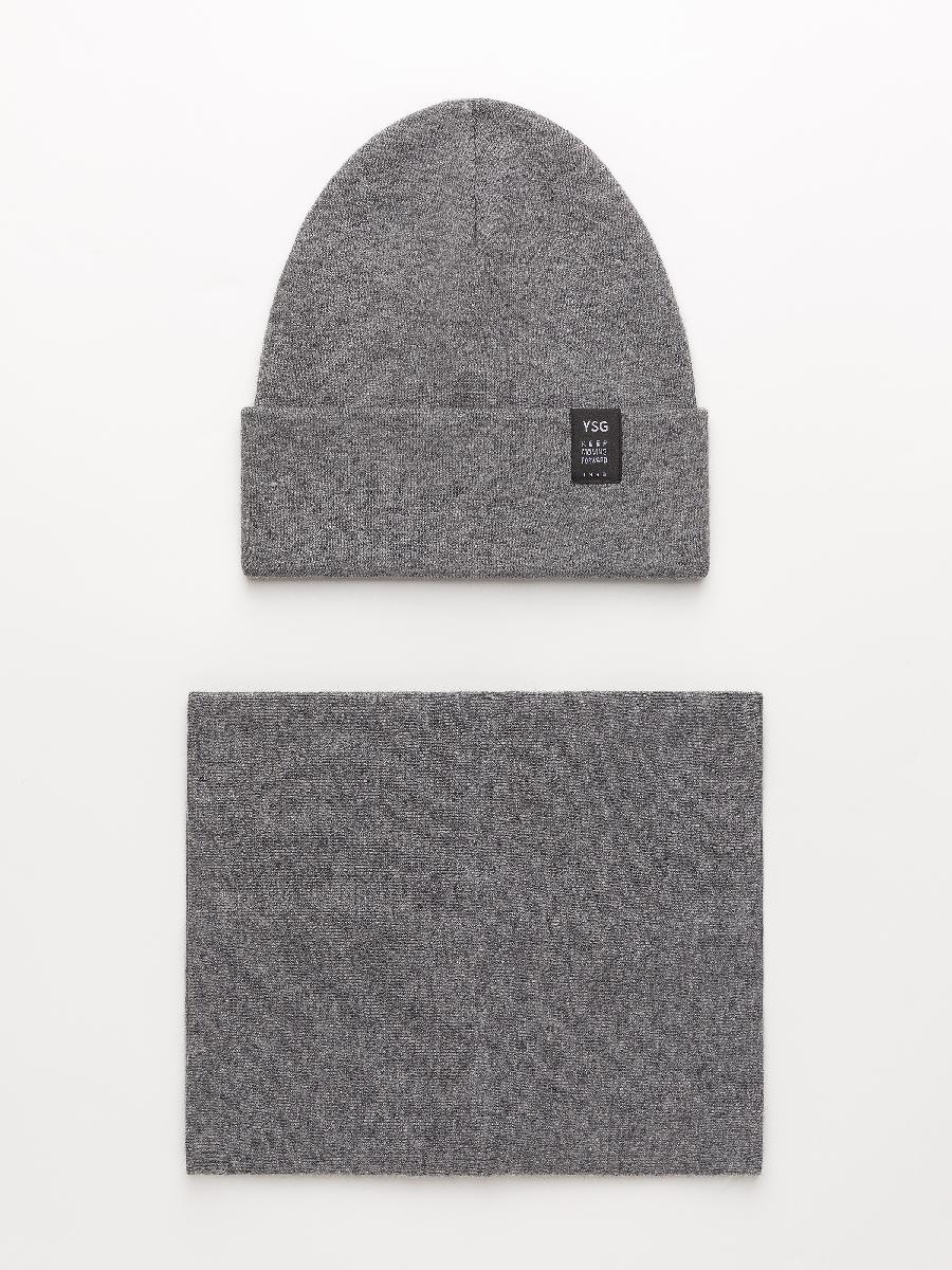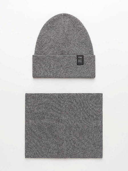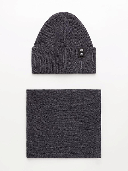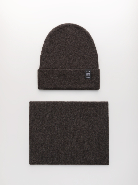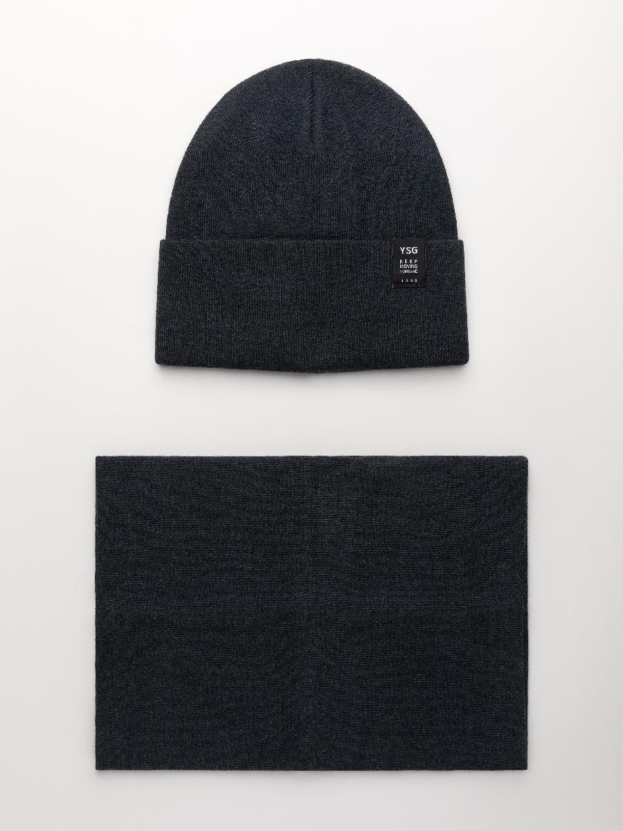 Классический осенне - зимний мужской комплект двойной с кашемиром. Шапка + удобный снуд-труба.