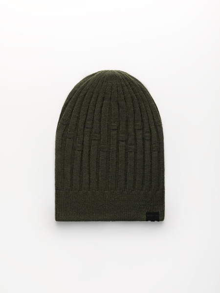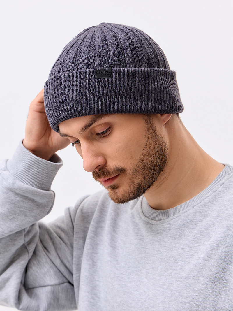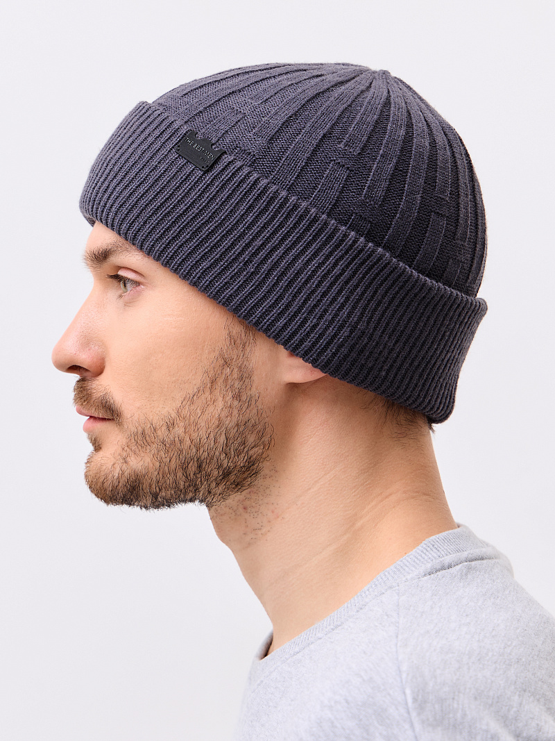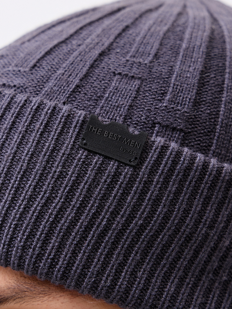 Комплект двойной, кашемир. Шапка с отворотом с кожаным декором, без флиса + снуд.