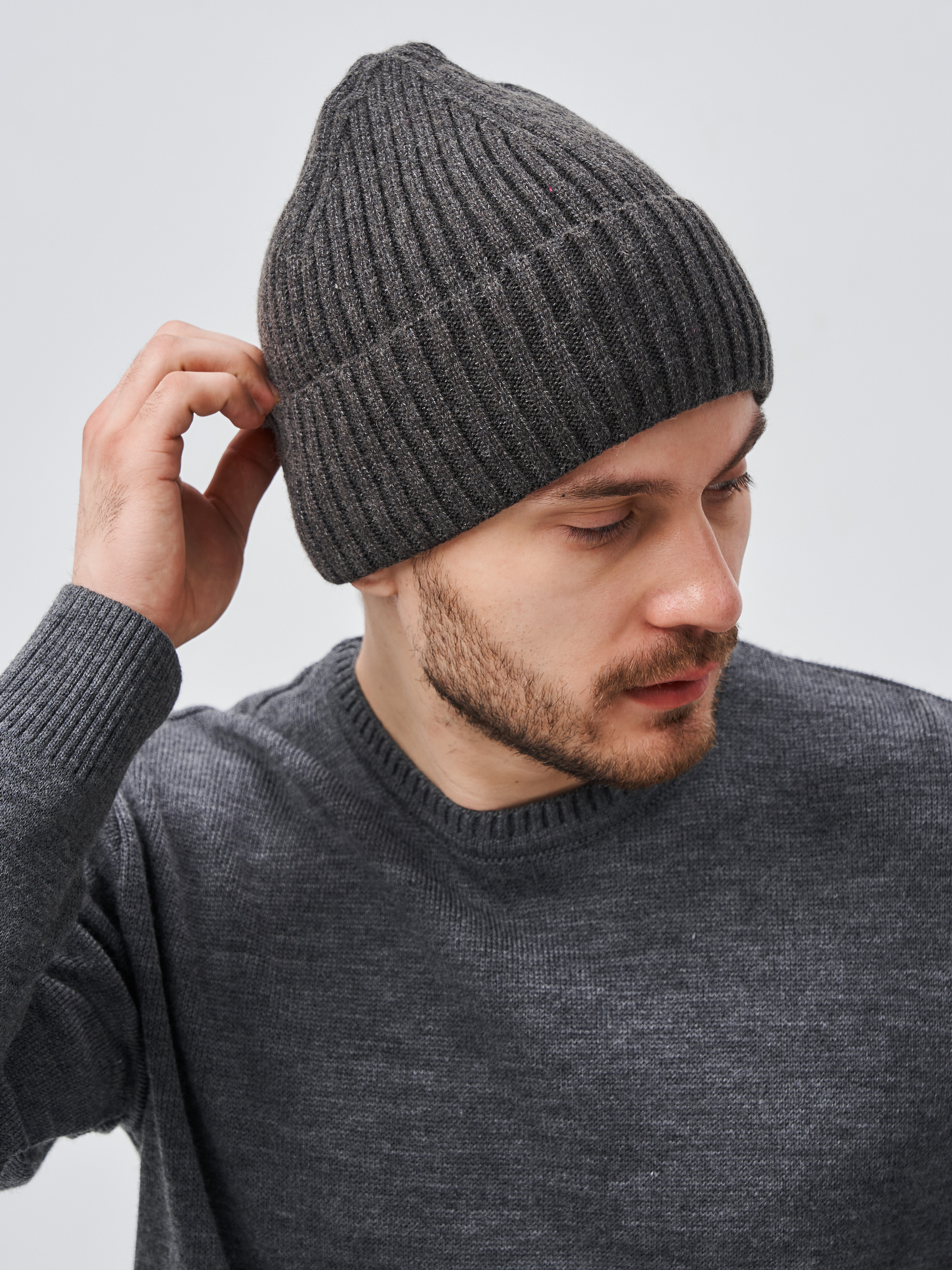Шапка - колпак на флисе с кашемиром, с отворотом, без декора.