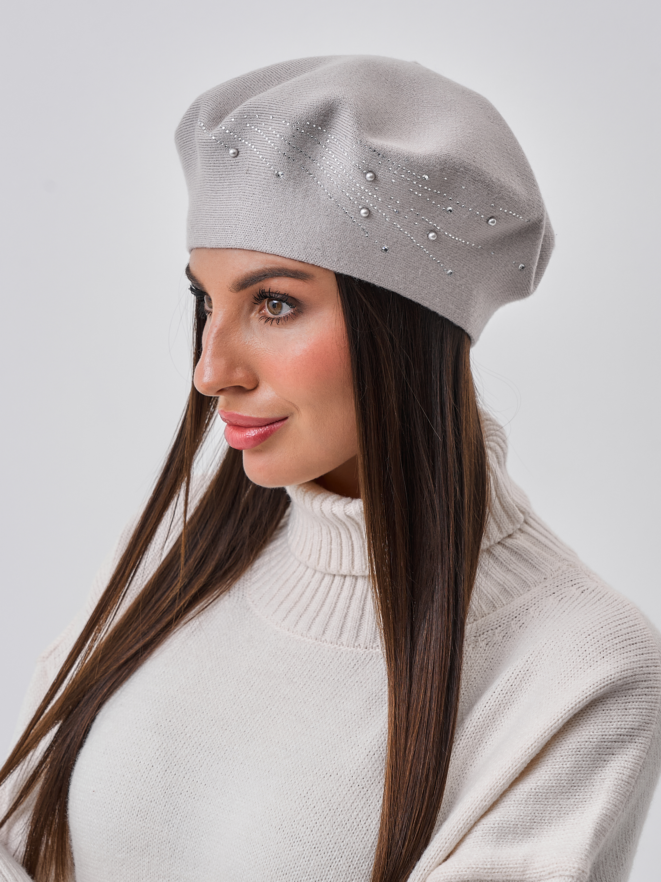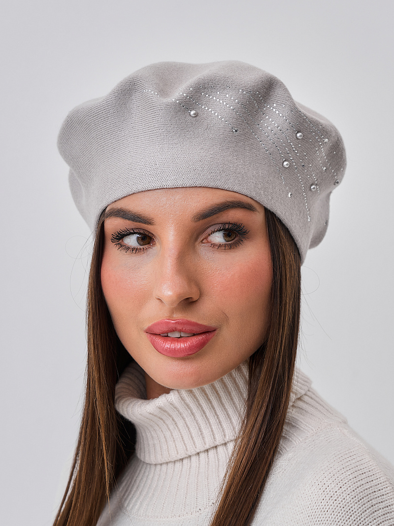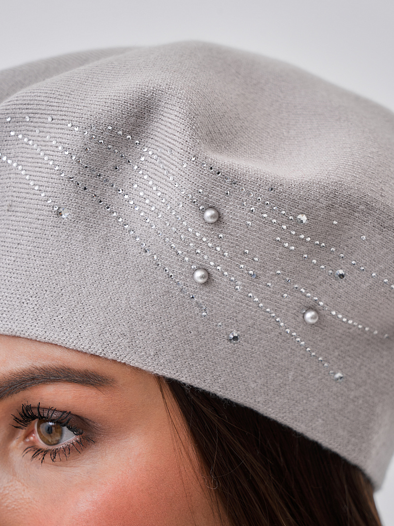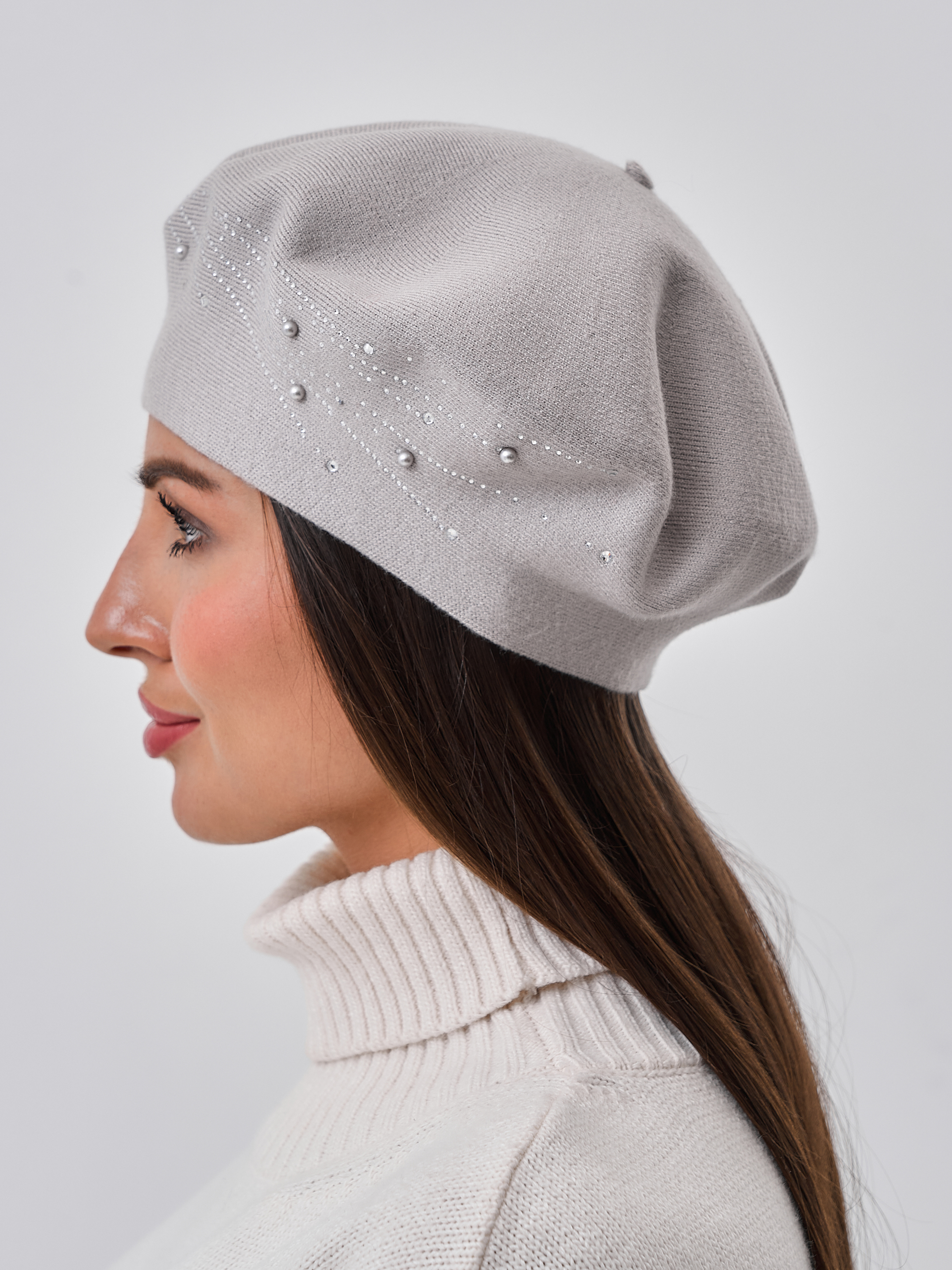 Берет двойной с кашемиром, стразовый мотив, жемчуг.