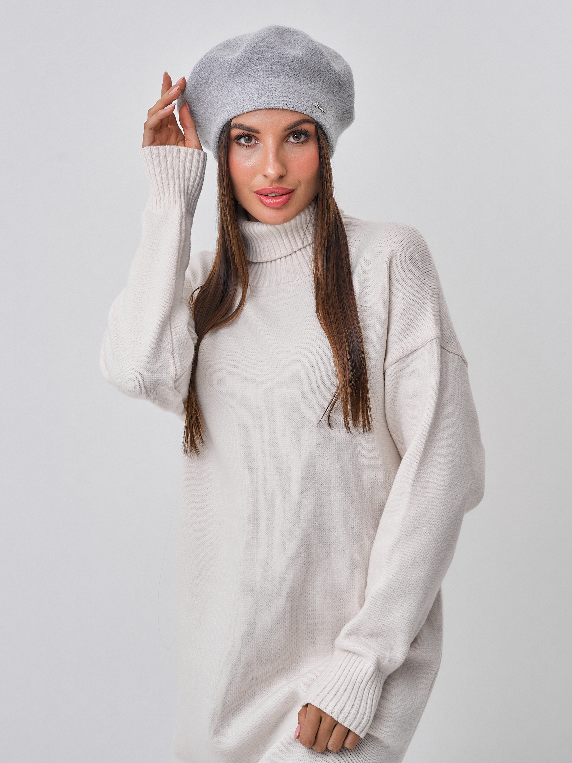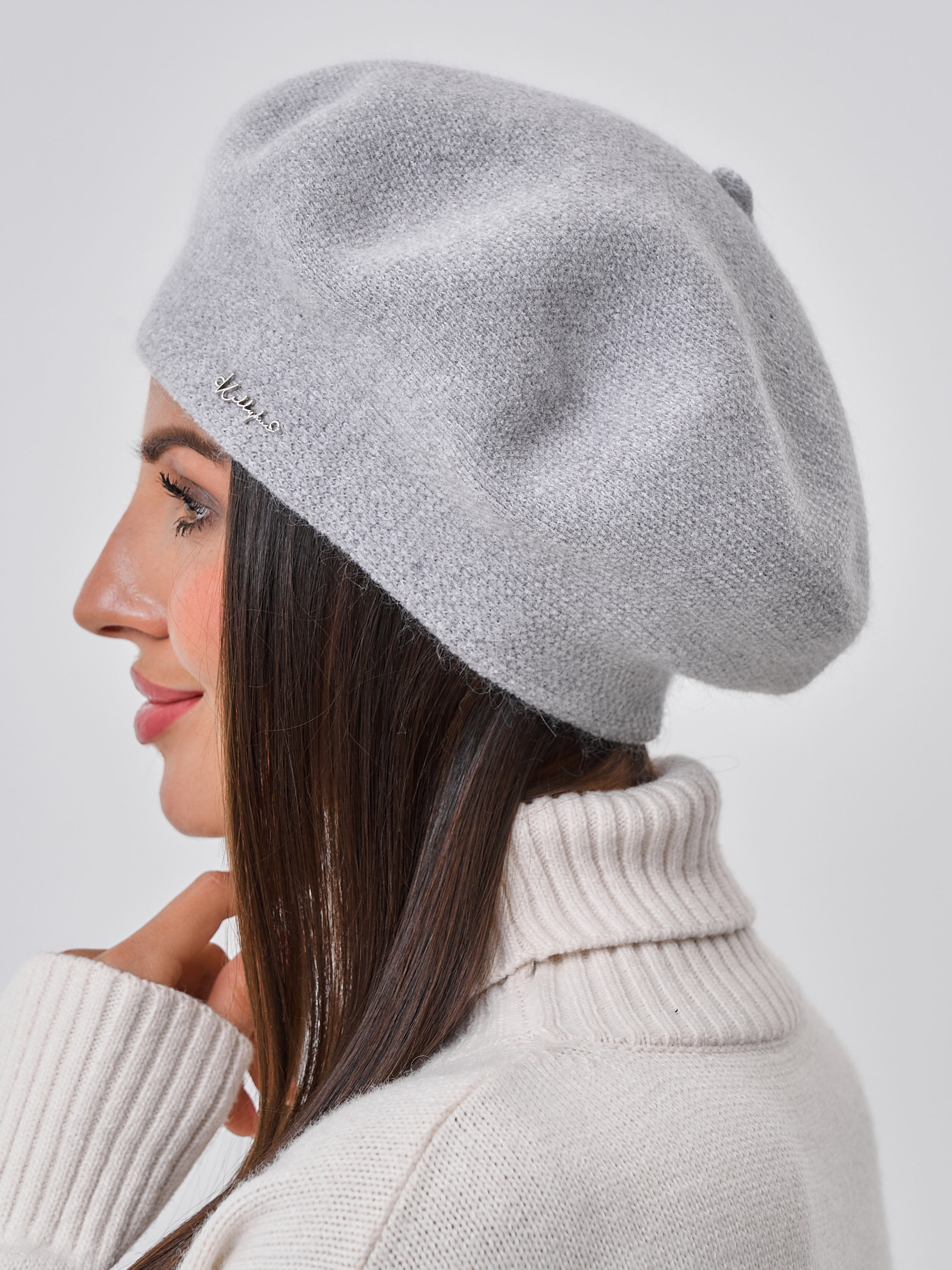 Берет двойной с велюром на ножке, с металлическим декором.