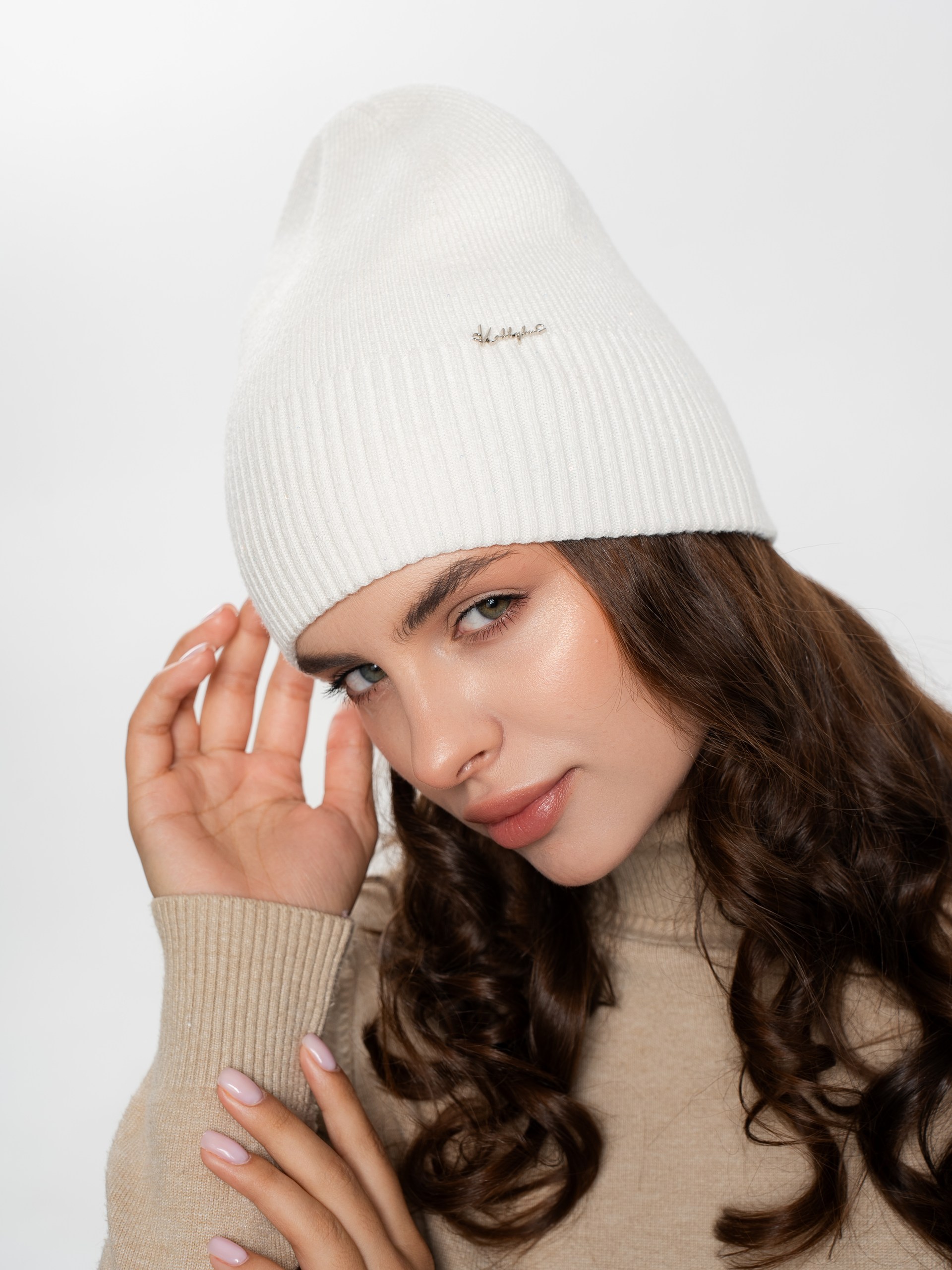 Шапка двойная,с пайеткой, с металлическим декором