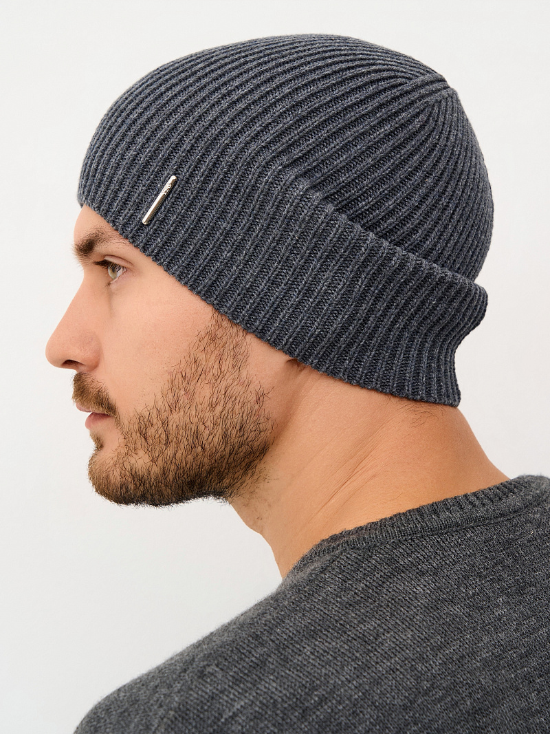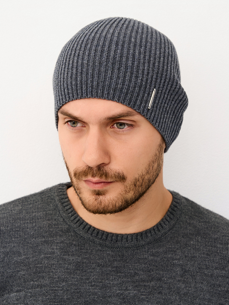 Шапка одинарная с хлопком, металлическим декором, без отворота.