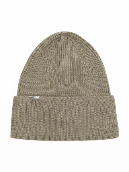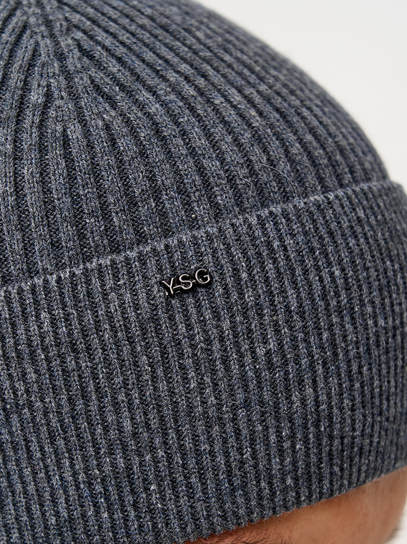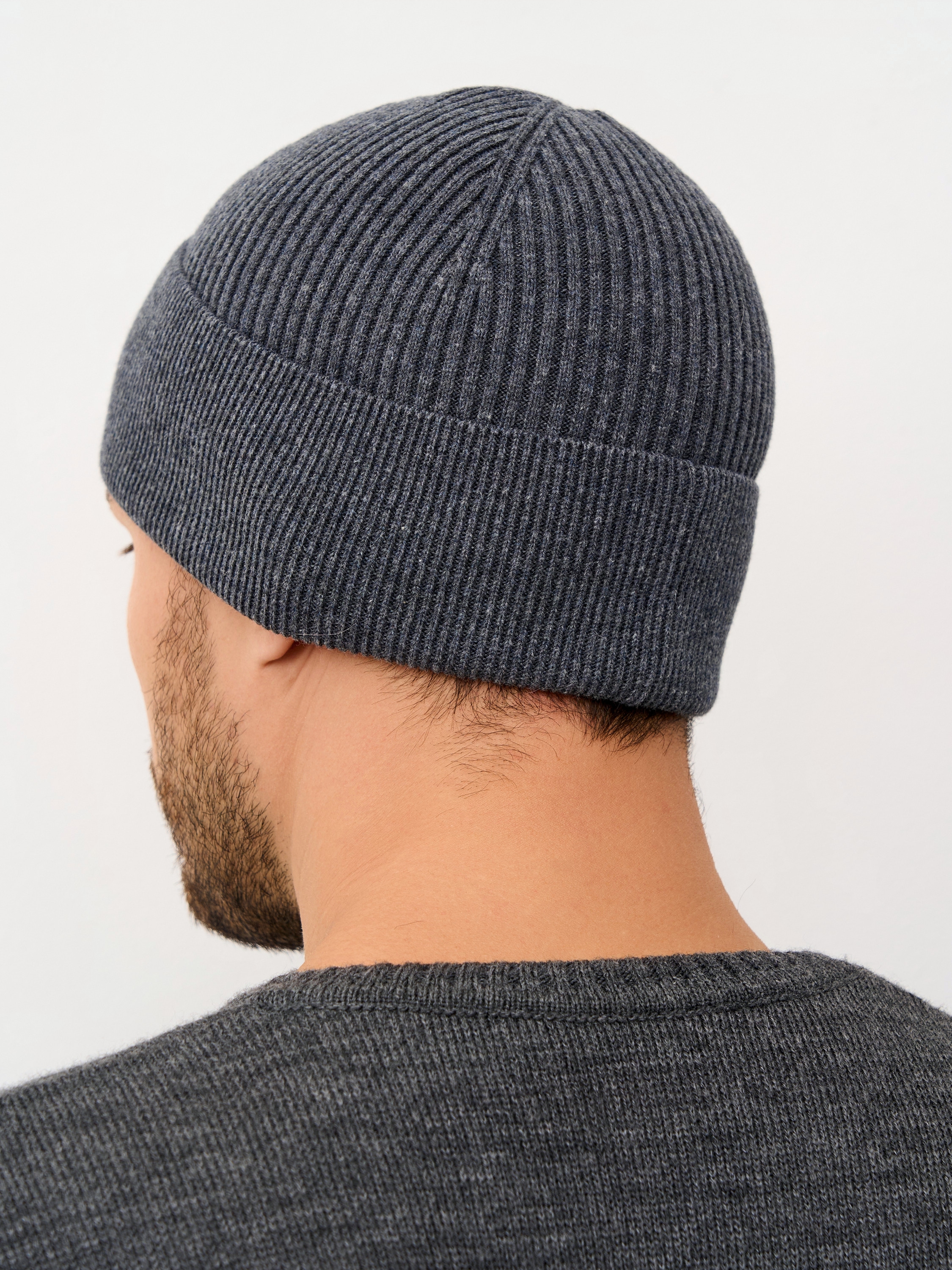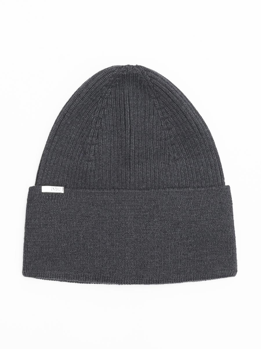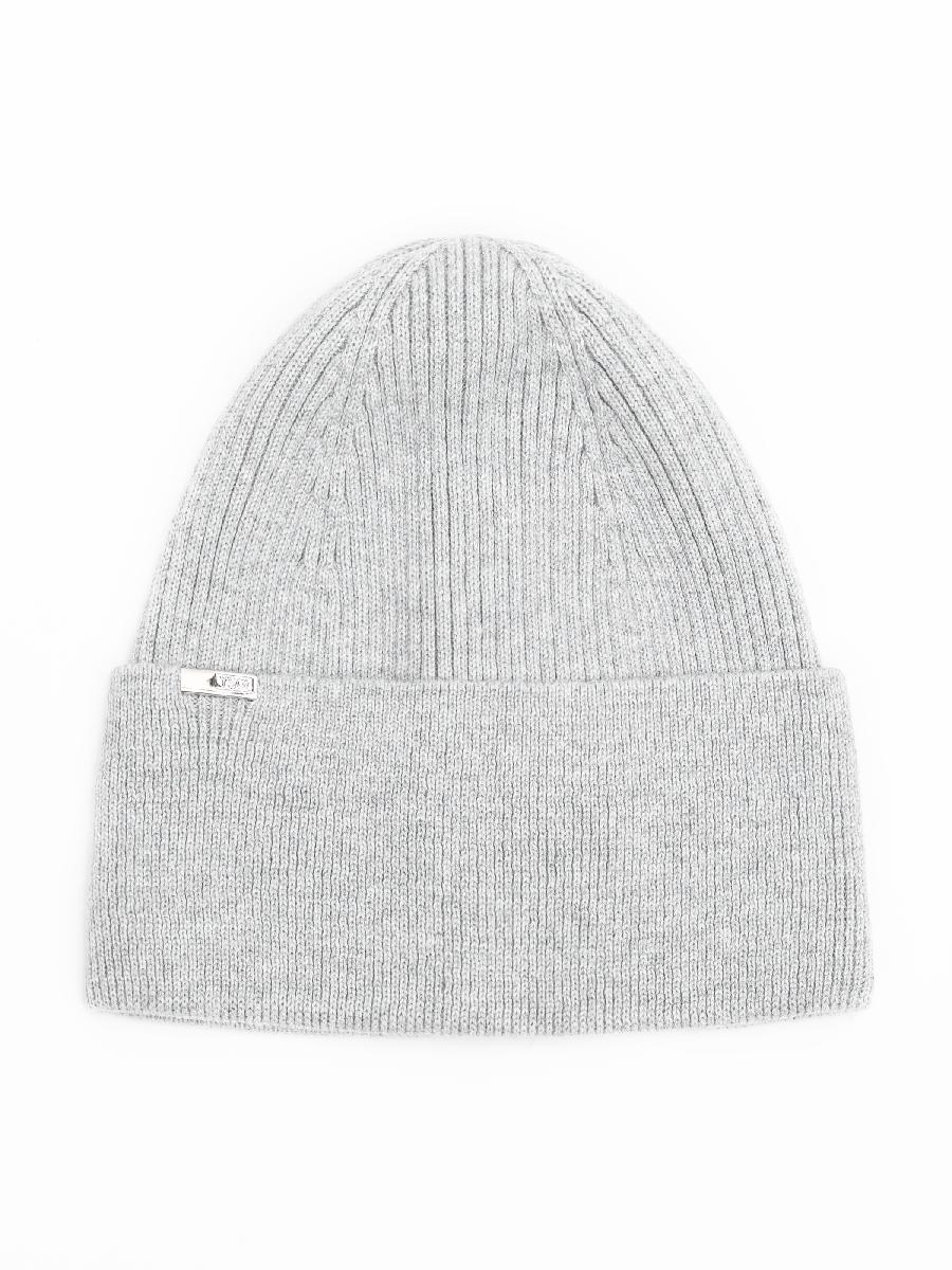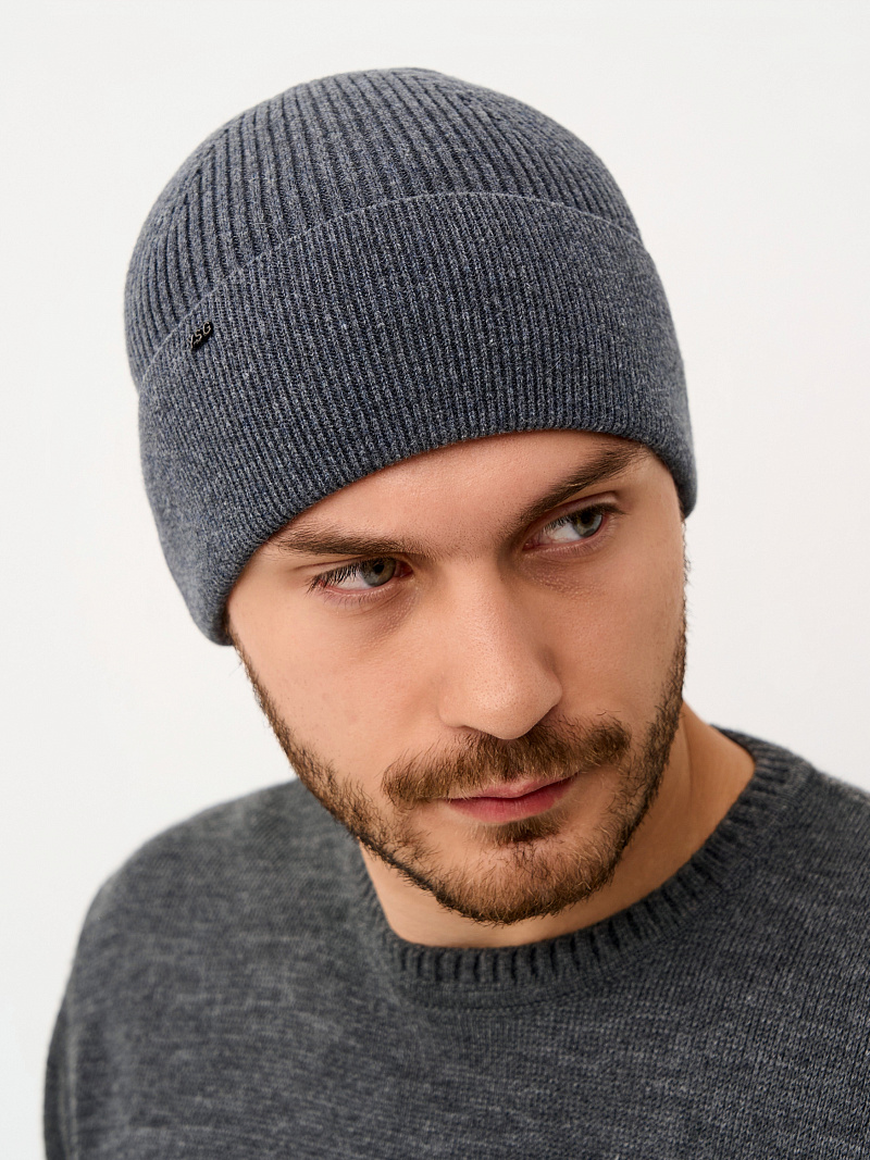 Шапка одинарная с хлопком, с отворотом и металлическим декором.