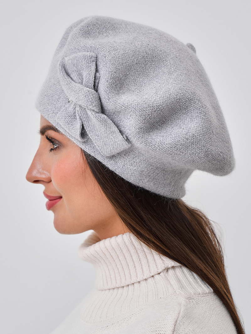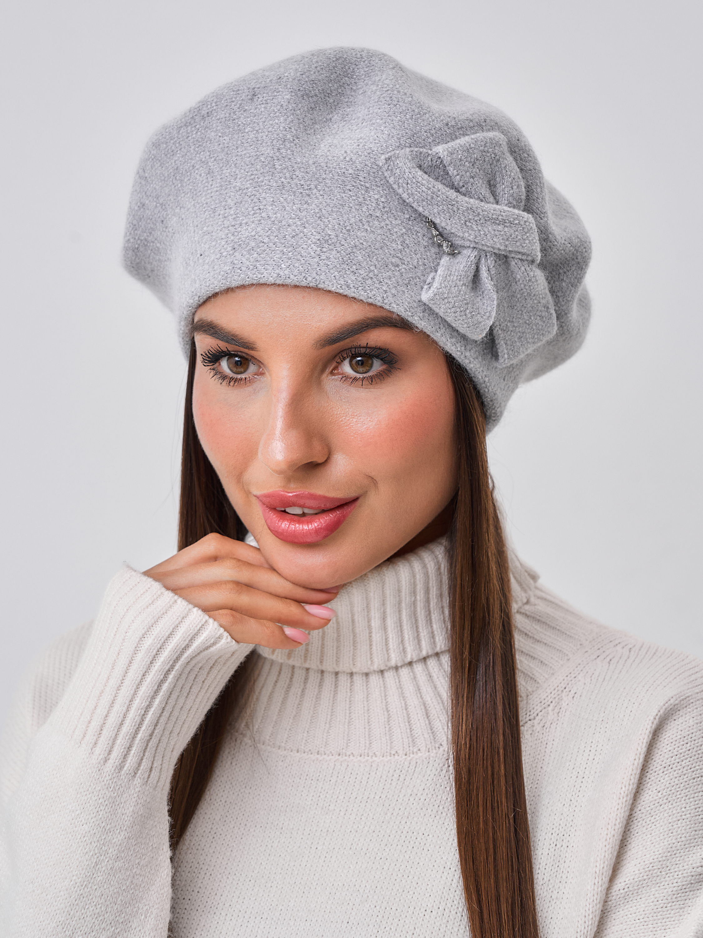 Берет двойной с велюром, на ножке с оригинальным бантом.
