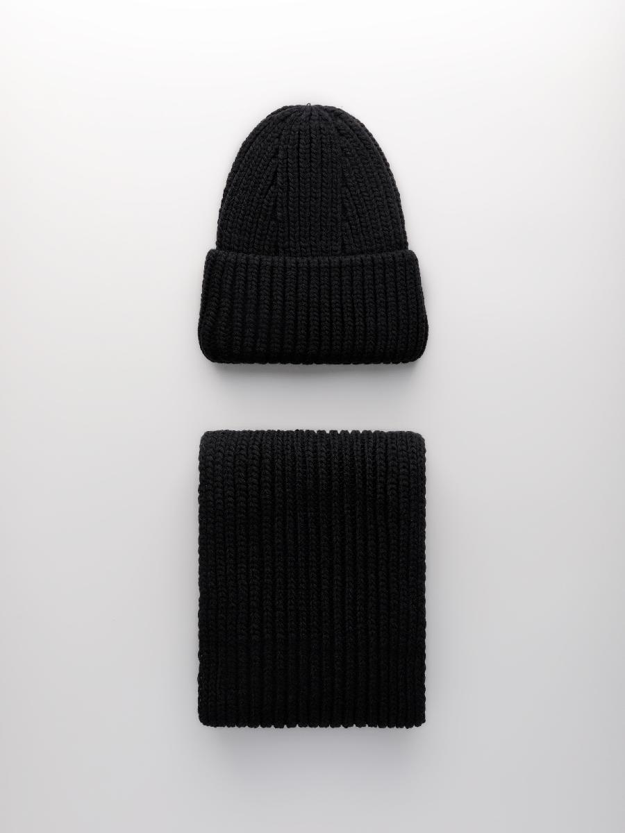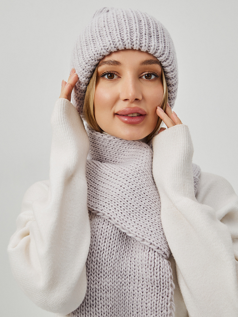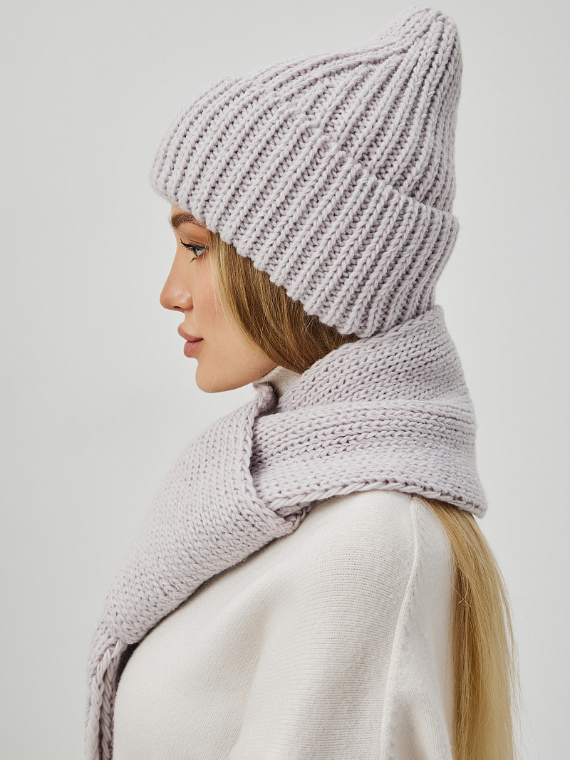 Комплект на флисе с шерстью мериноса. Шапка с контурной макушкой и отворотом, без декора + шарф. Размер шарфа: дл.105см ш.17см