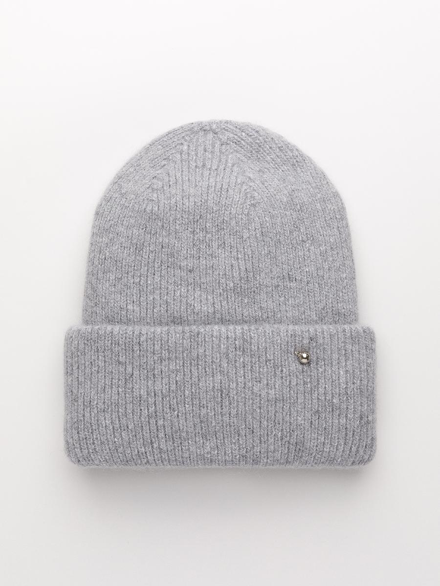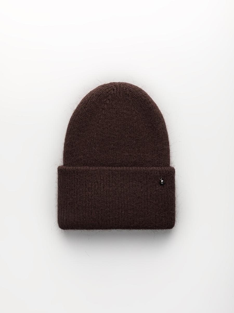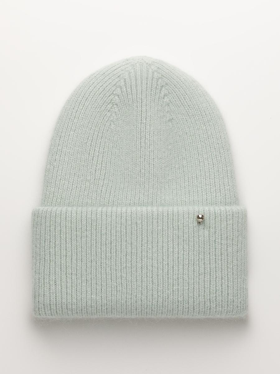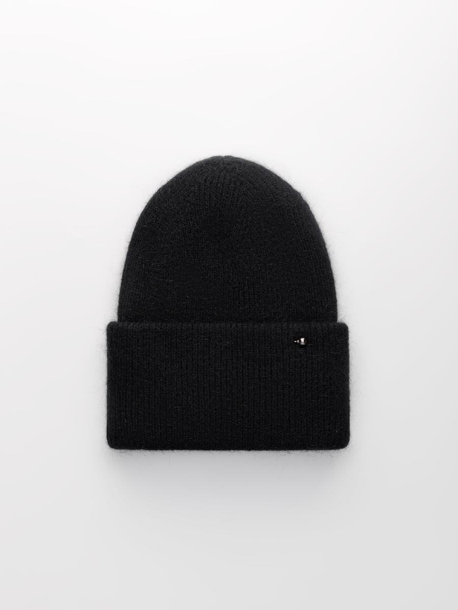 Шапка премиум-класса двойная с ангорой. Классический строгий дизайн, лаконичный металлический декор - подвеска.