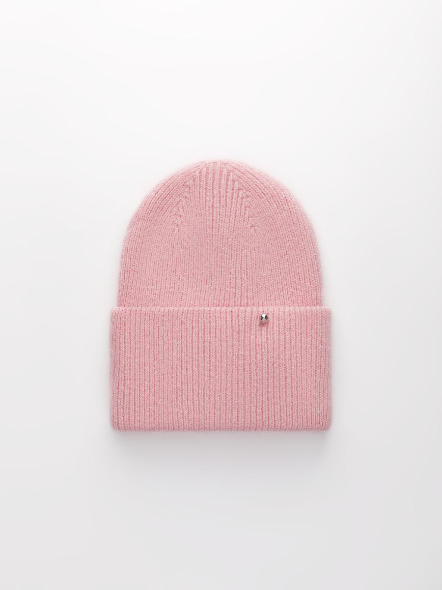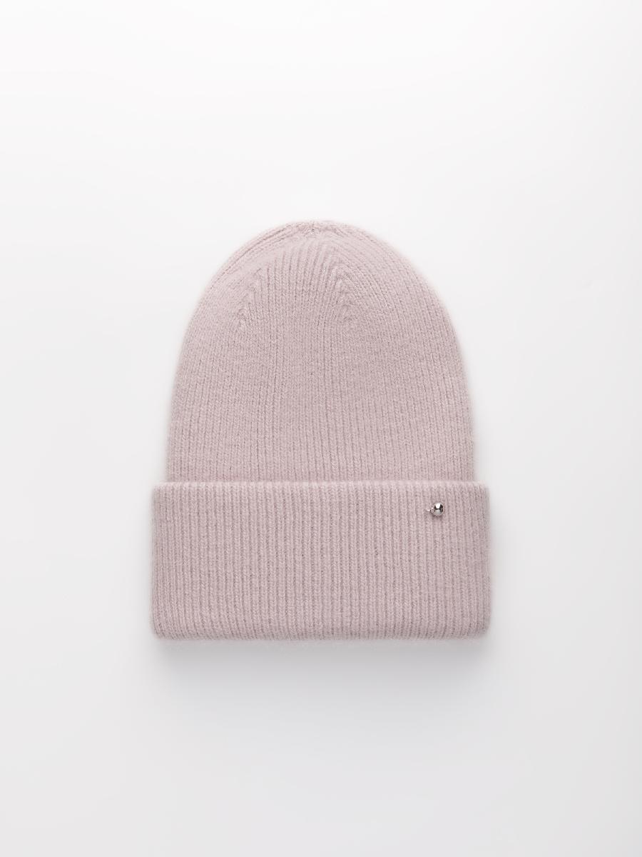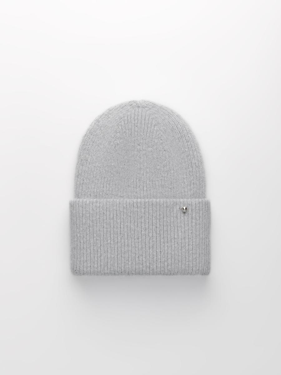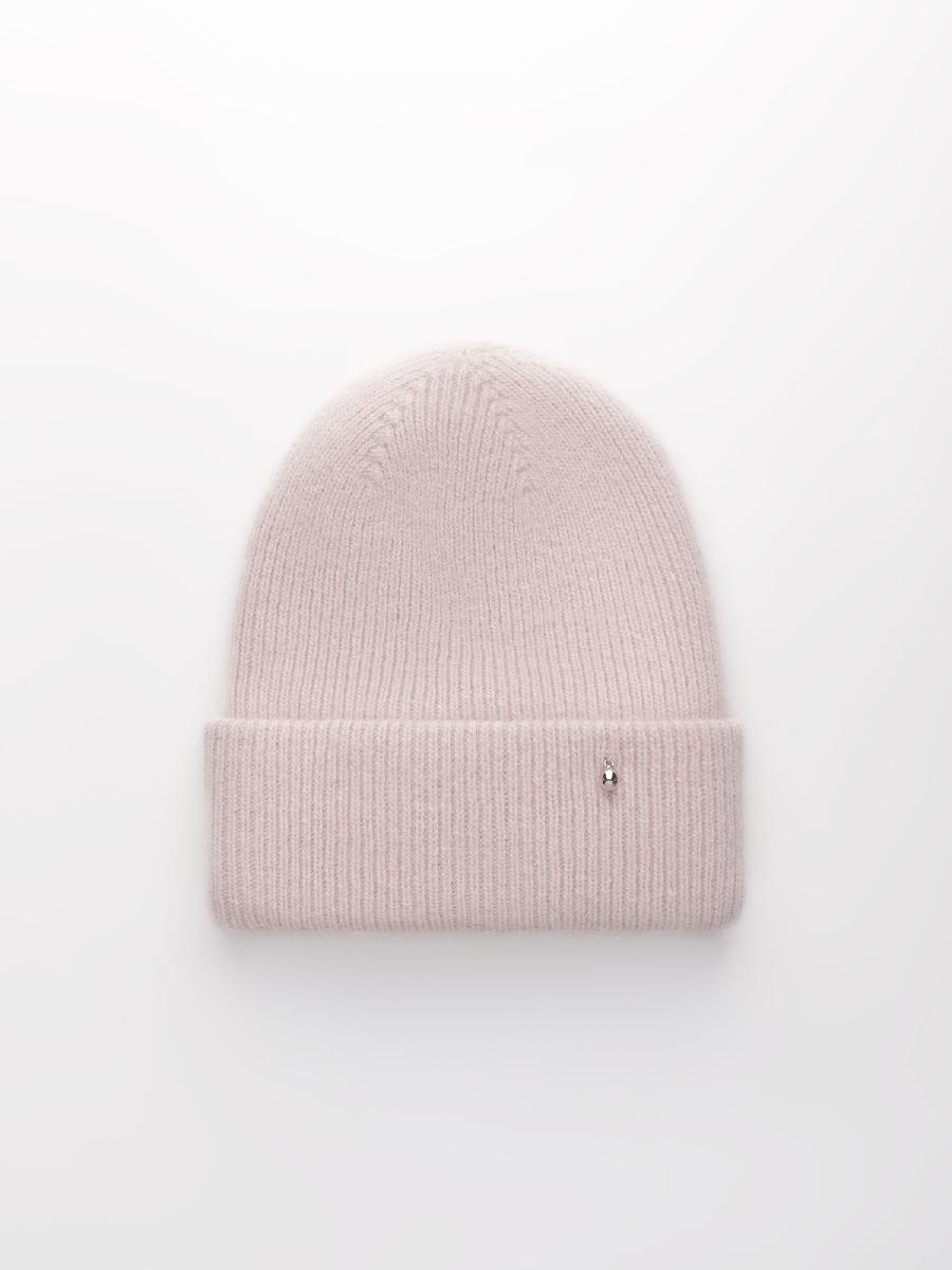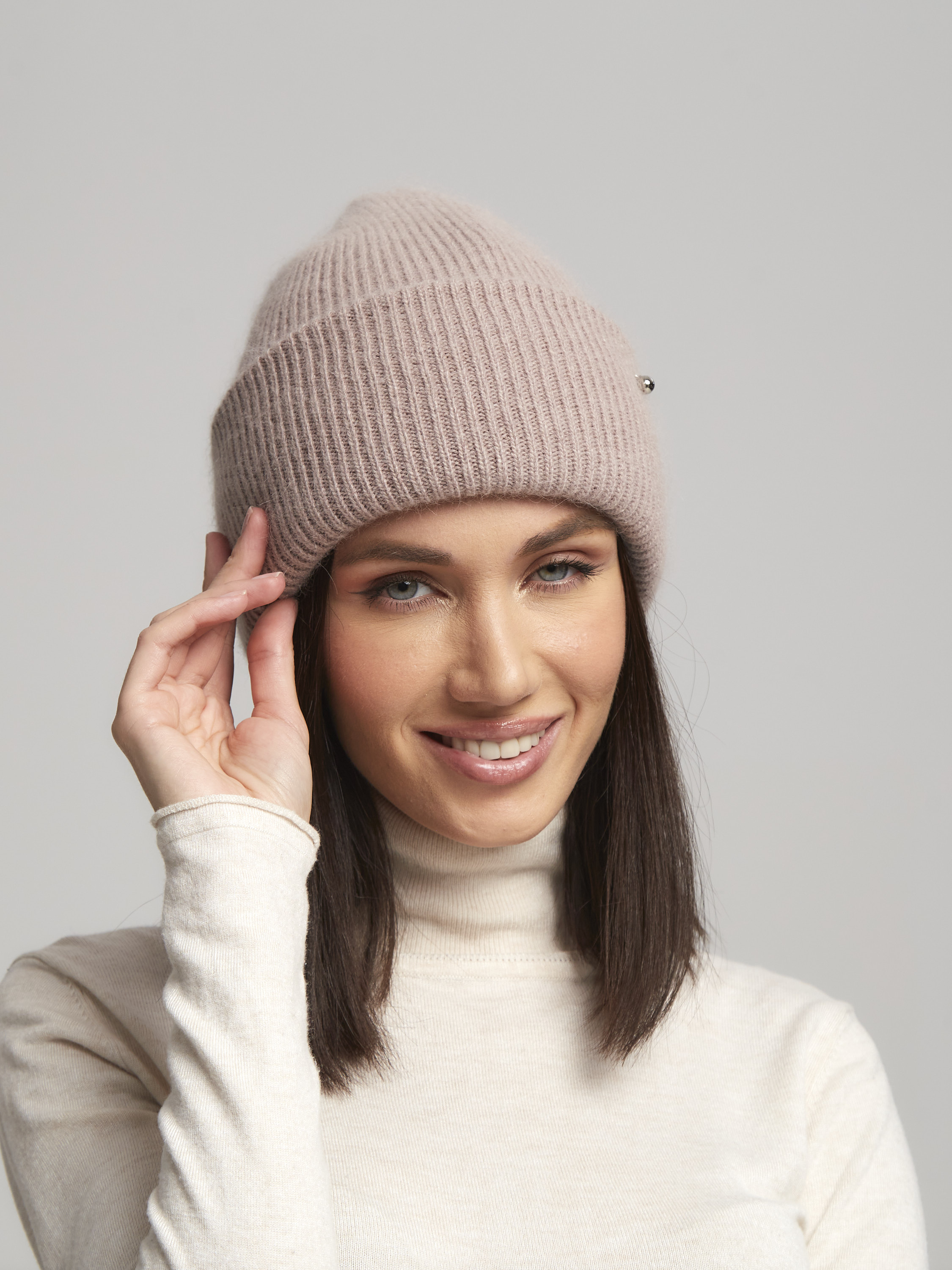 Шапка премиум-класса двойная с ангорой. Классический строгий дизайн, лаконичный металлический декор - подвеска.