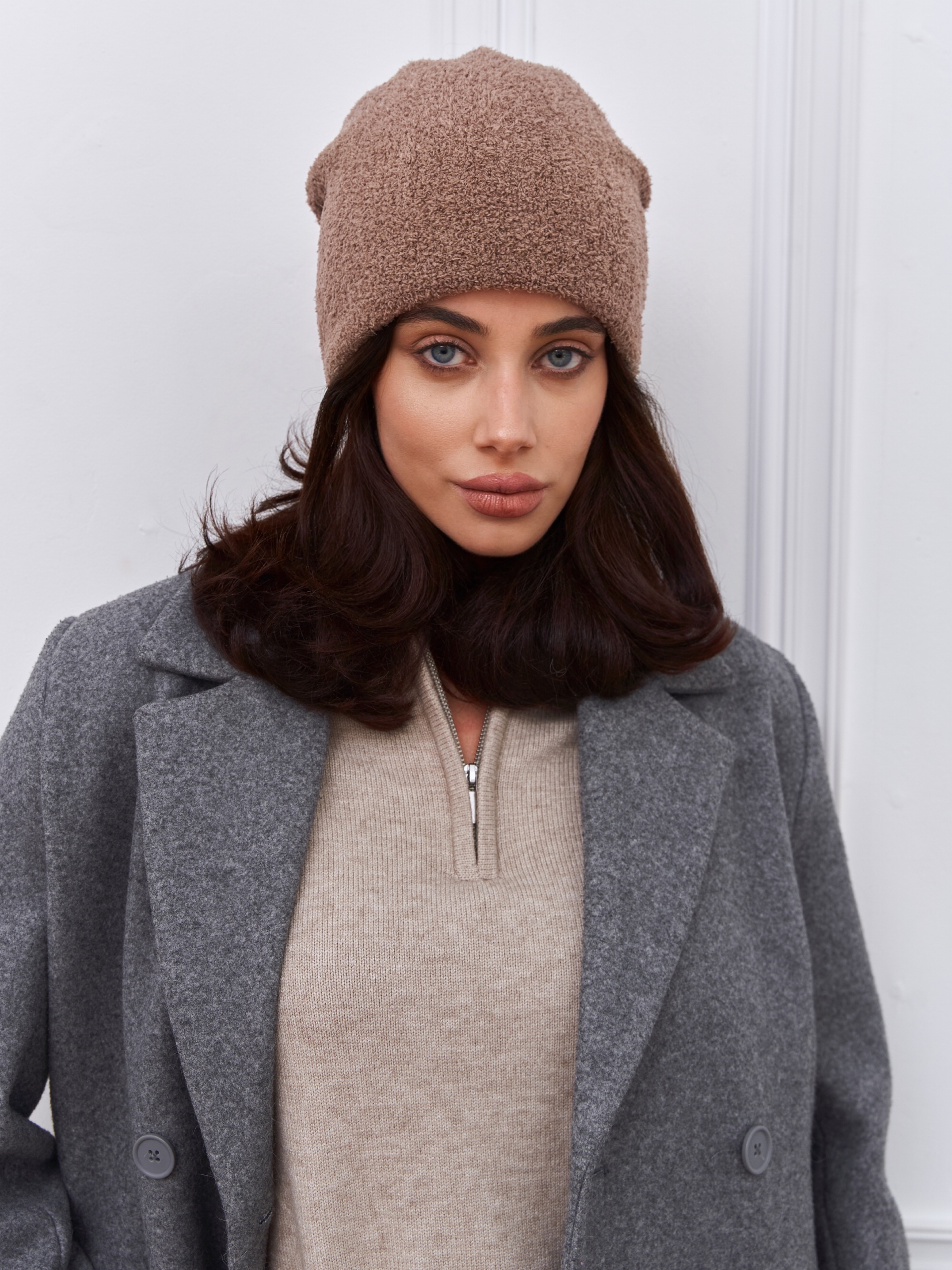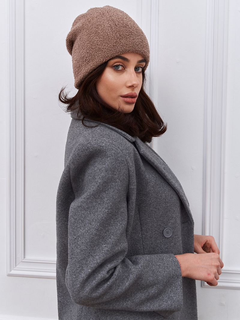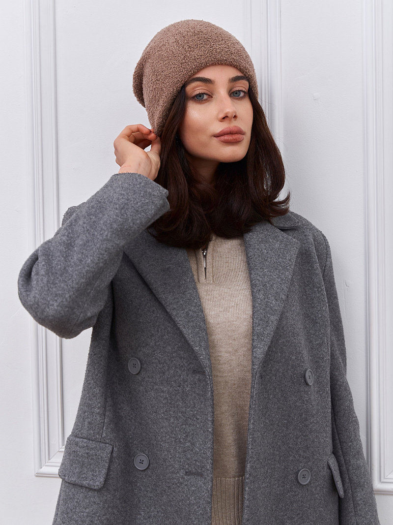 Шапка двойная с шерстью мериноса, сзади с защипом. Плюш