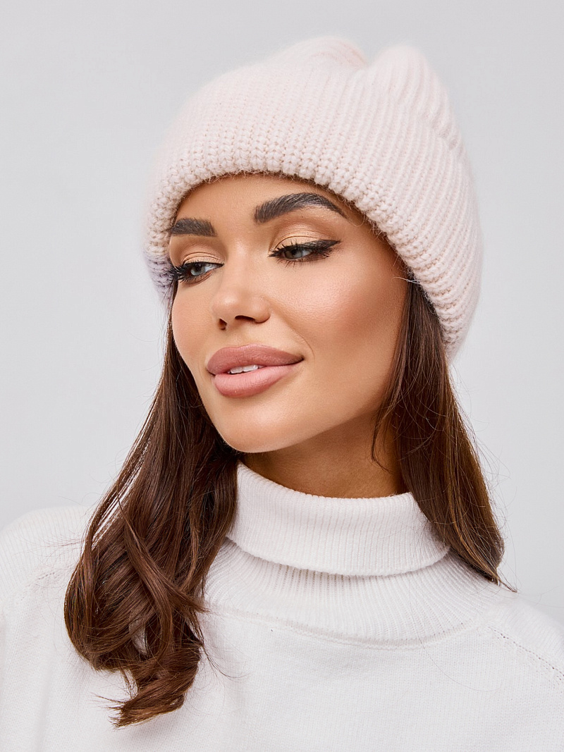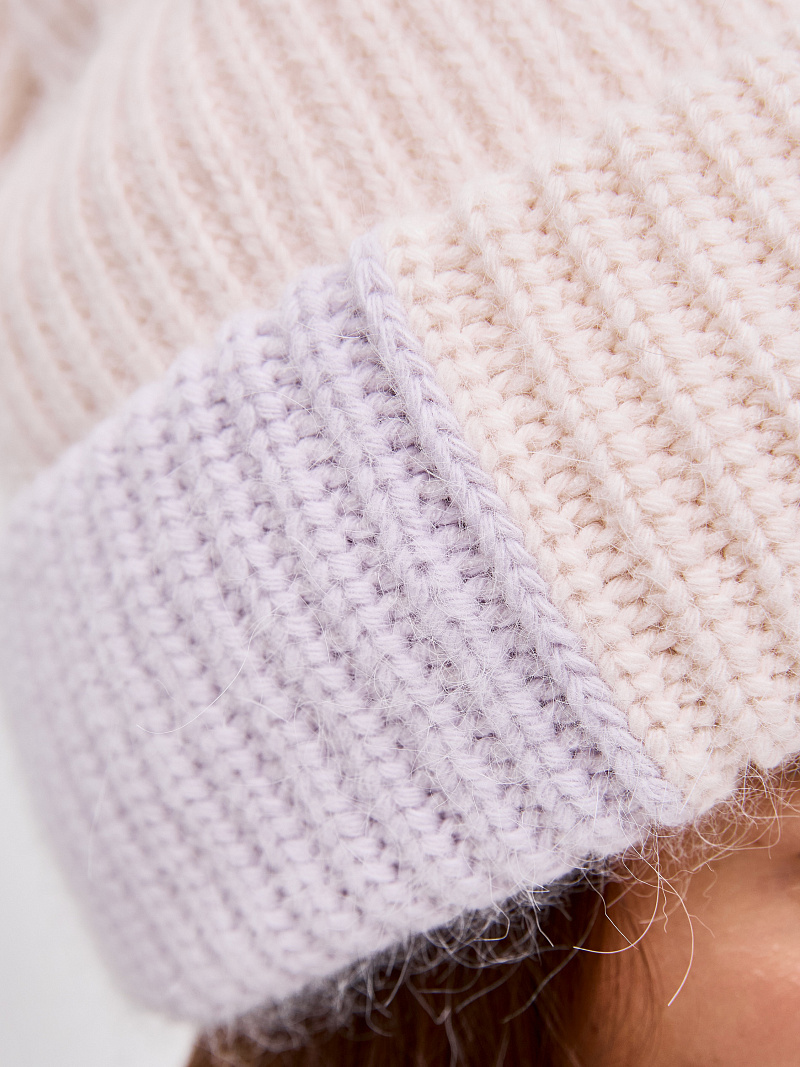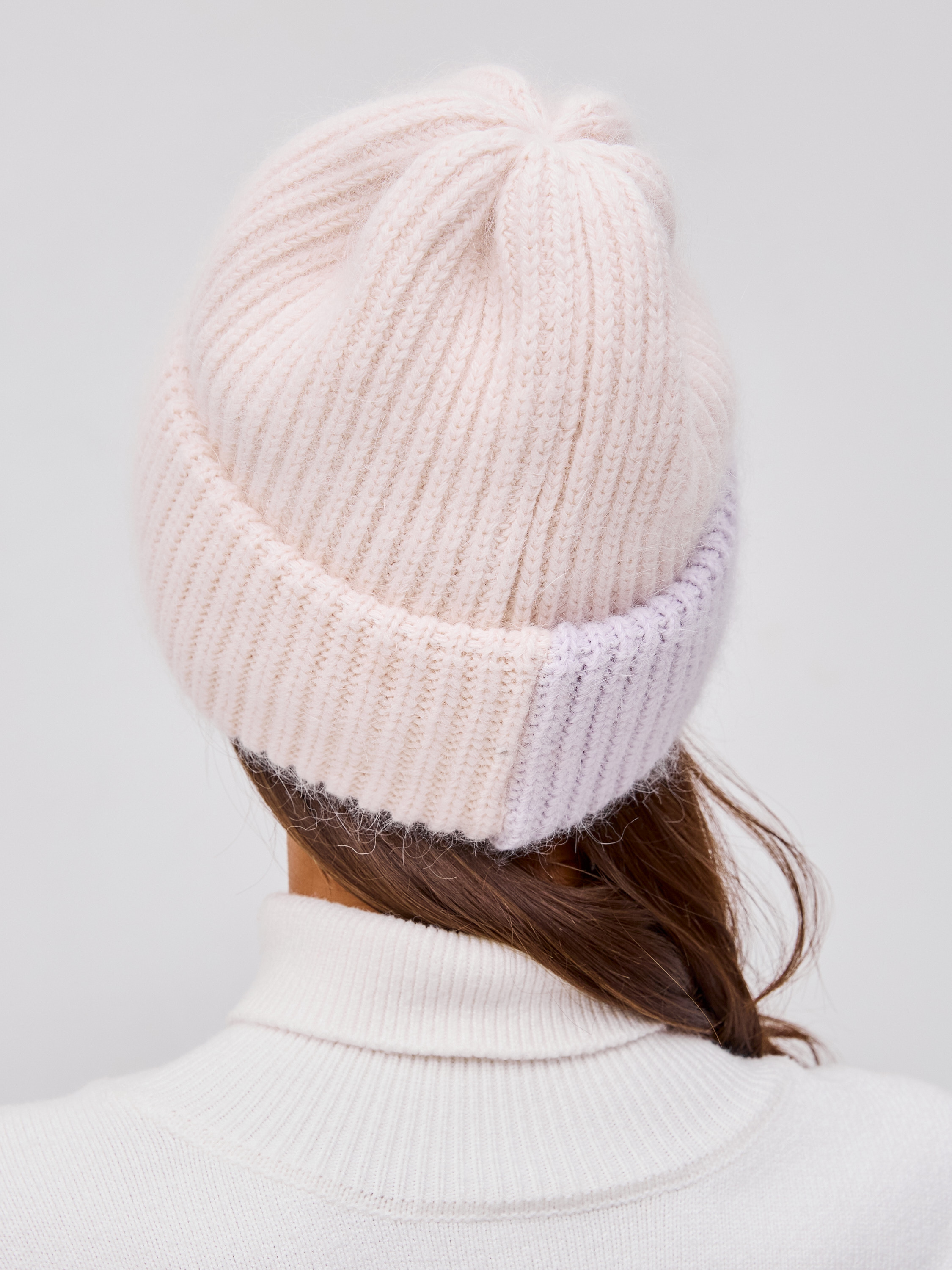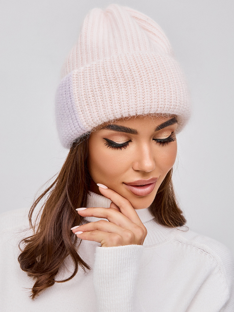 Шапка двухцветная на флисе с ангорой, с отворотом.