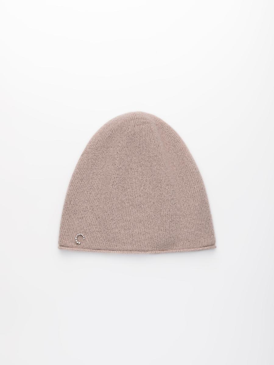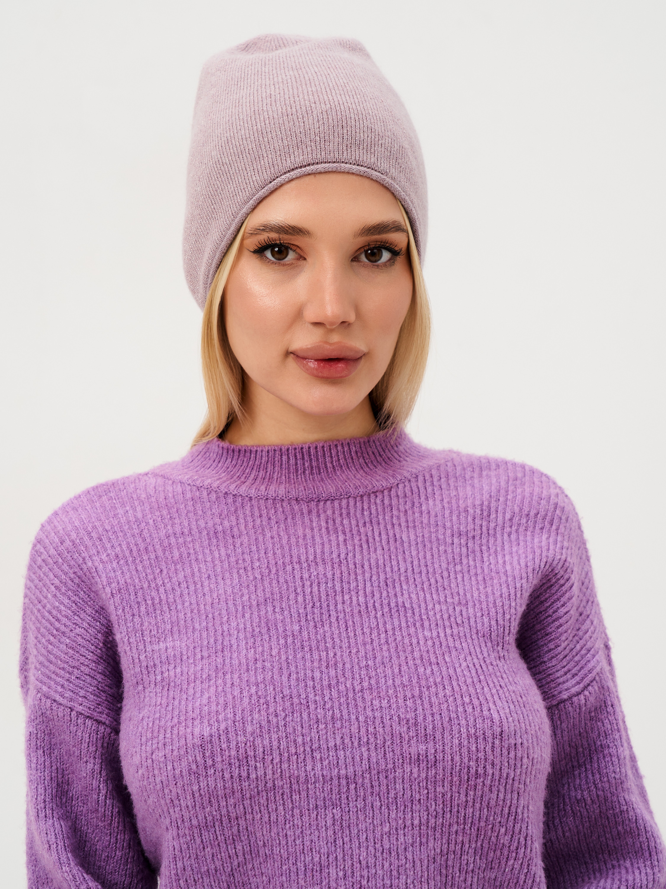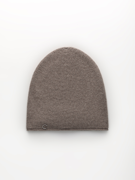 Шапка одинарная, пух енота, шерсть мериноса. Без отворота, без декора, абсолютный минимализм.