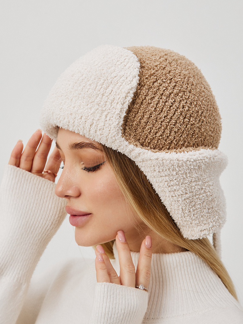 Ушанка двойная с шерстью мериноса. Наш плюшевый хит! Двойная теплая модель, которая закрывает уши и подойдет для холодных регионов страны. Двухцветная, кожаный + металлический декор, с завязками, без флиса.