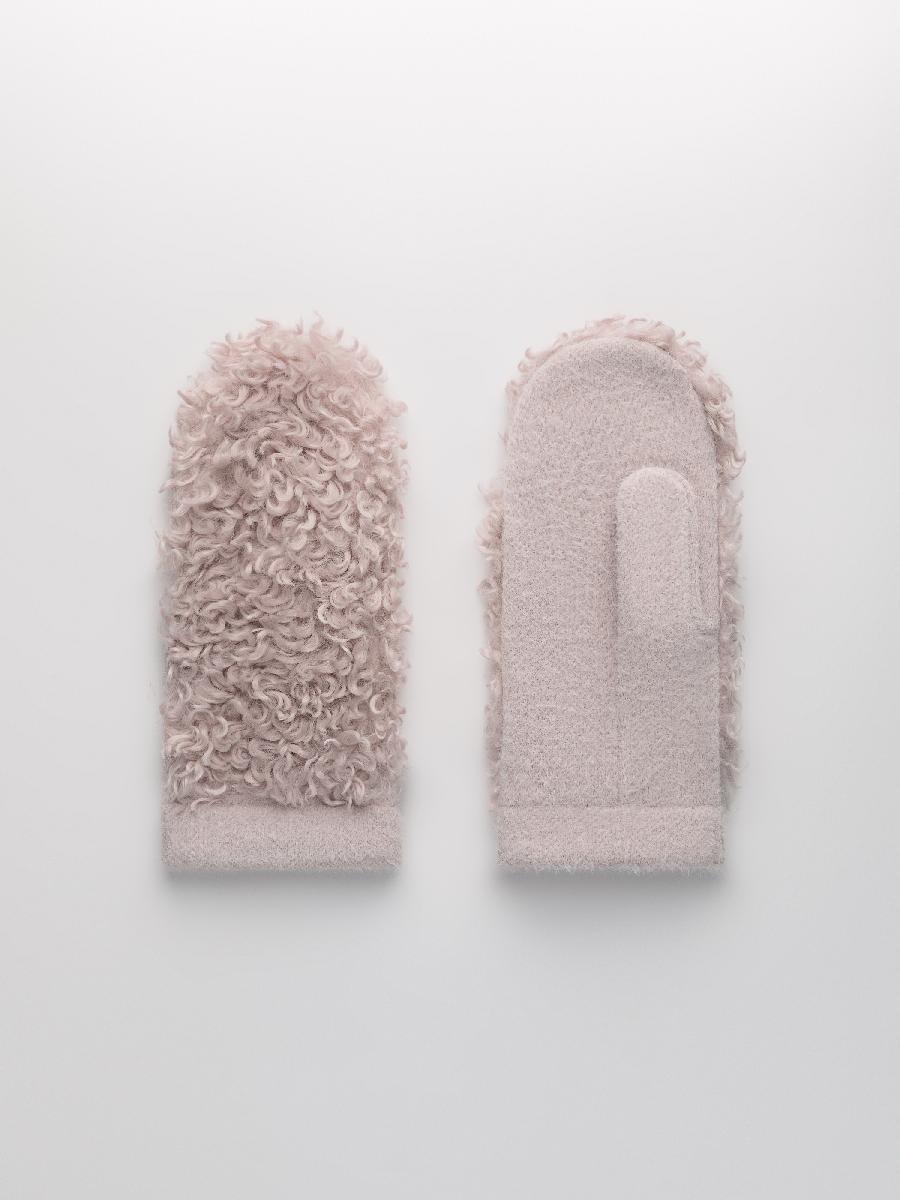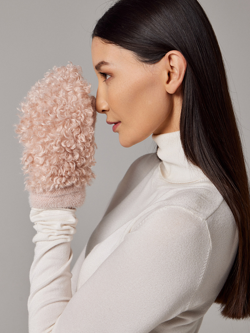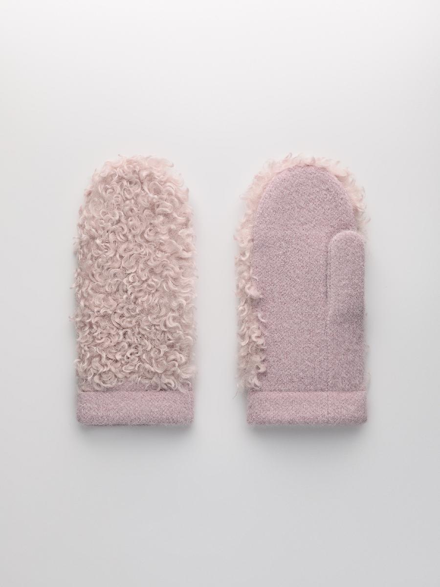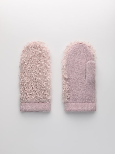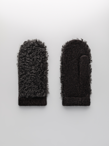 Варежки на флисе с шерстью мериноса с мехом козы, с флисом. Размер 18. ***Фактура -коза, овца, барашек,каракуль***