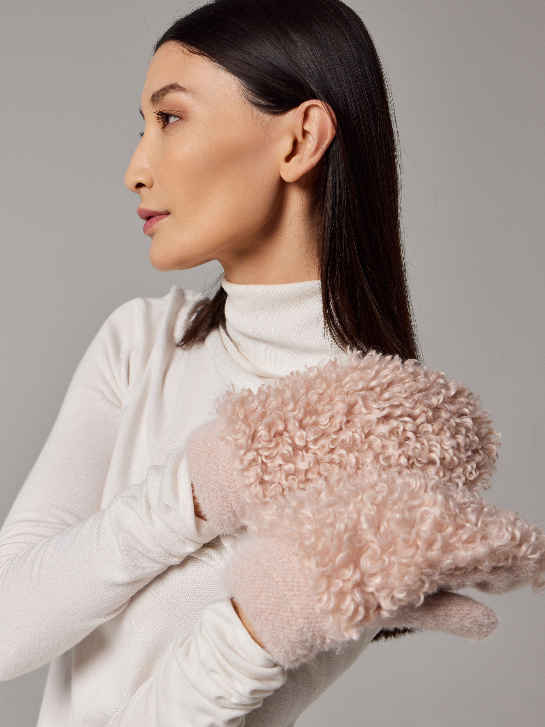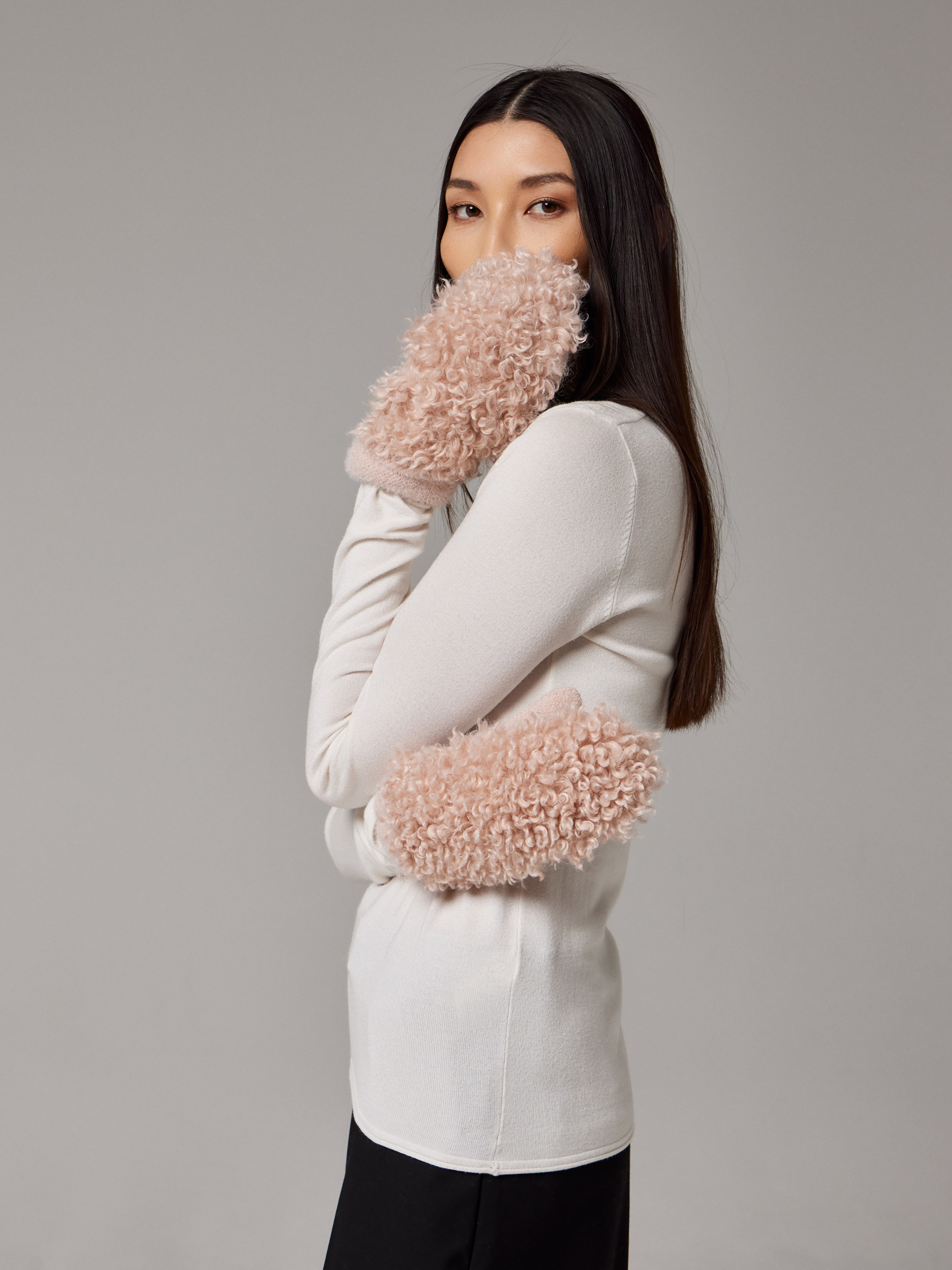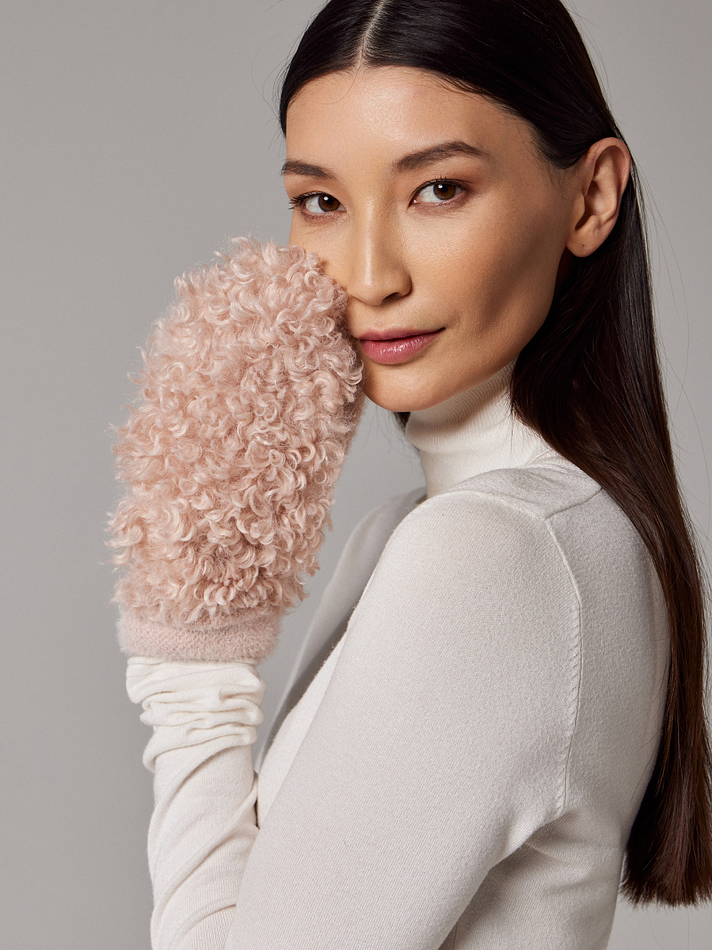 Варежки на флисе с шерстью мериноса с мехом козы, с флисом. Размер 18. ***Фактура -коза, овца, барашек,каракуль***