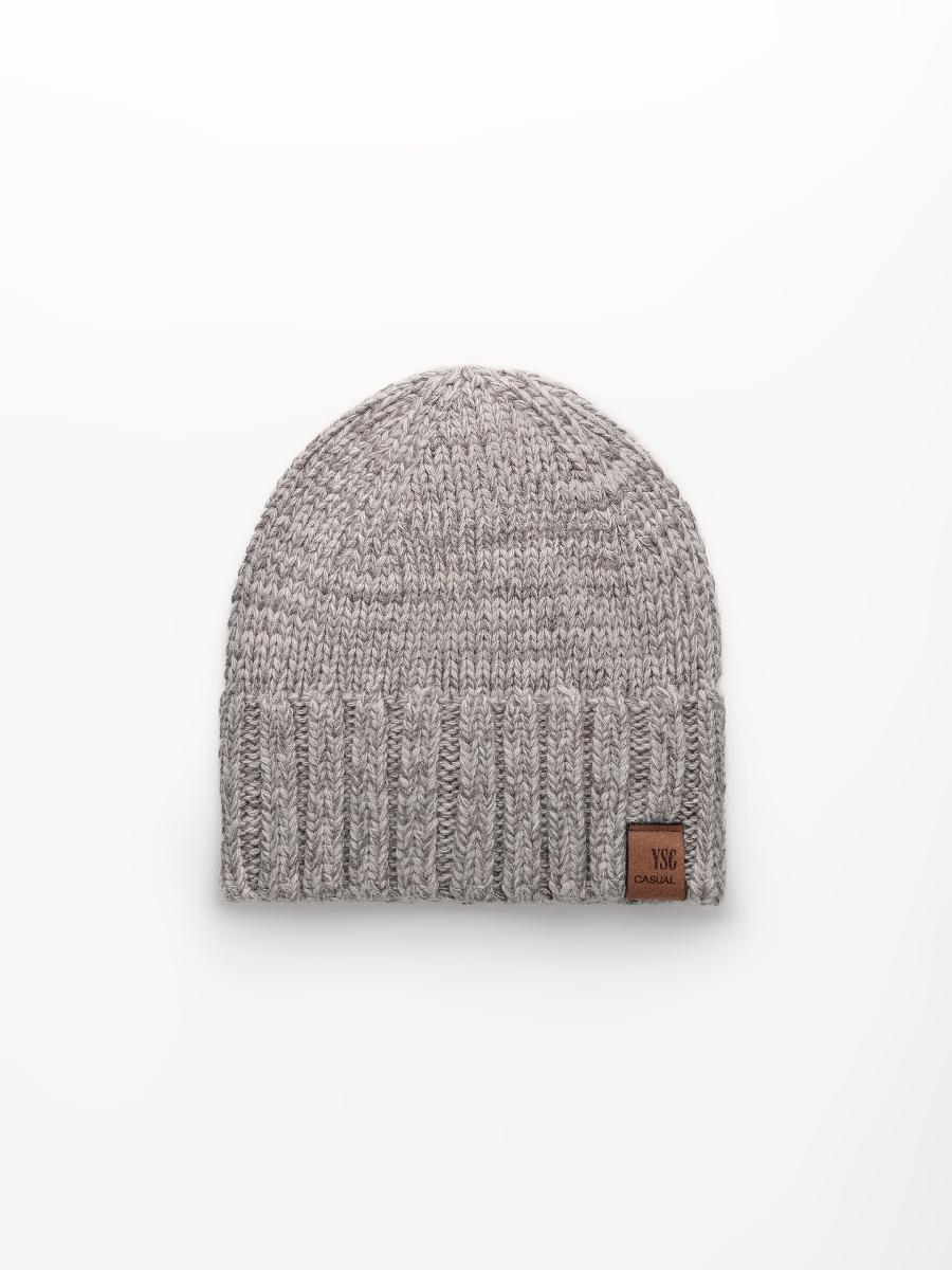 Шапка на флисе с ангорой, без отворота, со стильным кожаным декором.
