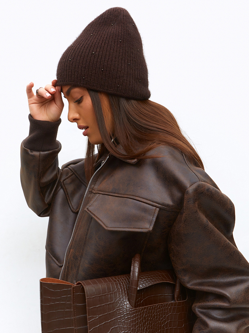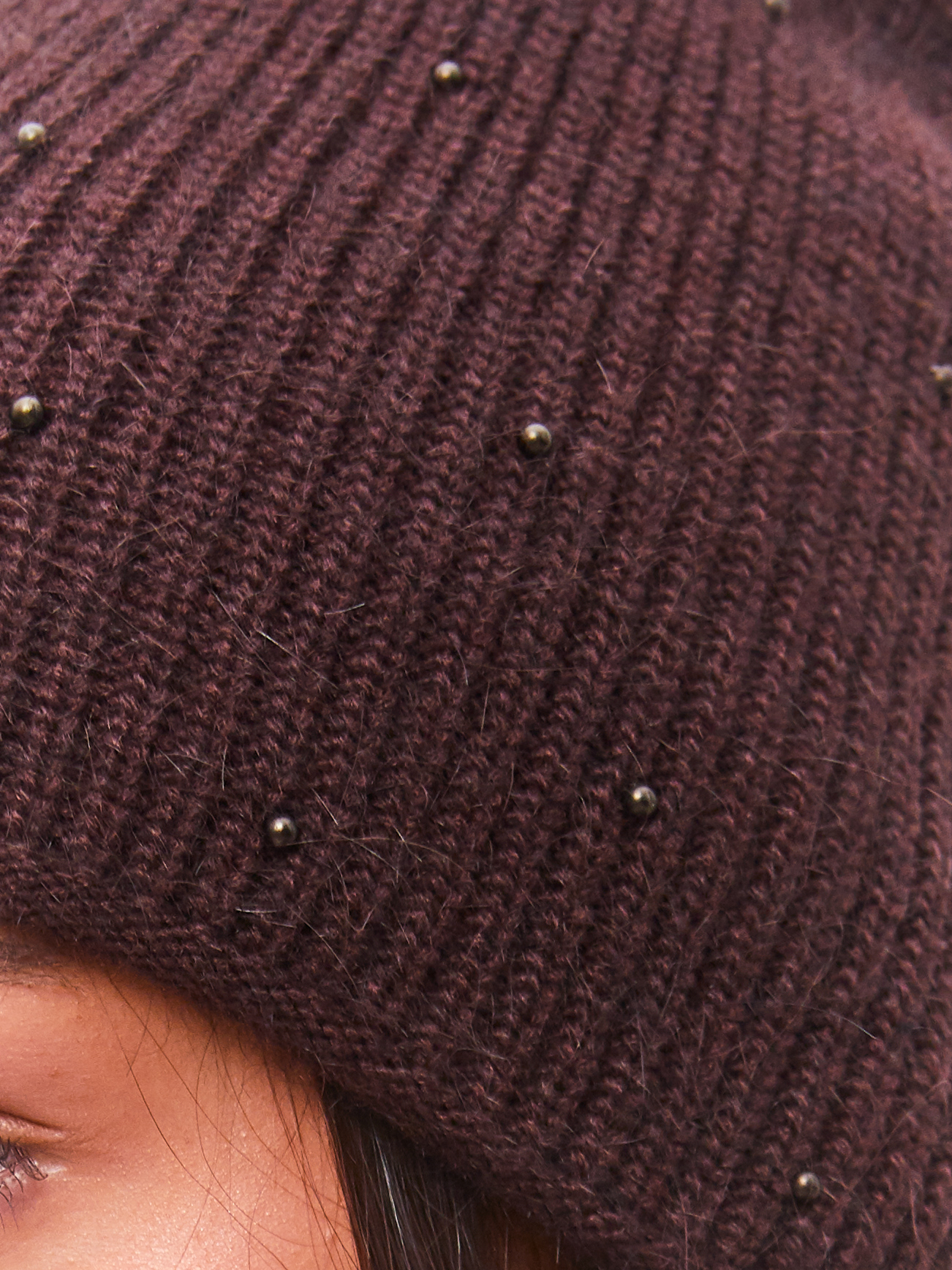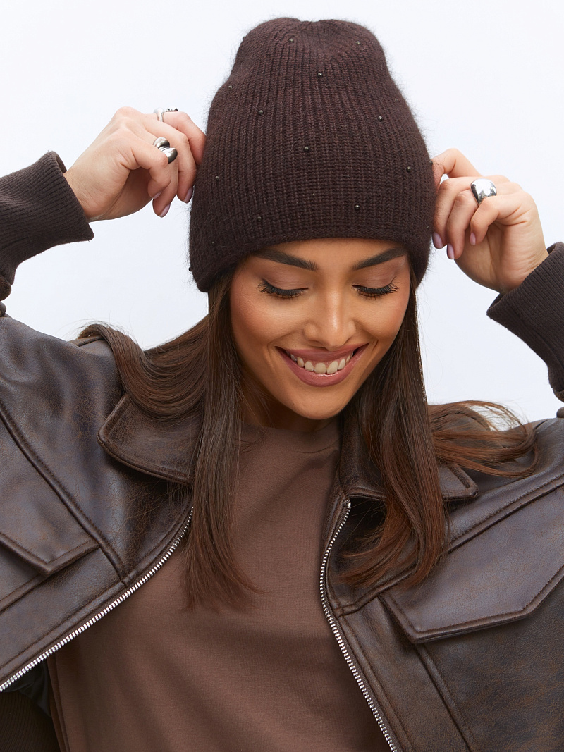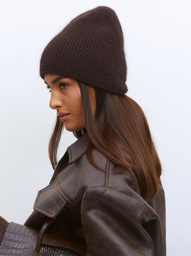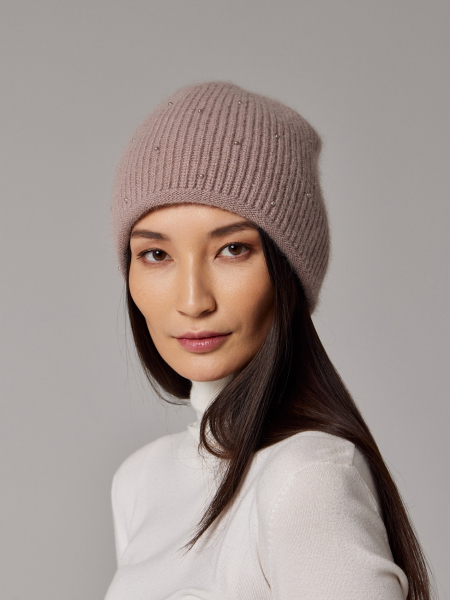 Шапка двойная с ангорой, без отворота, вставки элементов из жемчуга.