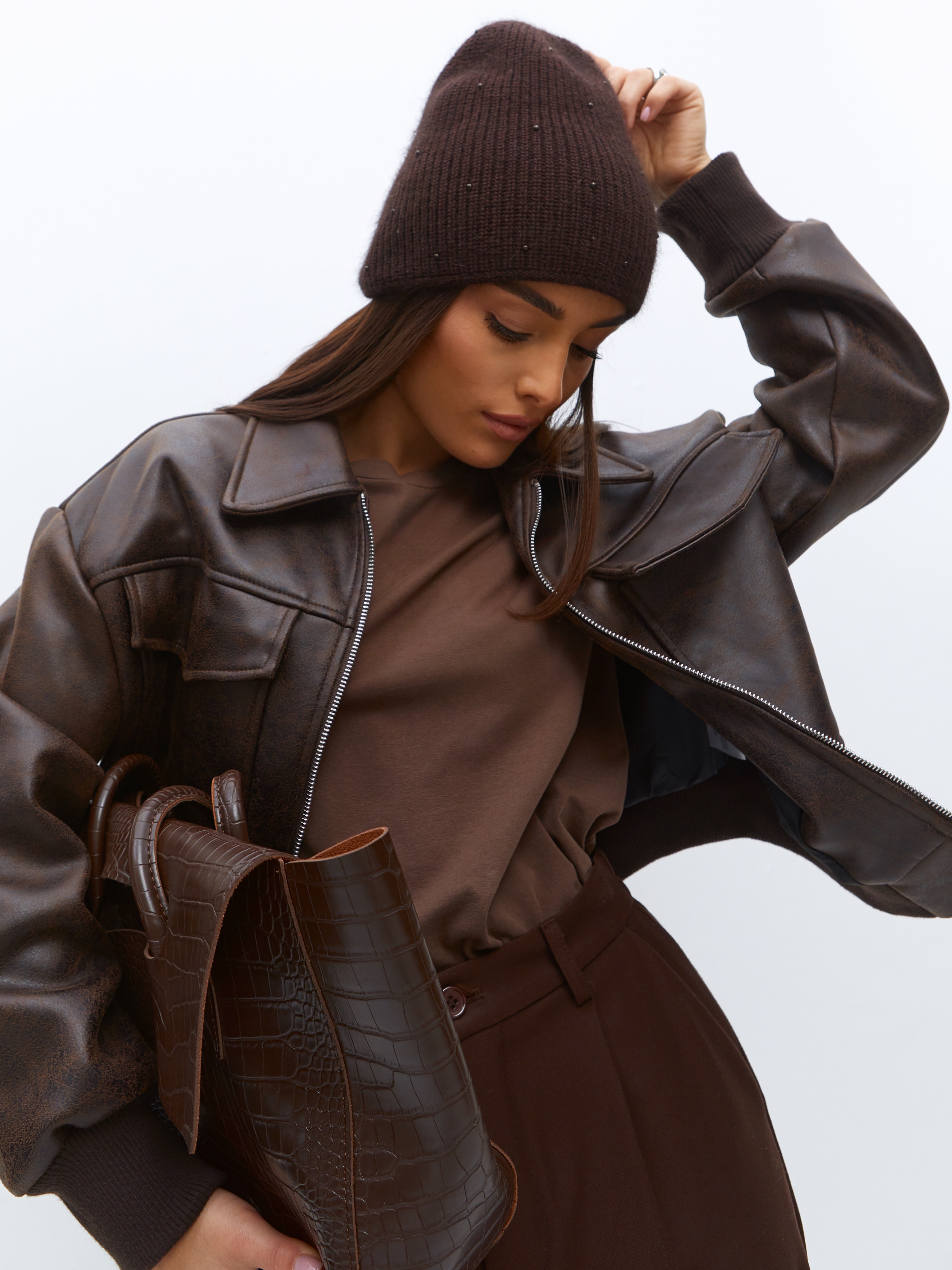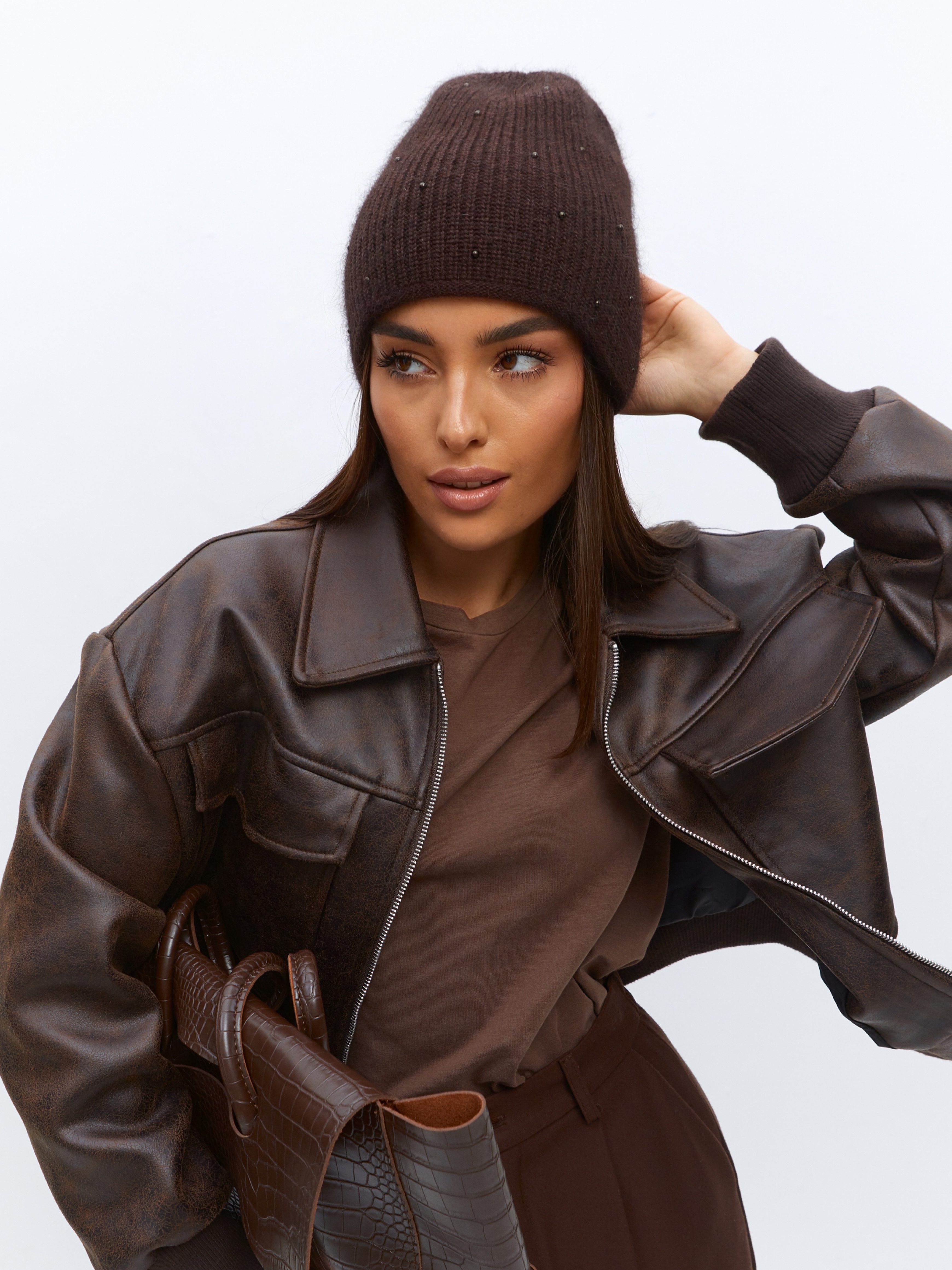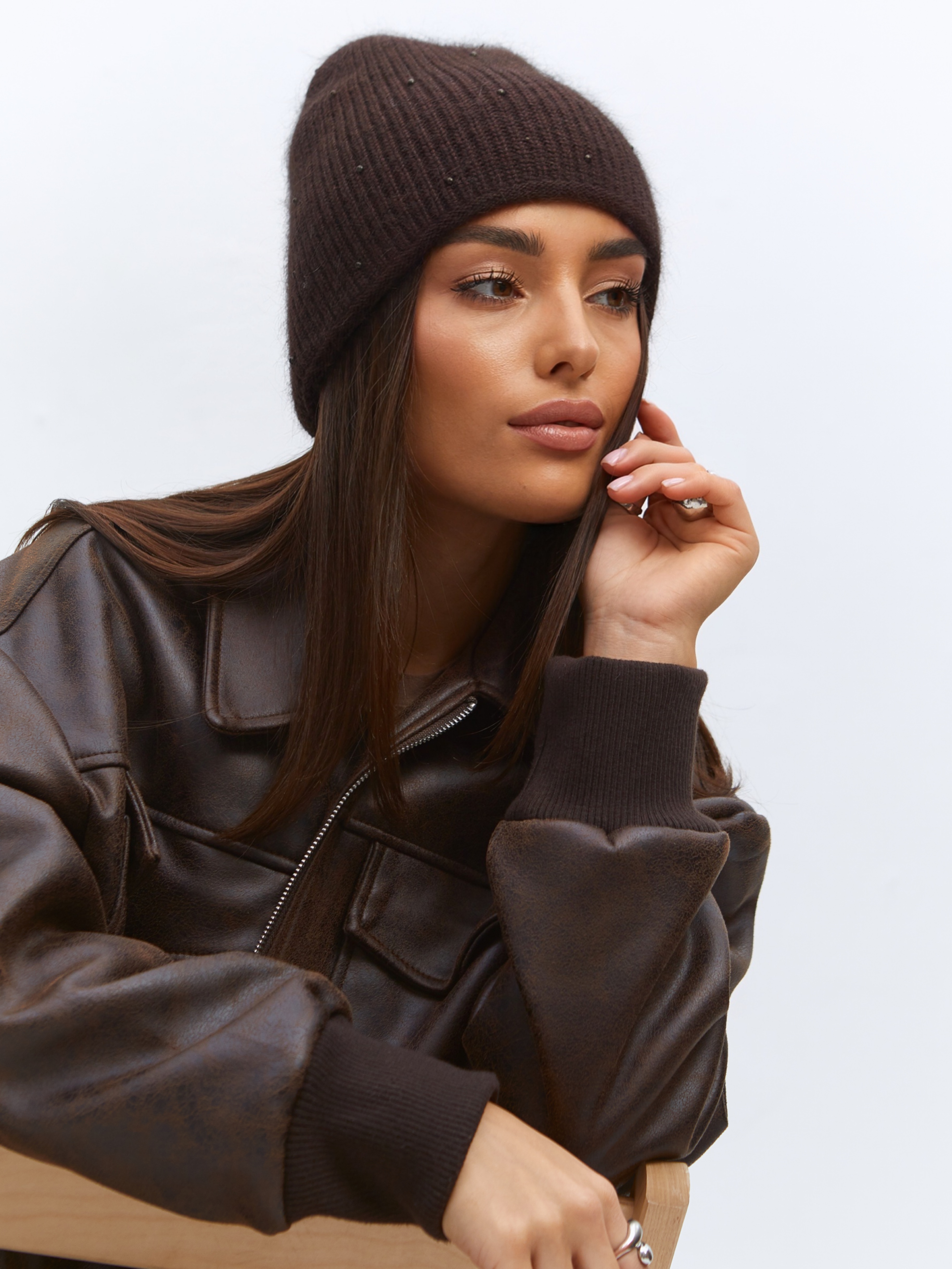 Шапка двойная с ангорой, без отворота, вставки элементов из жемчуга.