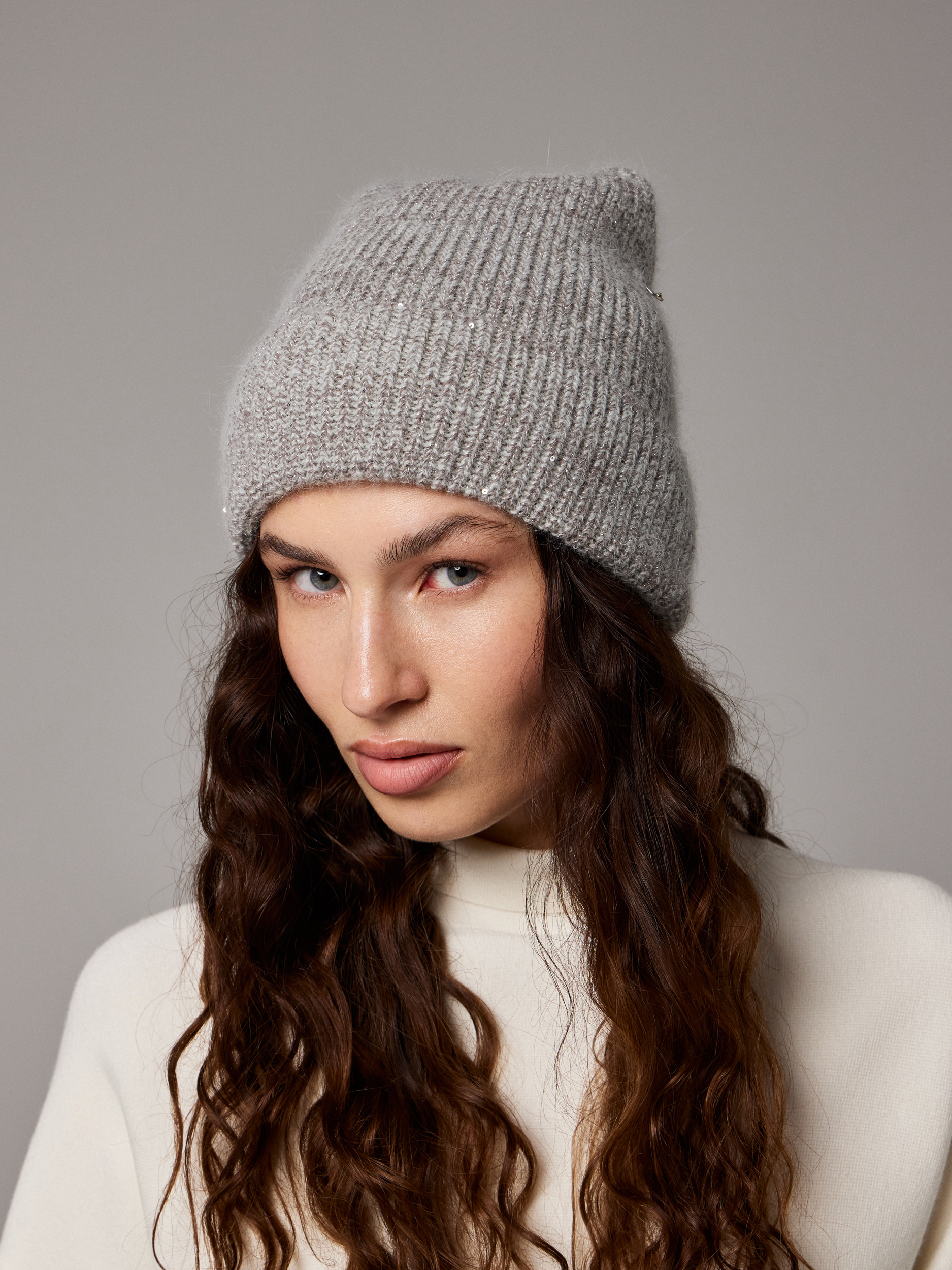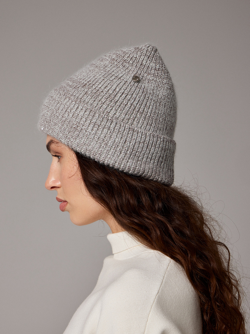 Шапка на велюре 40% ангора, с отворотом, с рюлексом.