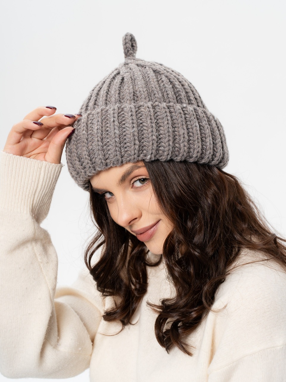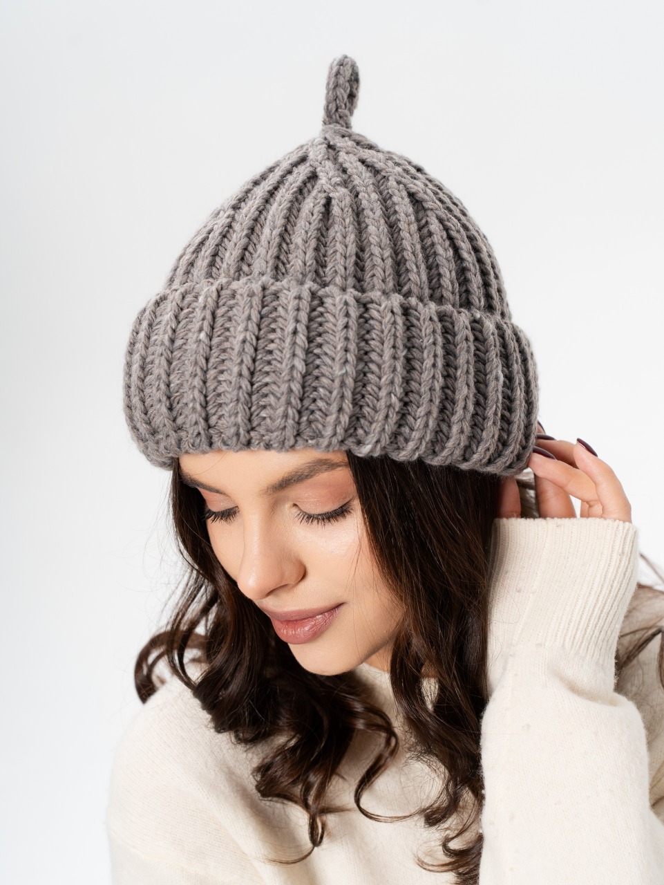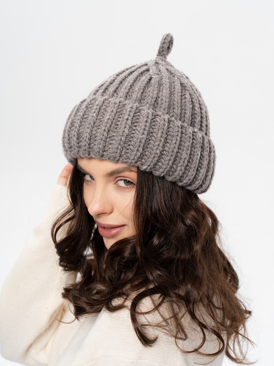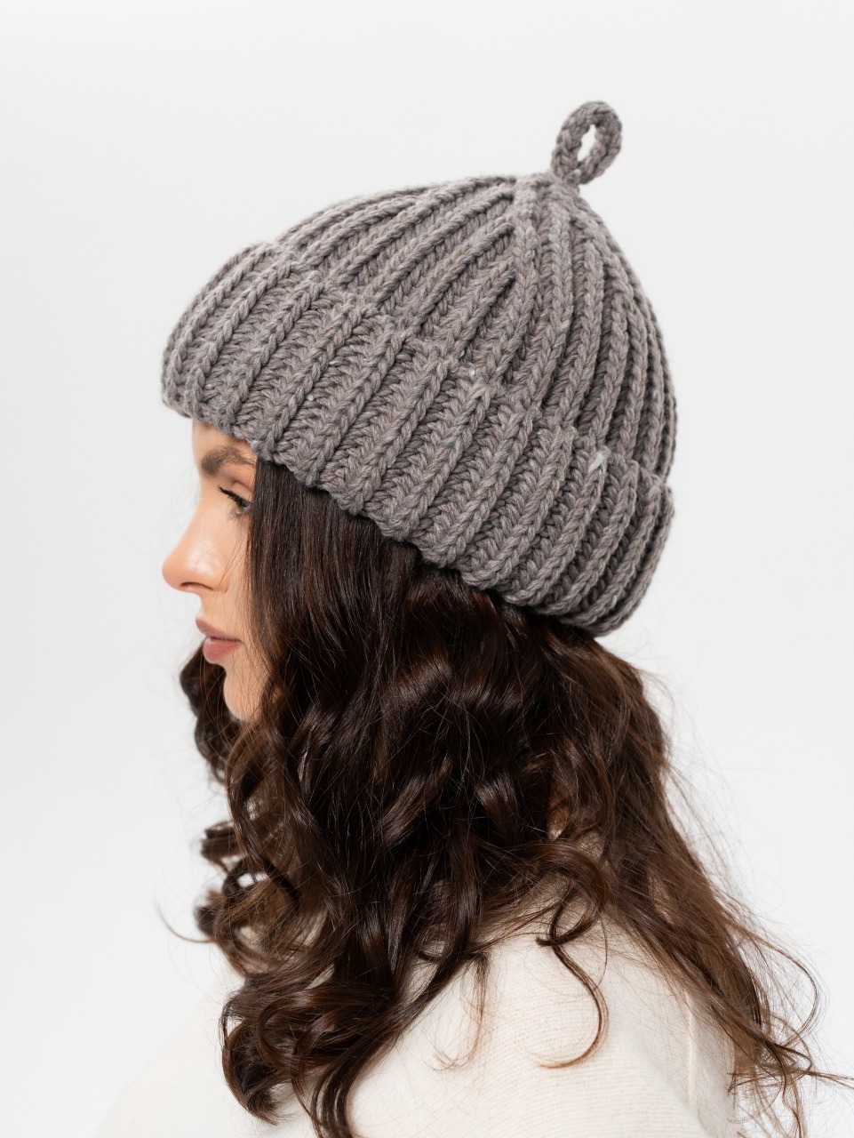 Шапка докерка, крупная вязка с отворотом и петелькой. Шерсть мериноса