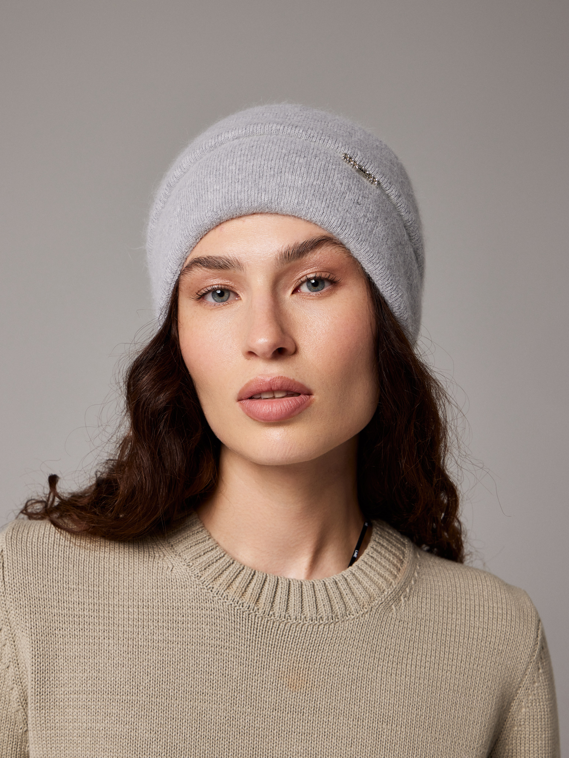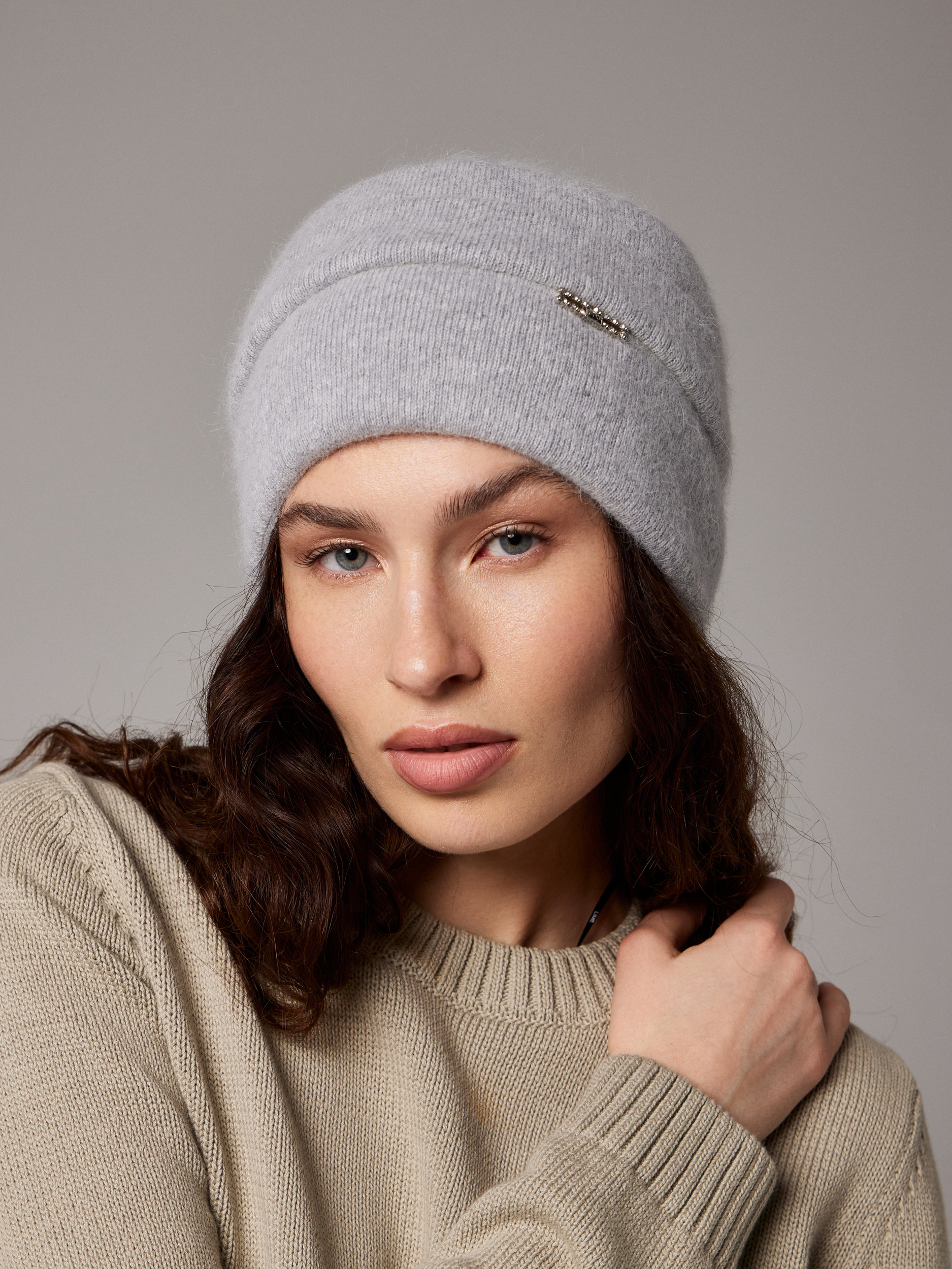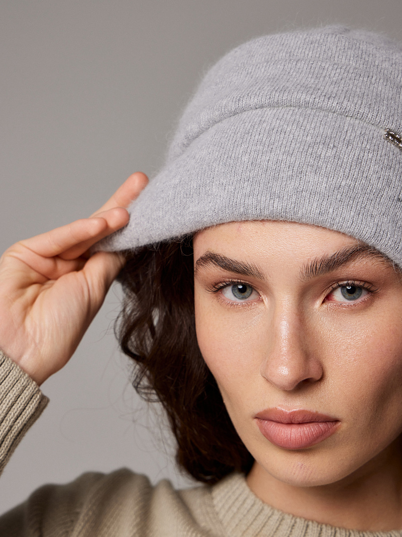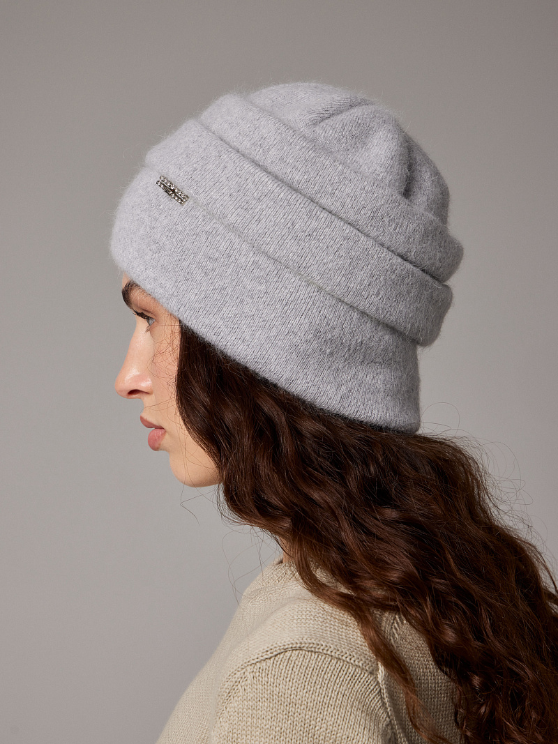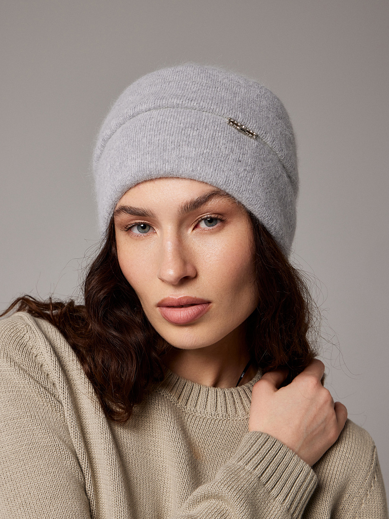 Шапка двойная 40% ангора, с украшением