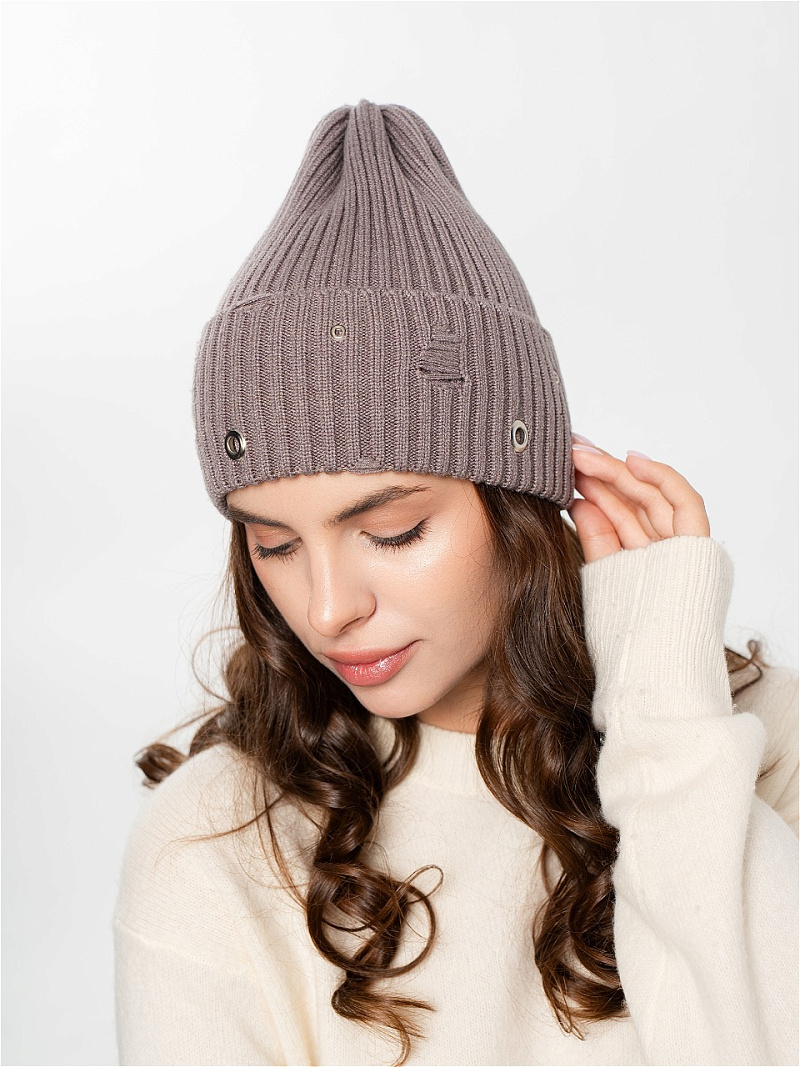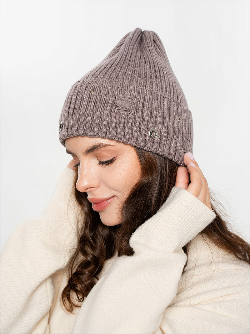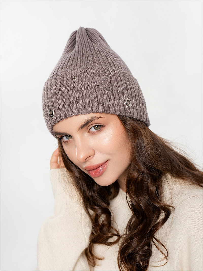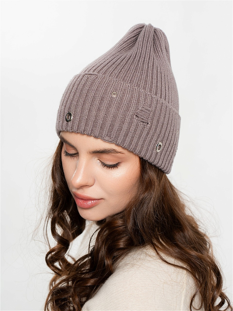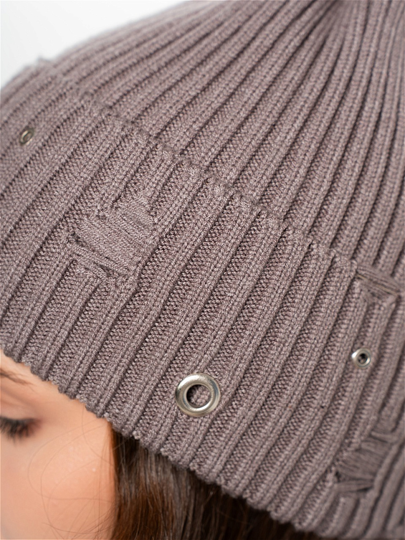 Шапка одинарная с кашемиром с подворотом. Украшена люверсами.
