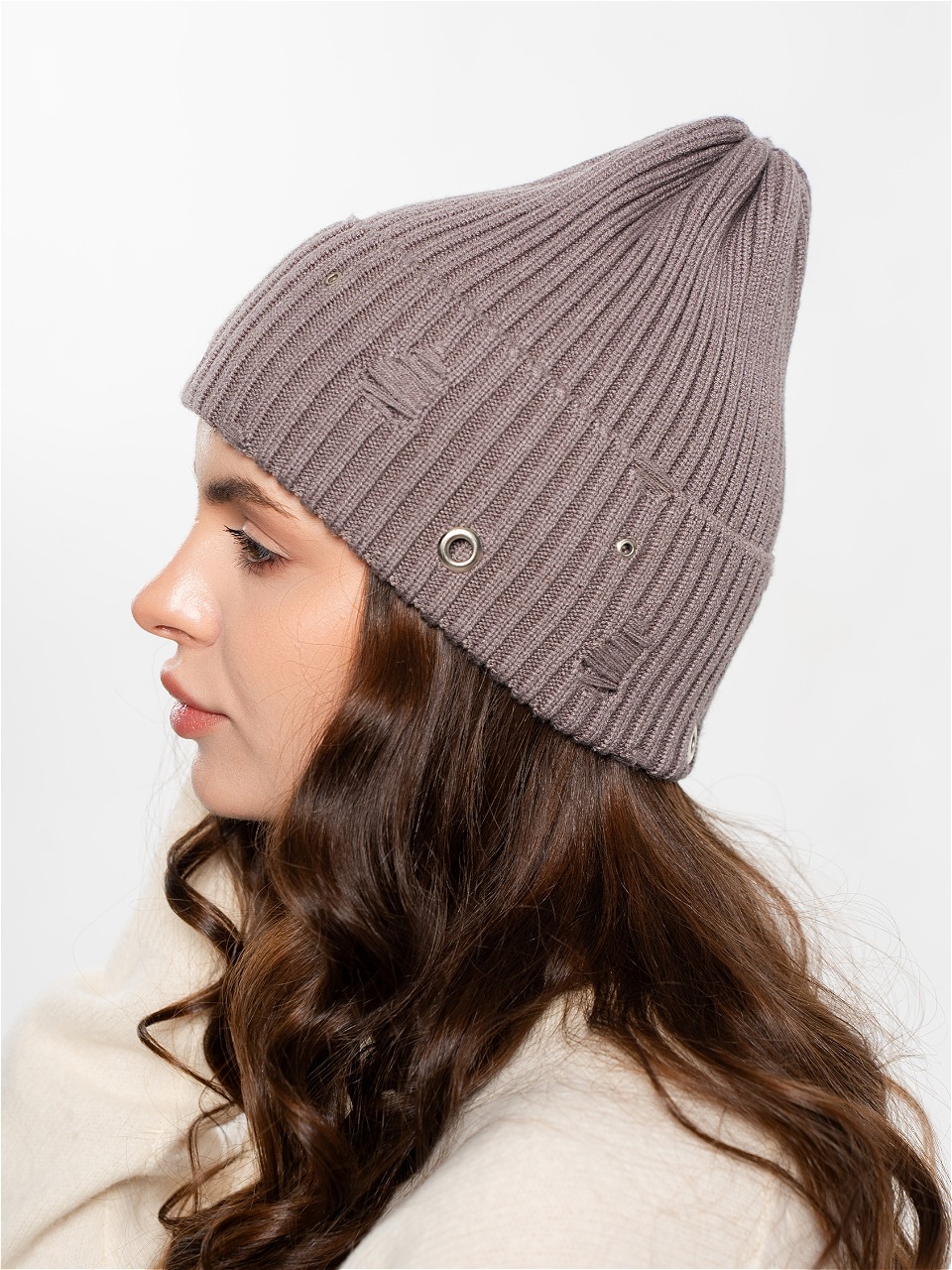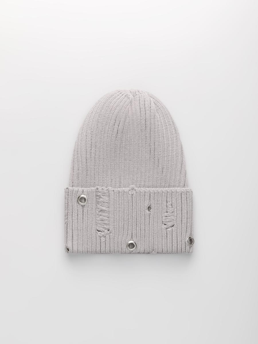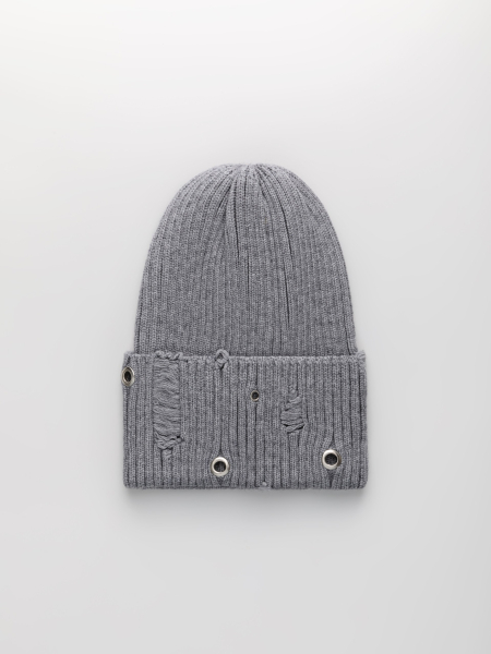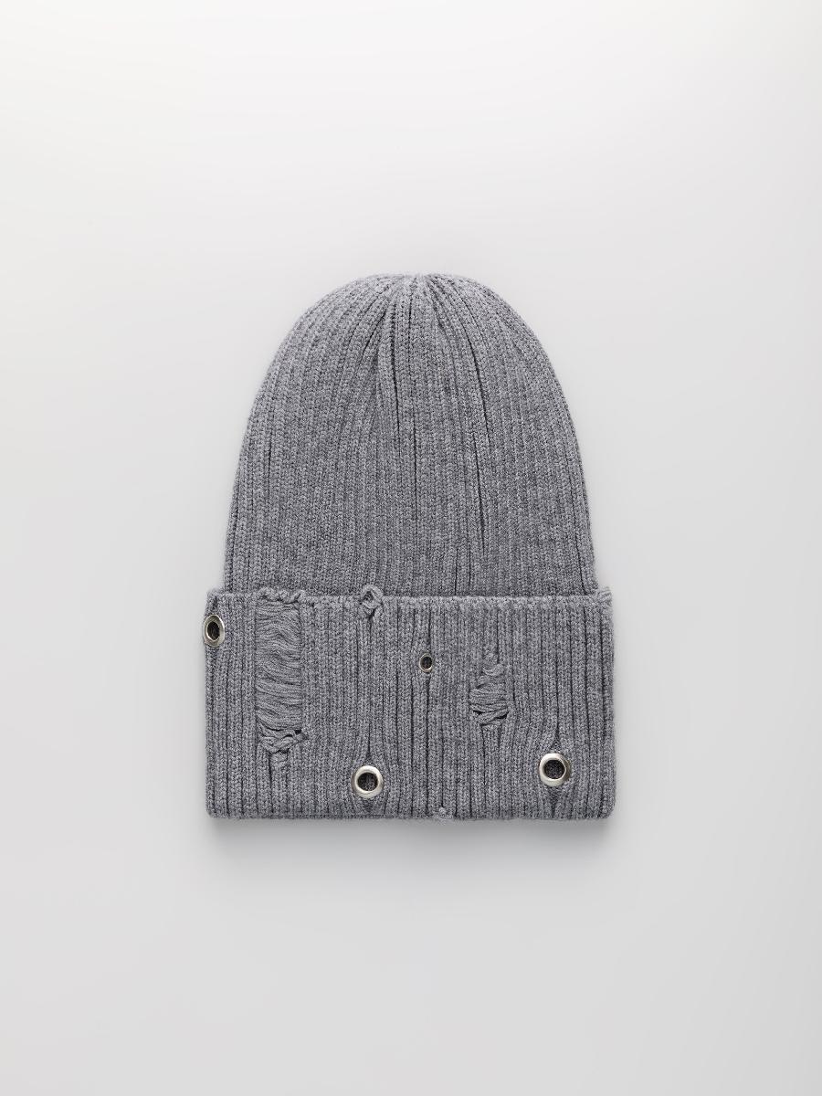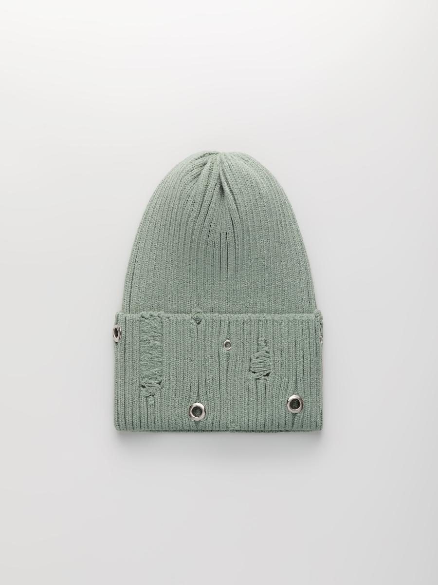 Шапка одинарная с кашемиром с подворотом. Украшена люверсами.