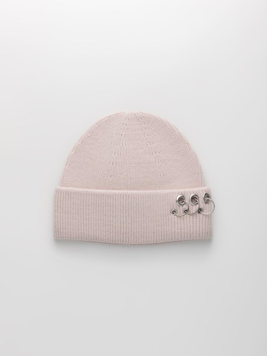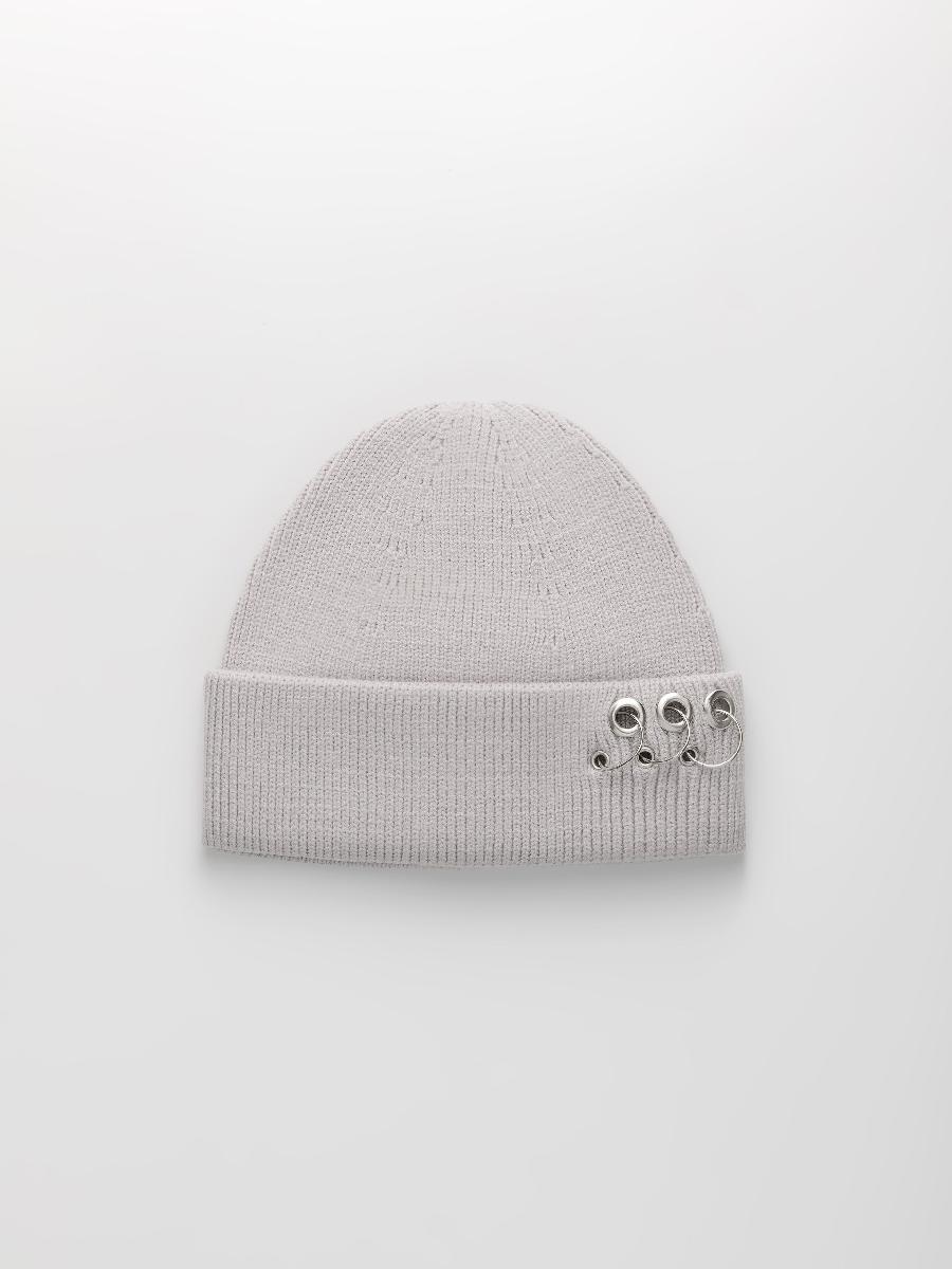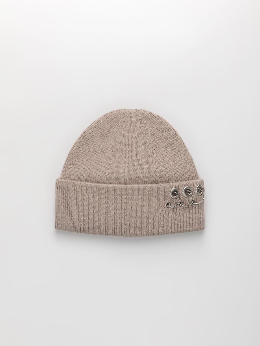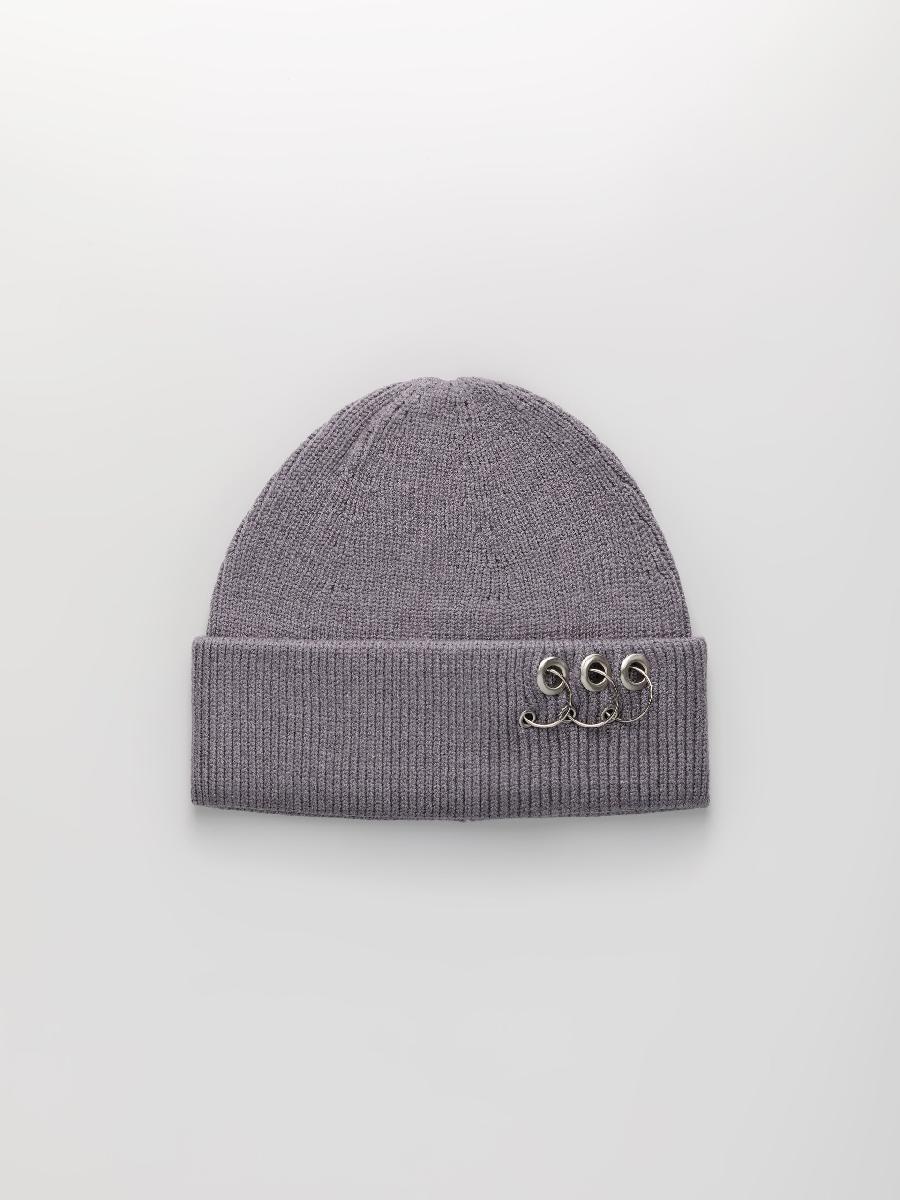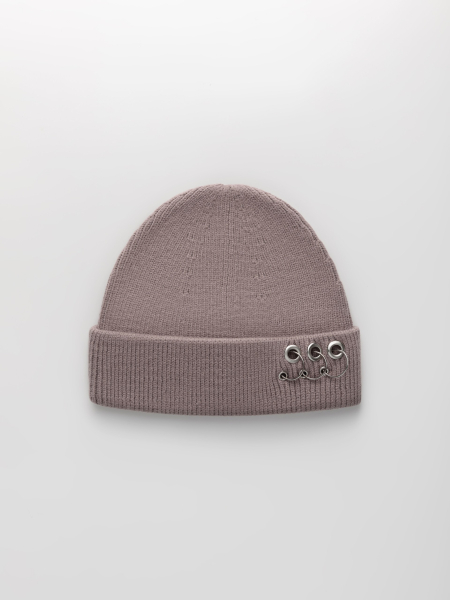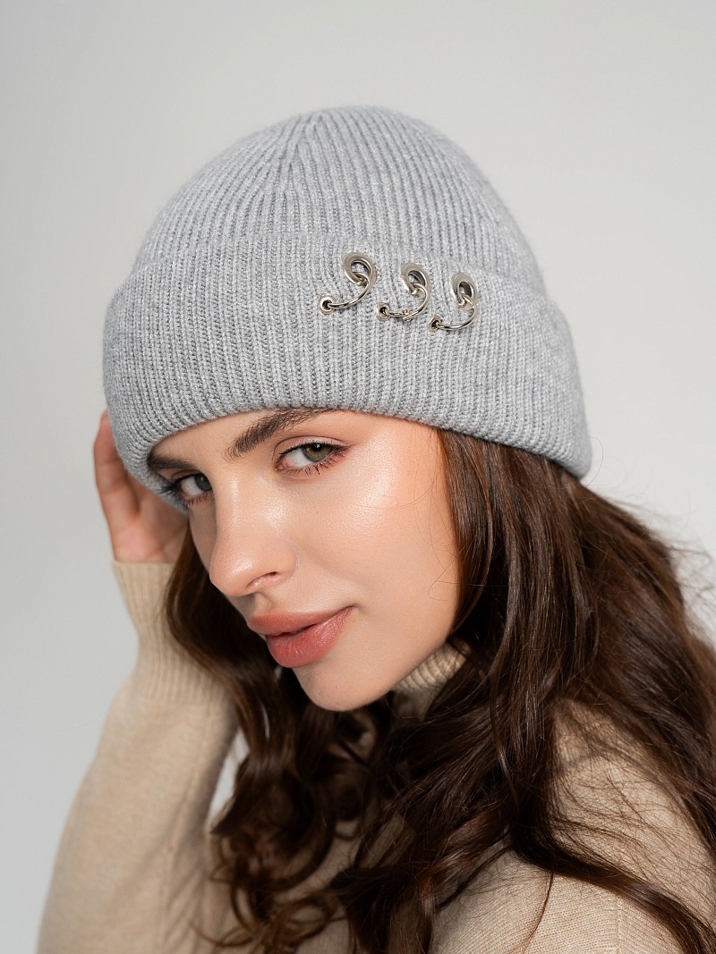 Шапка одинарная с кашемиром с подворотом. Украшена люверсами и кольцами.