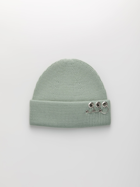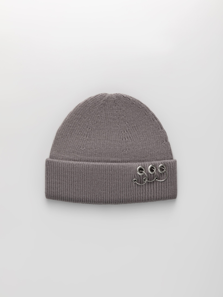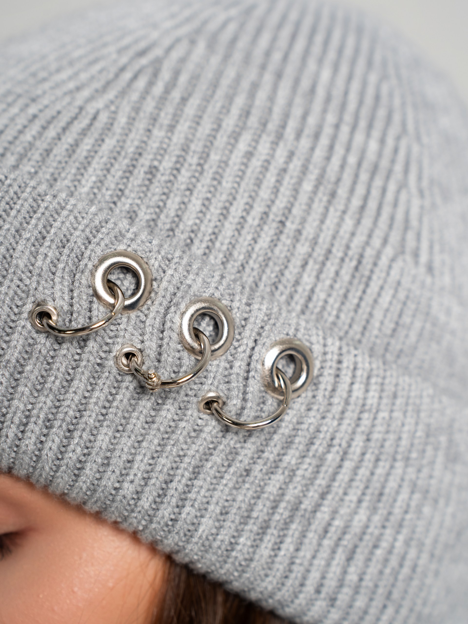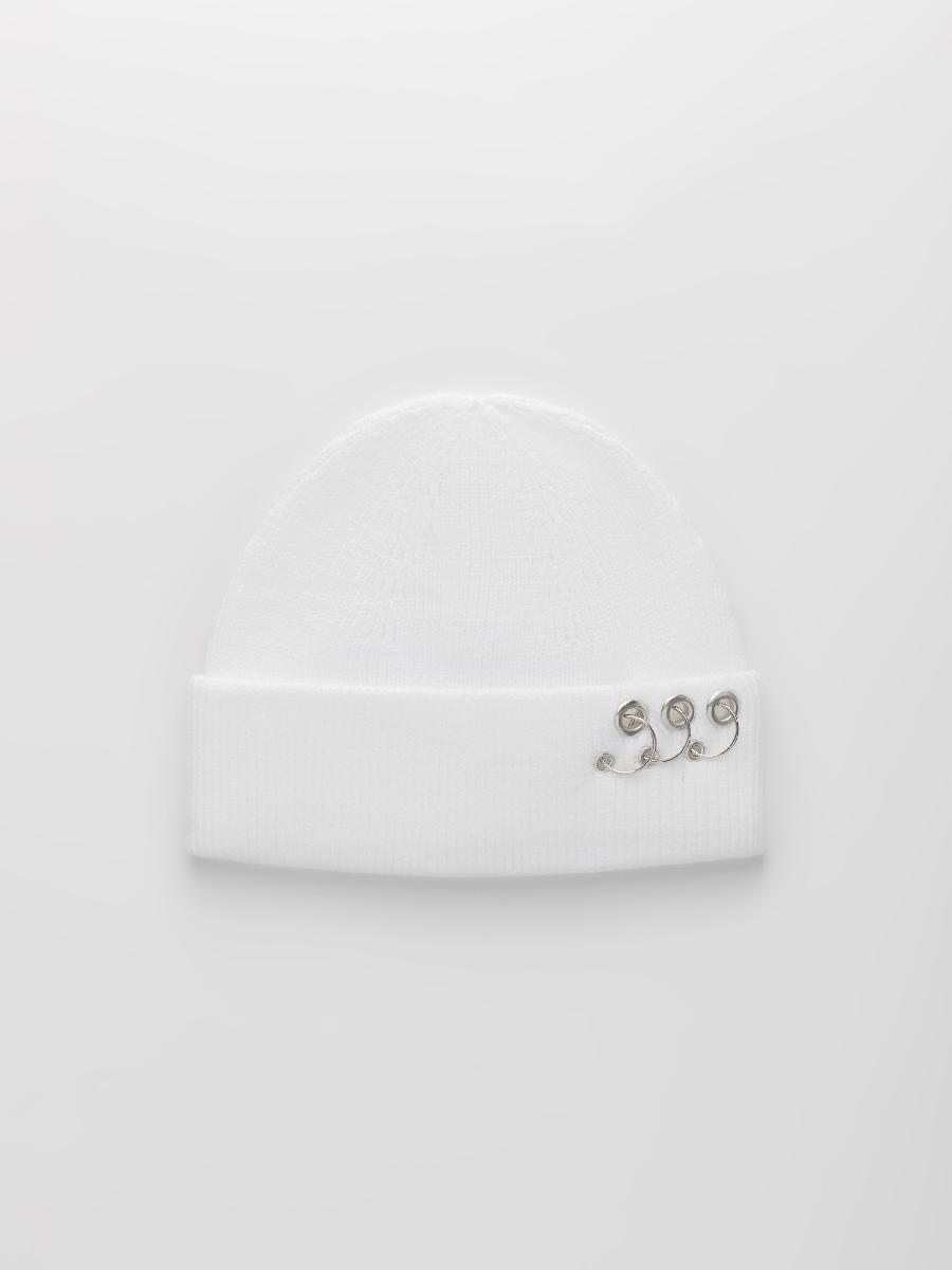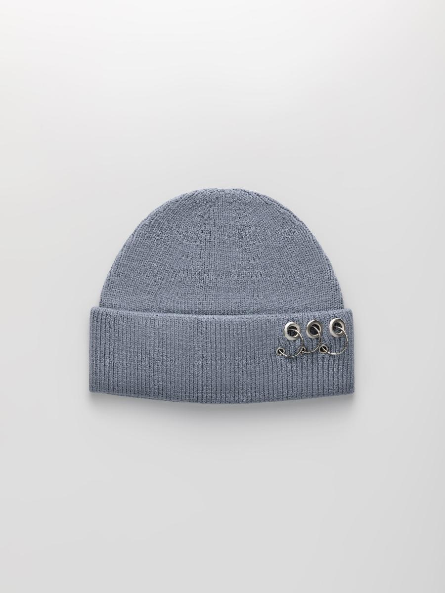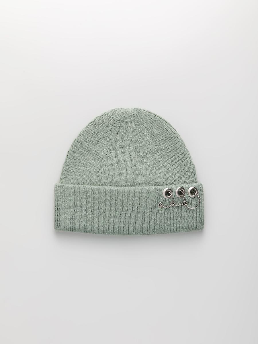 Шапка одинарная с кашемиром с подворотом. Украшена люверсами и кольцами.