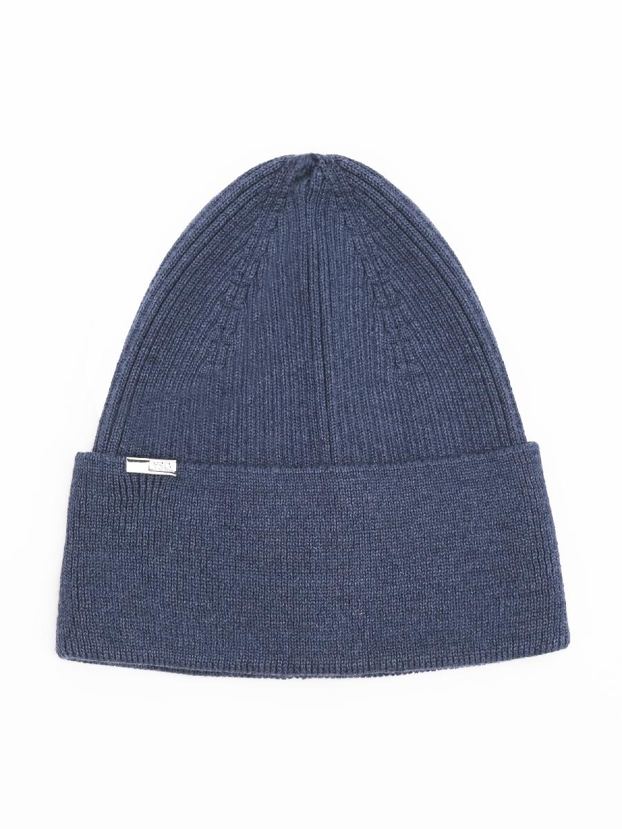 Шапка одинарная с хлопком, с отворотом и металлическим декором.