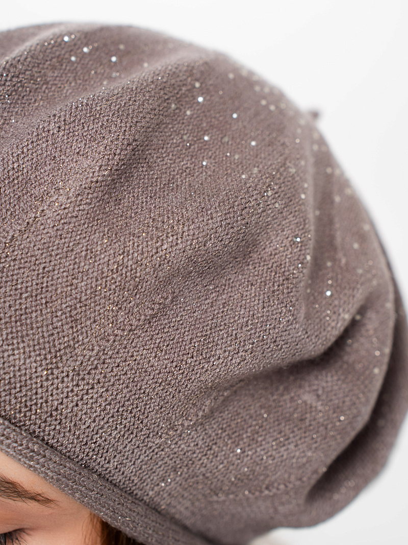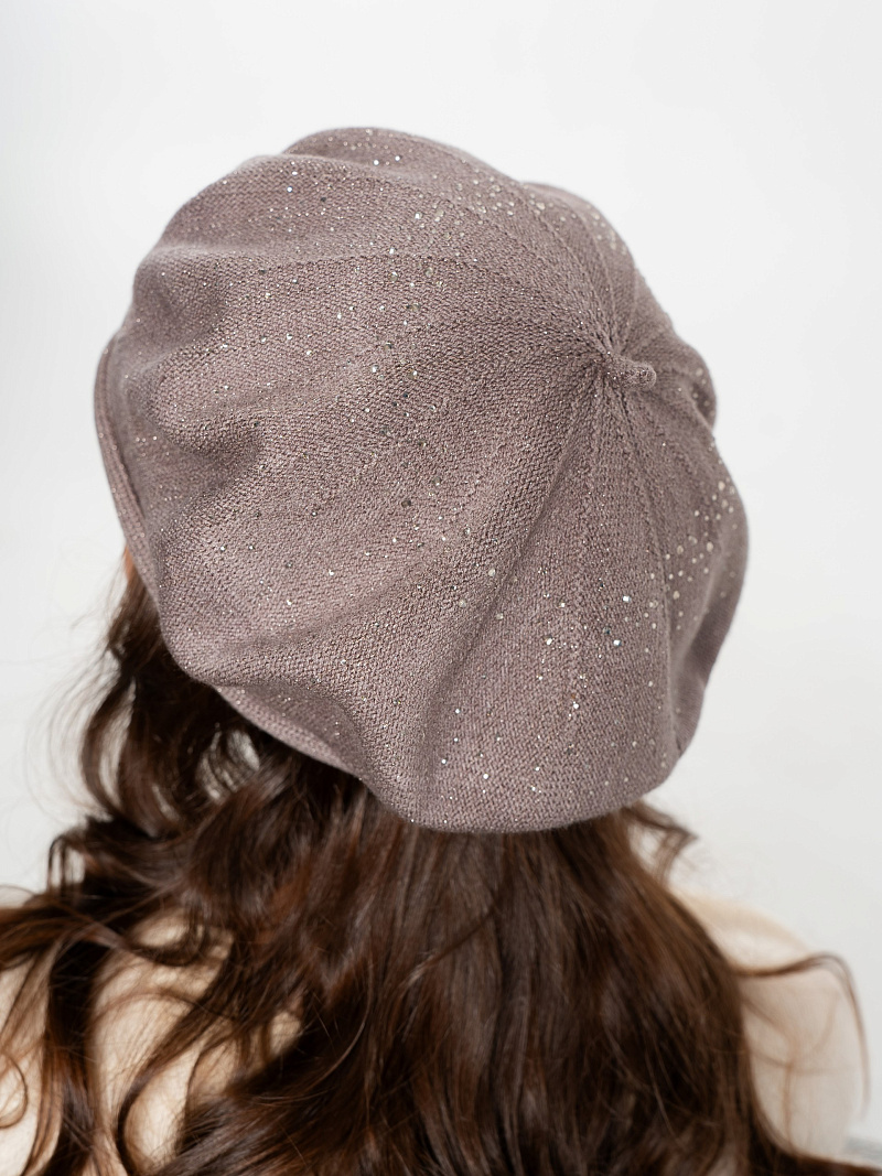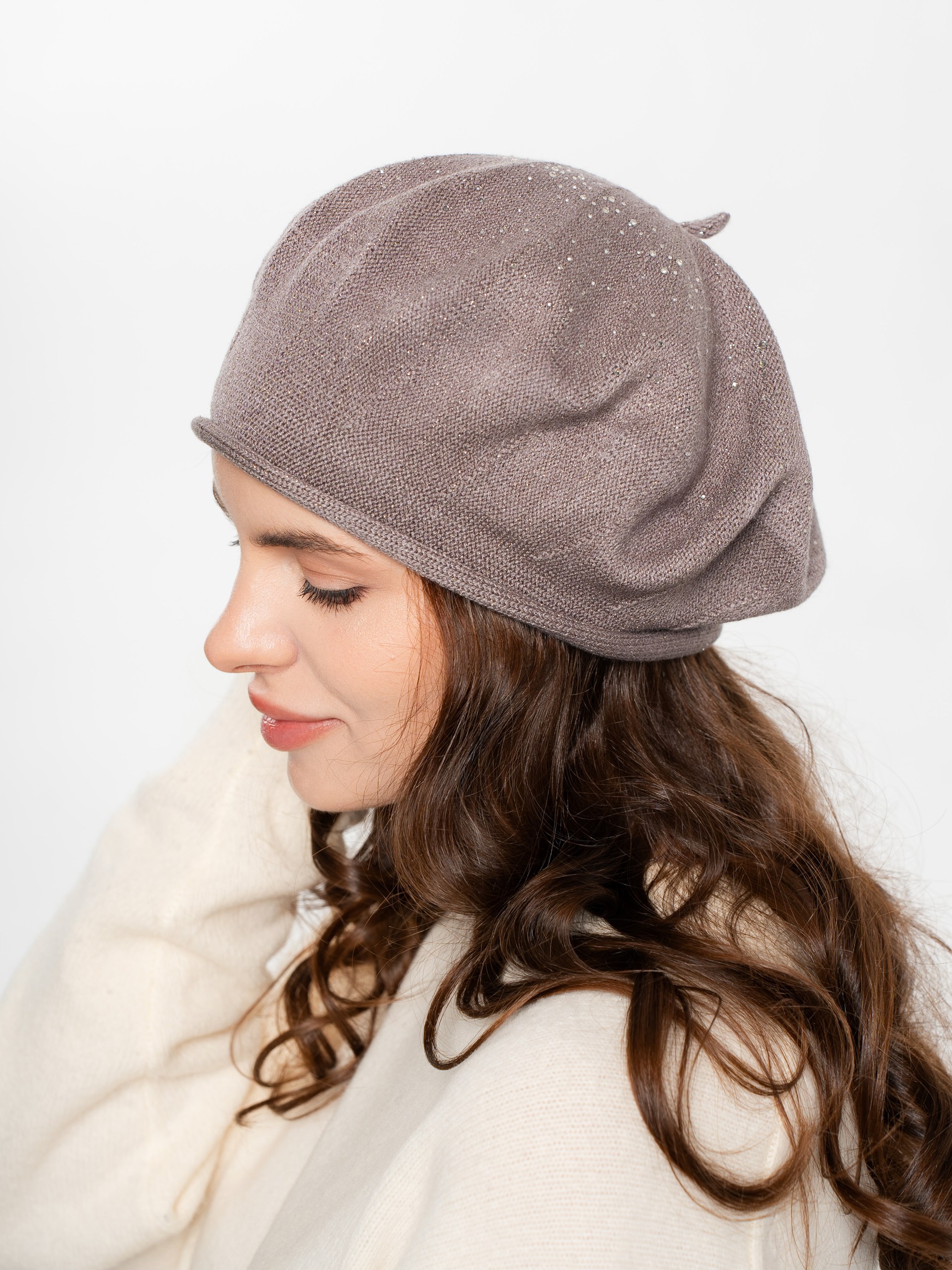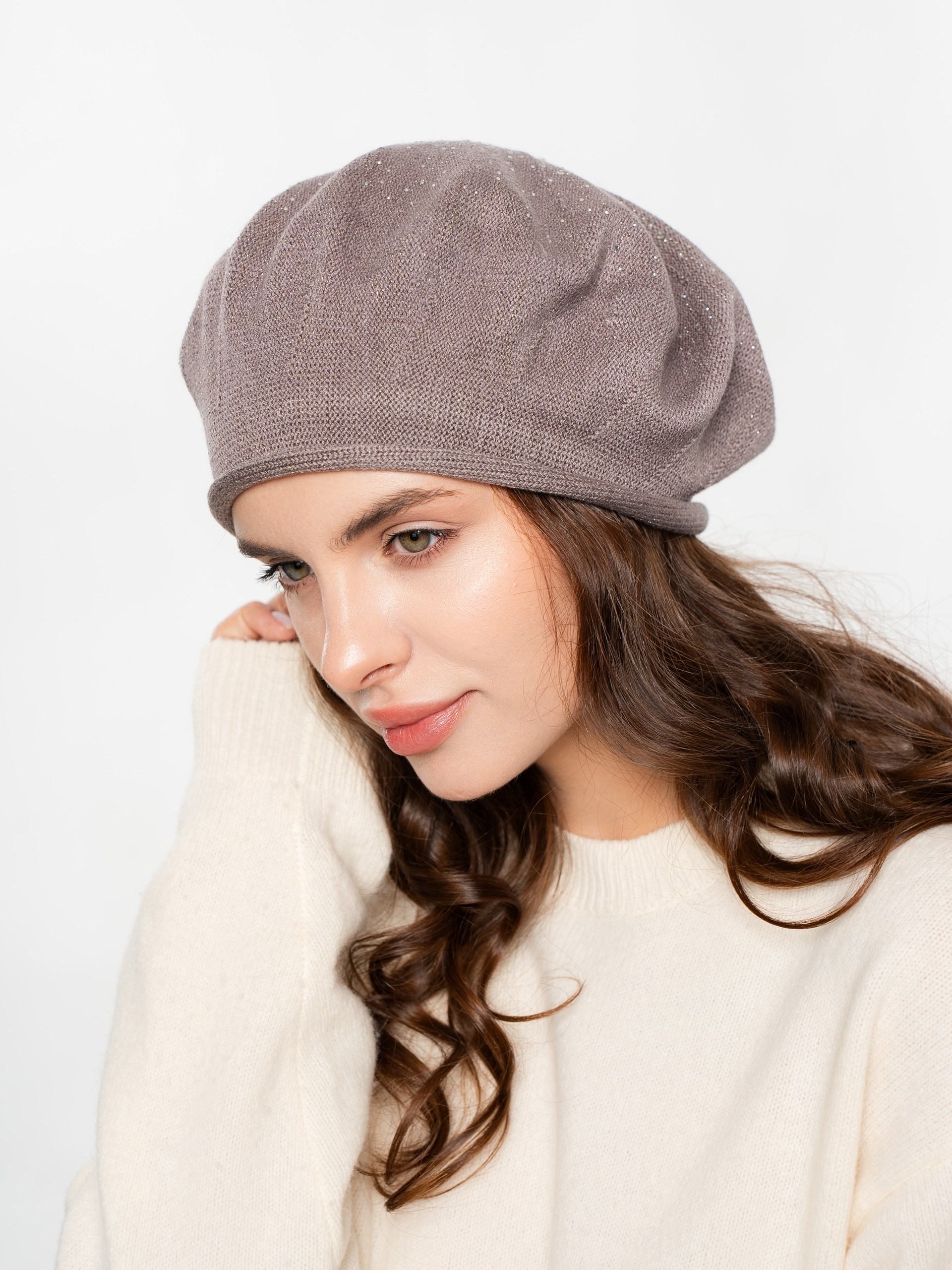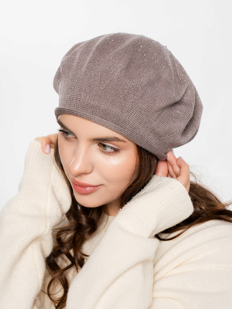 Берет однослойный с руликом и со стразовым мотивом и люрексом