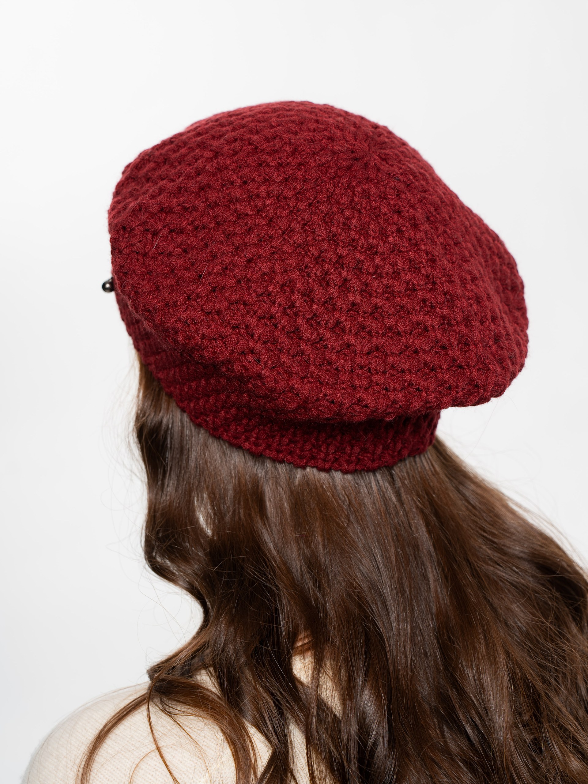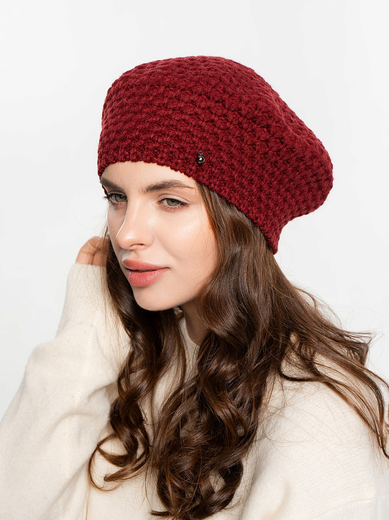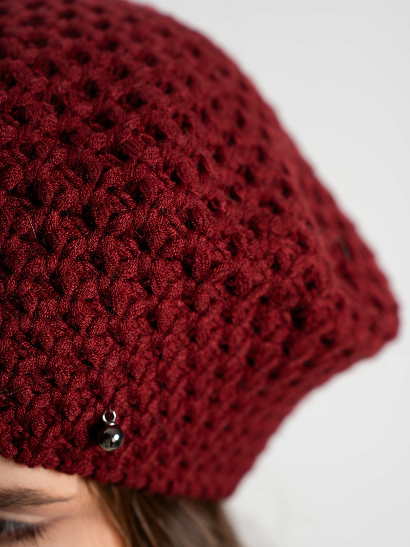 Берет однослойный крупной вязки с металлическим декором