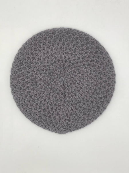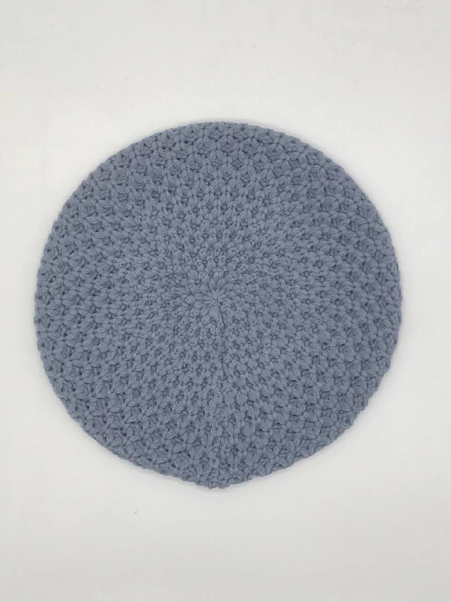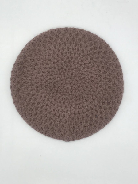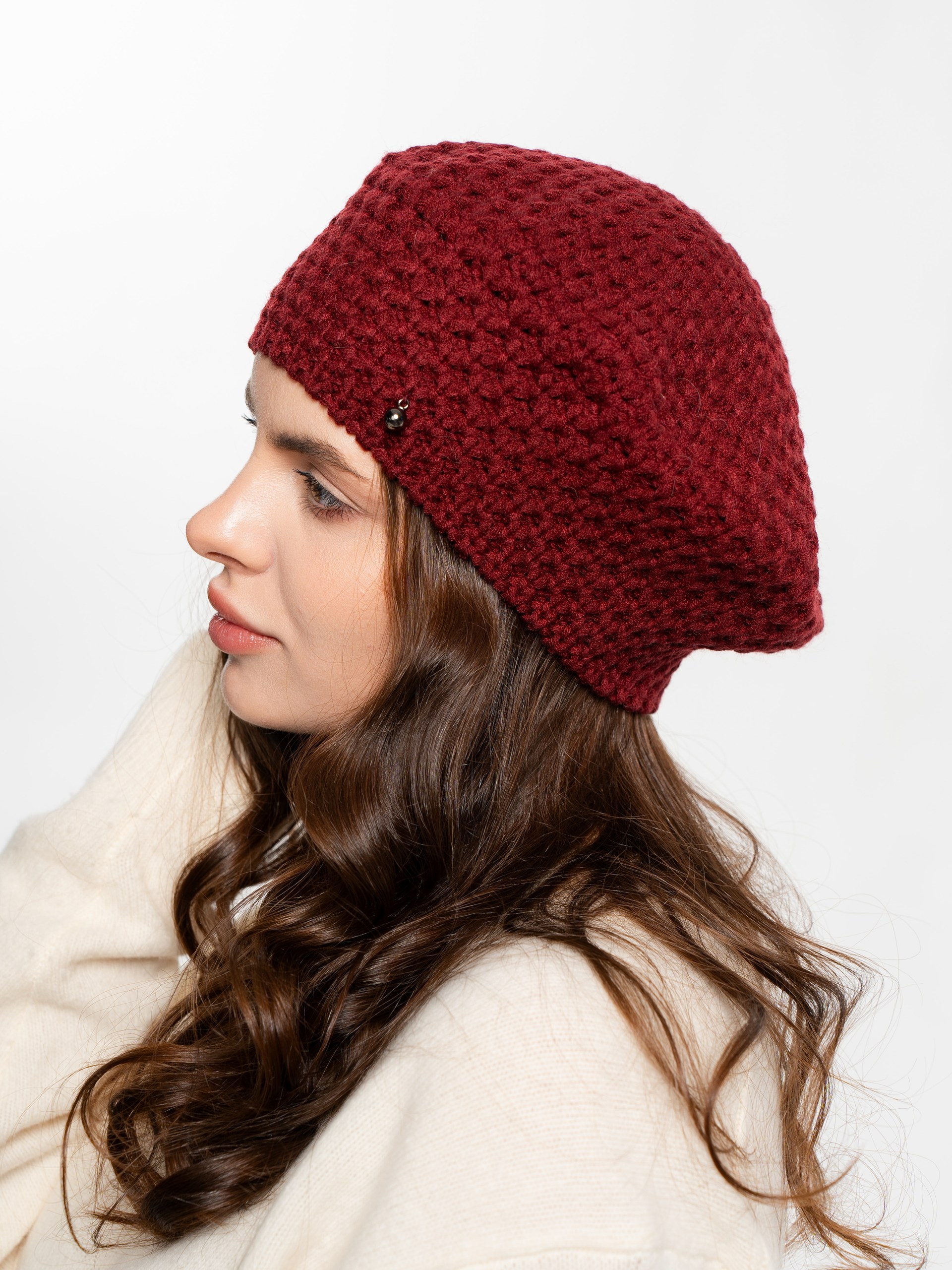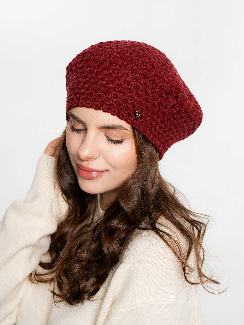 Берет однослойный крупной вязки с металлическим декором
