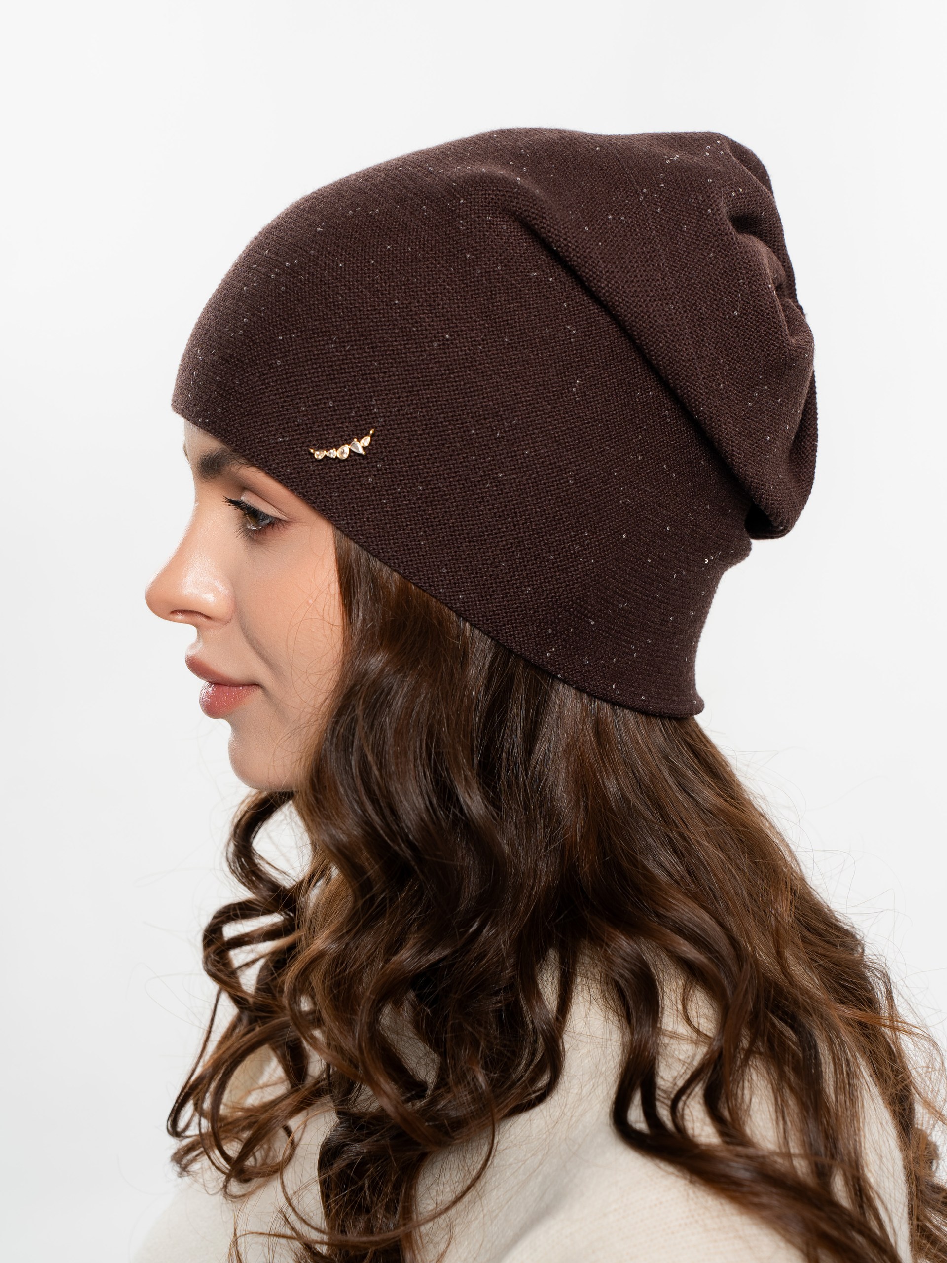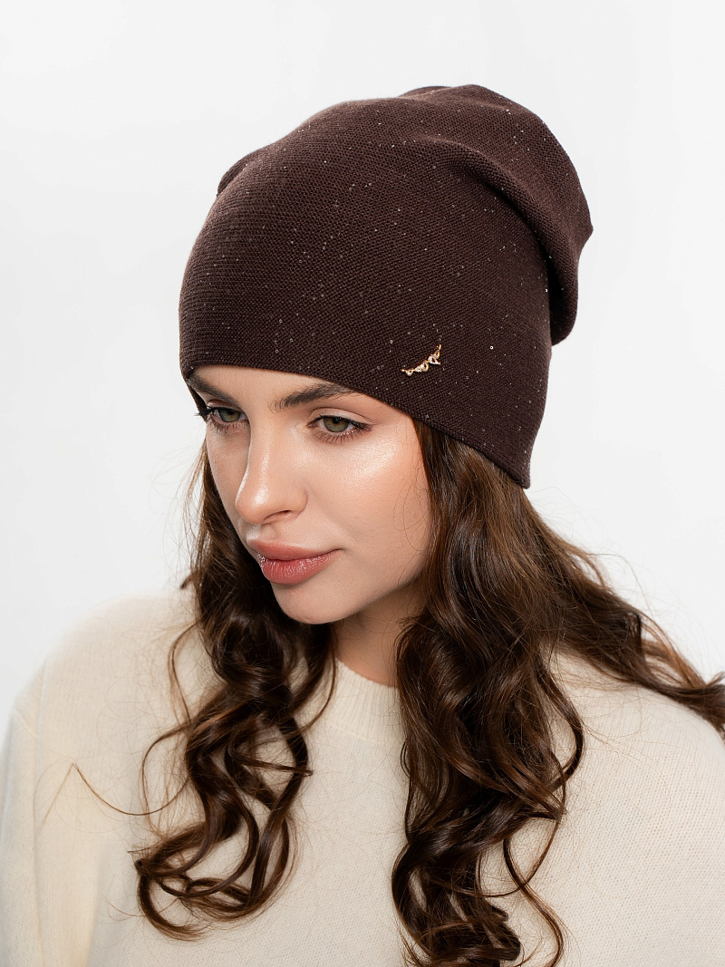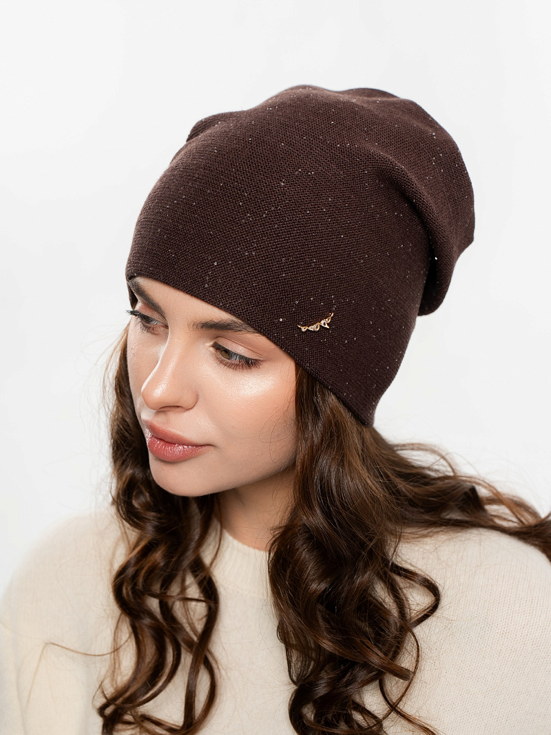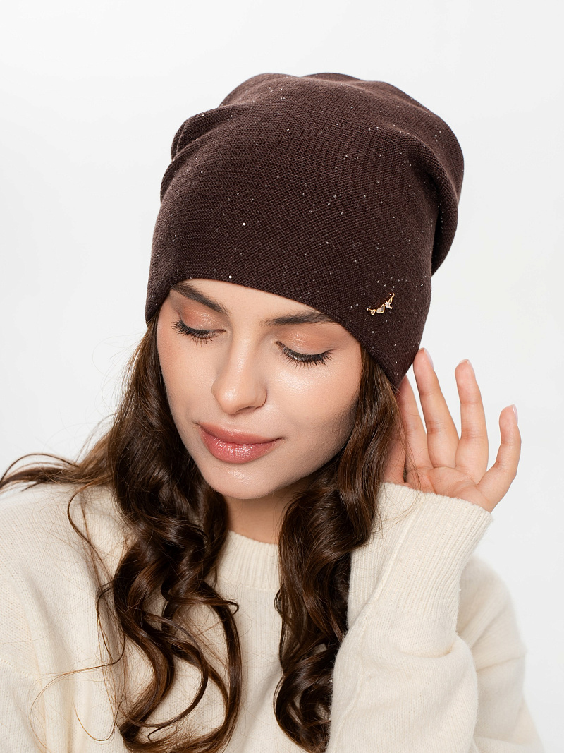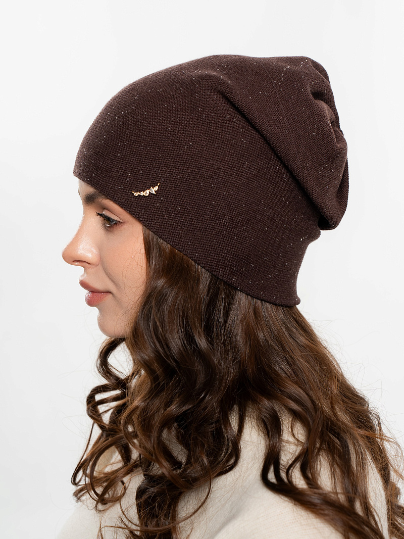 Шапка двойная с закладкой на макушке,с пайеткой и металлическим декором