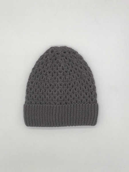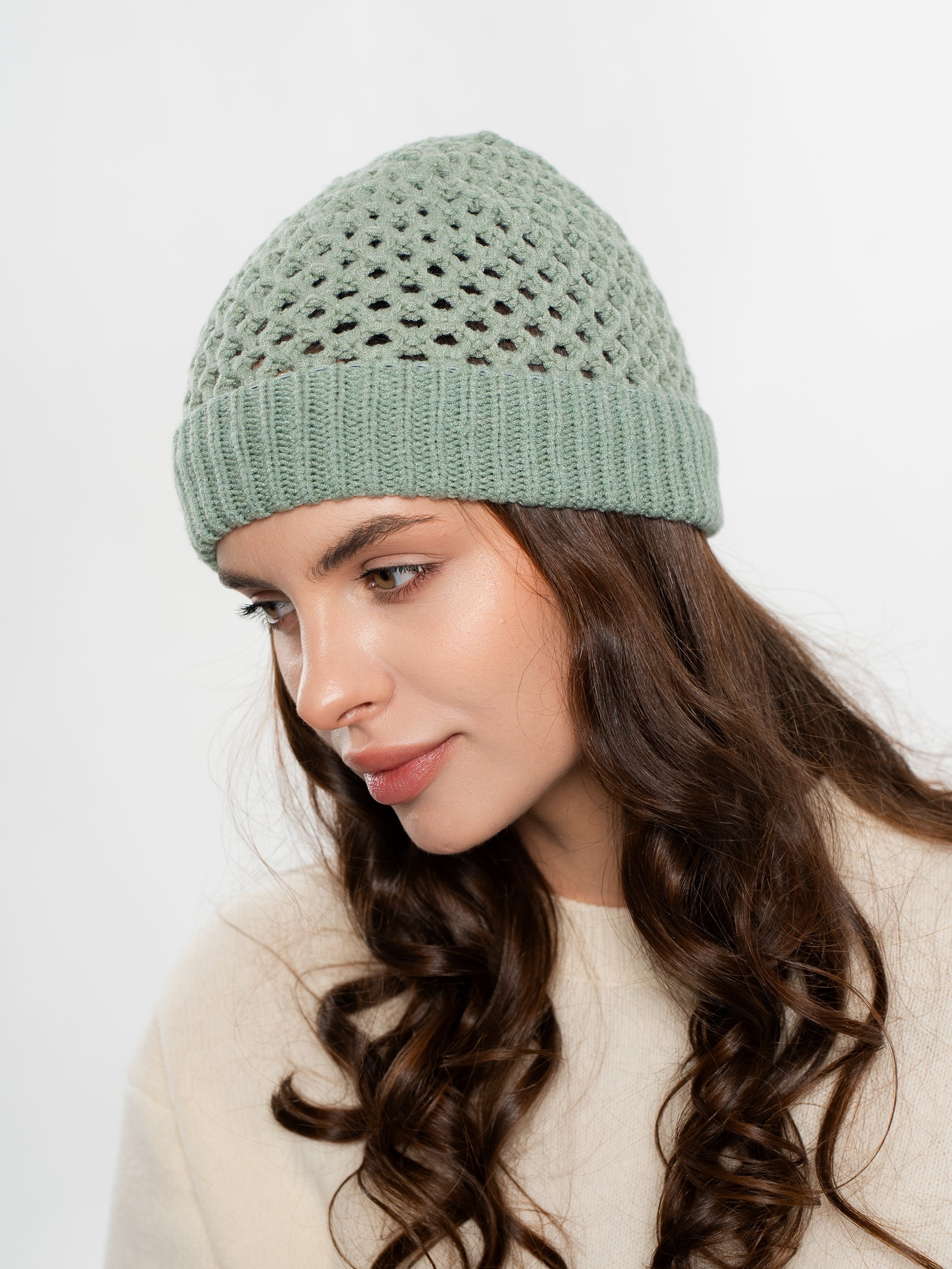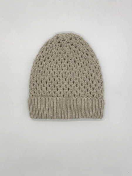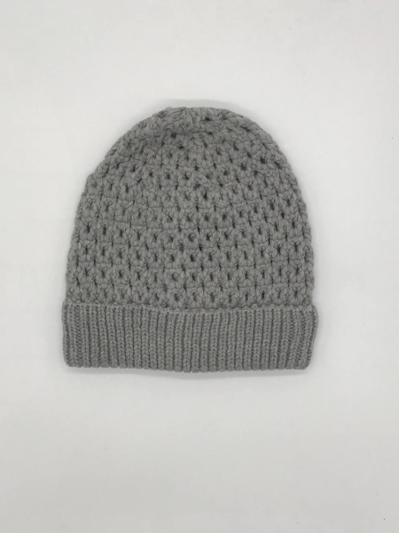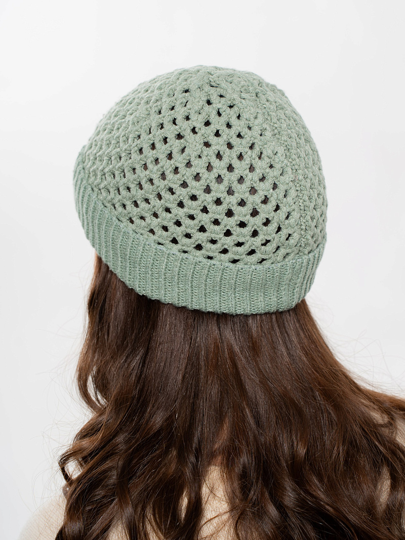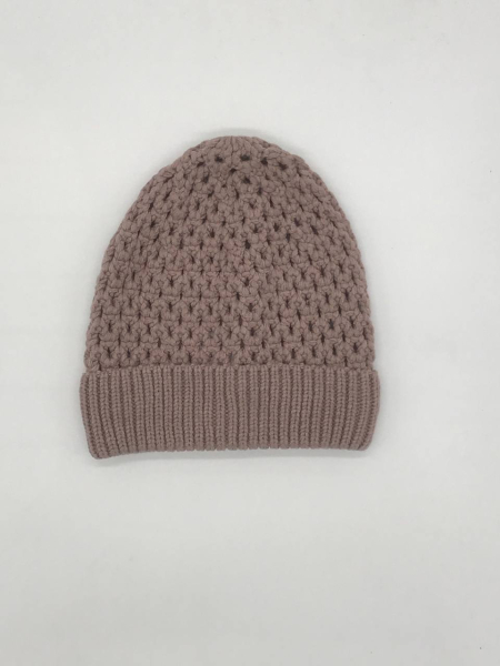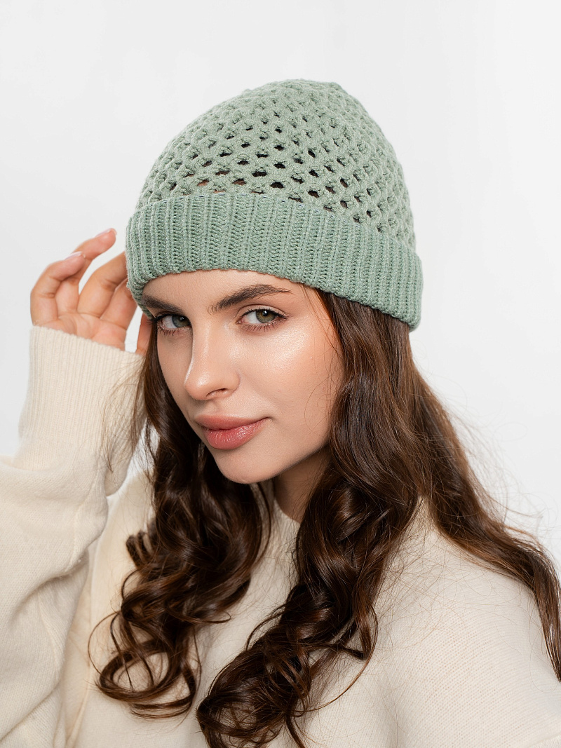 Шапка однослойная из ажурной вязки, с отворотом