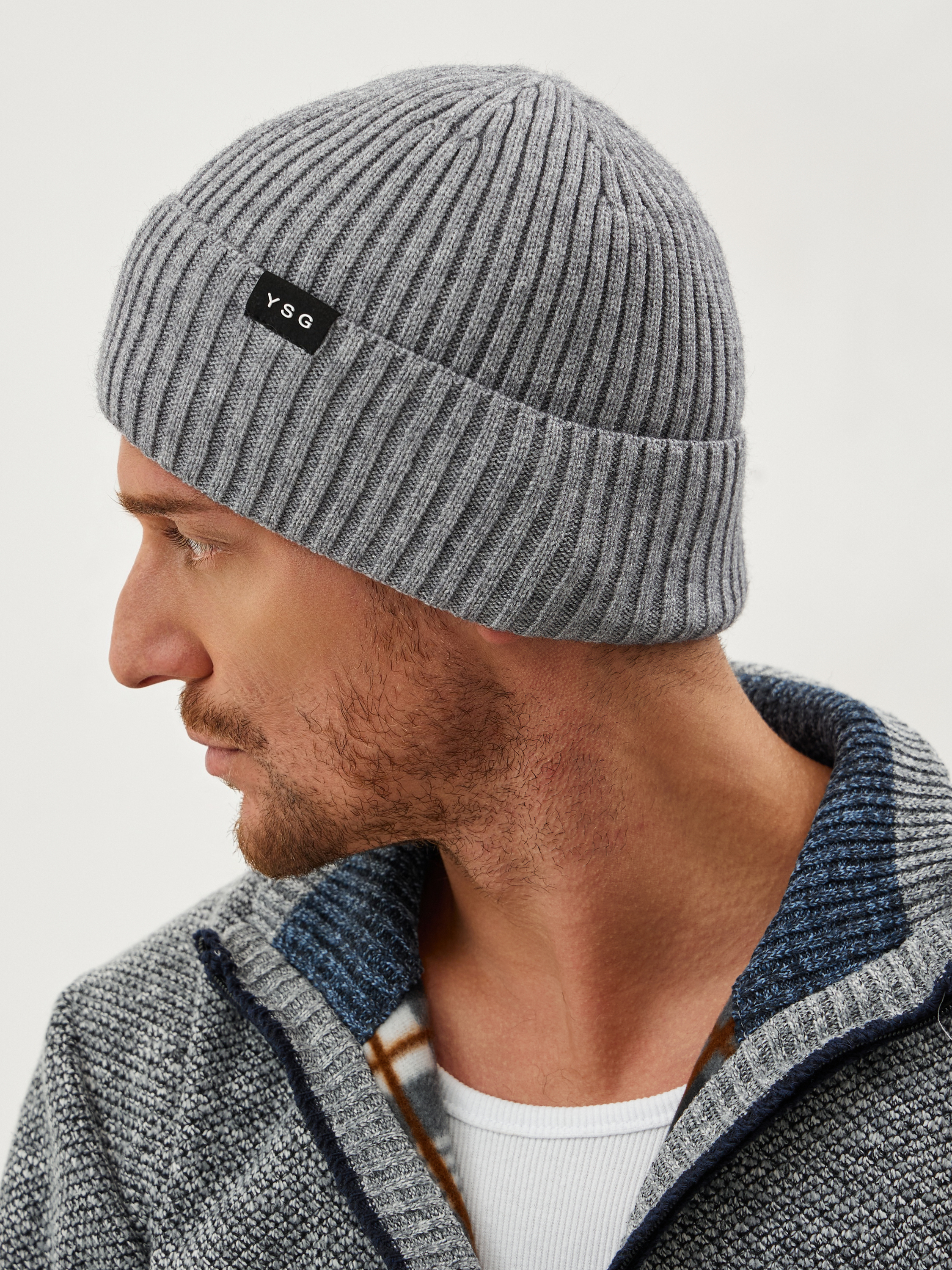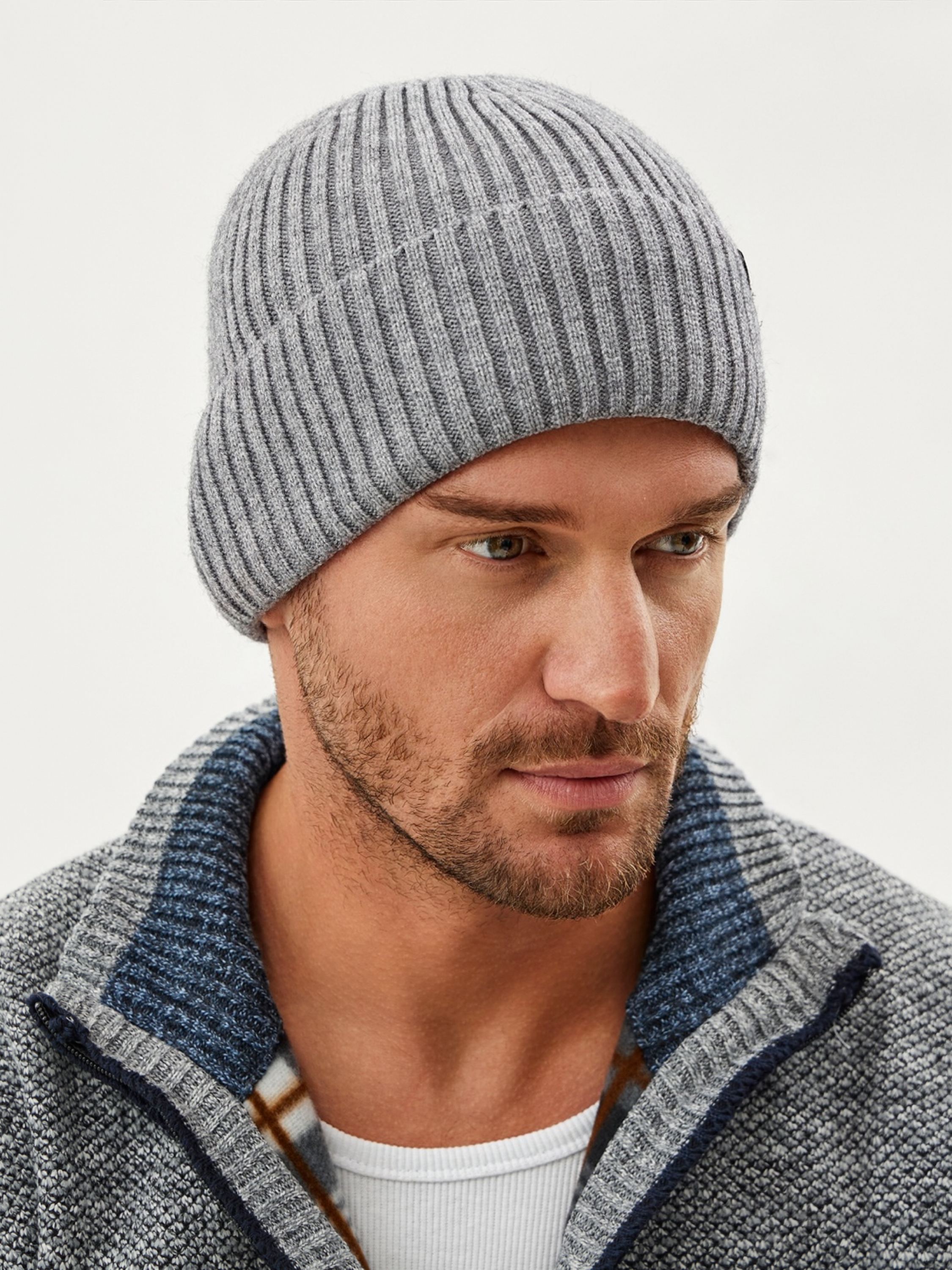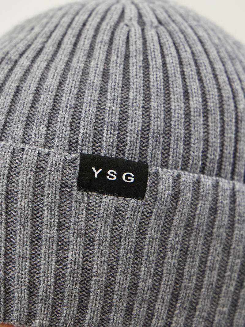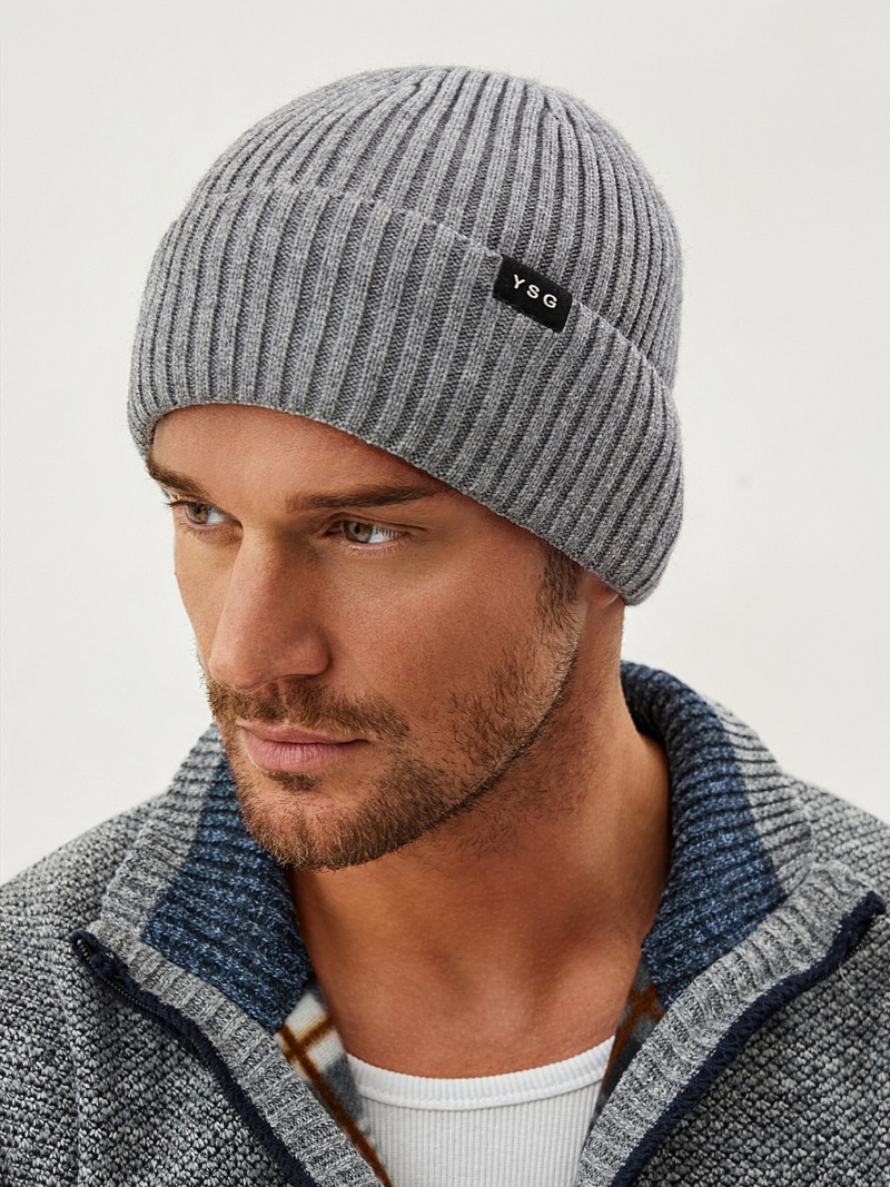 Шапка с отворотом и фирменным декором