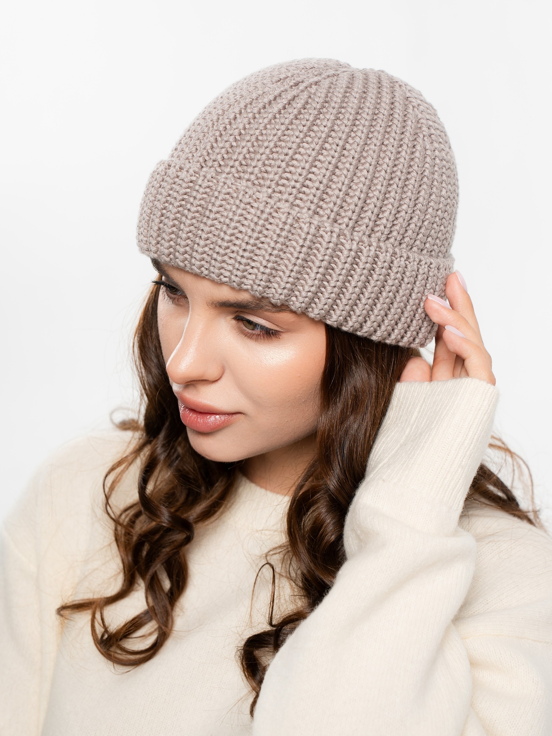 Шапка однослойная с отворотом, с металлическим декорром