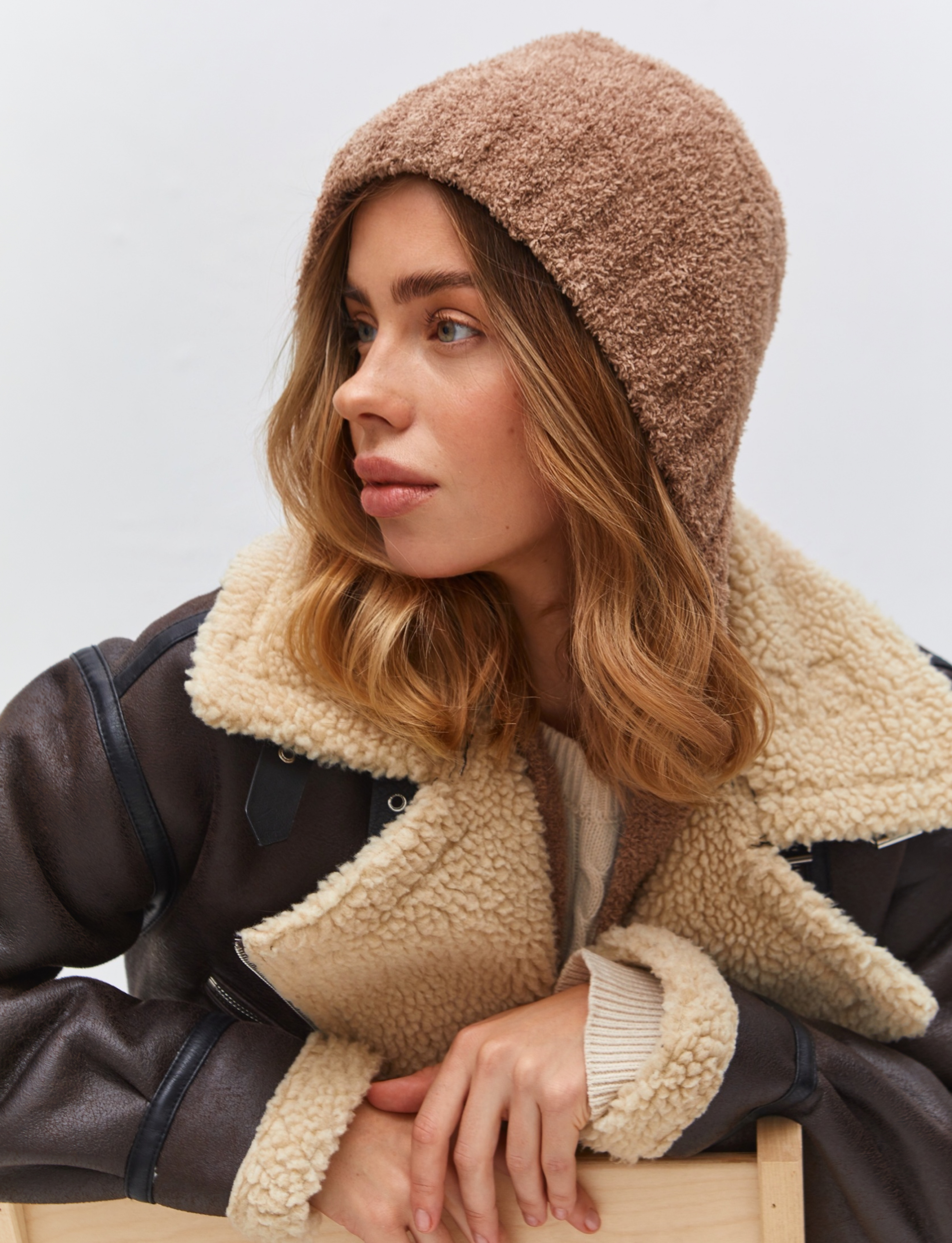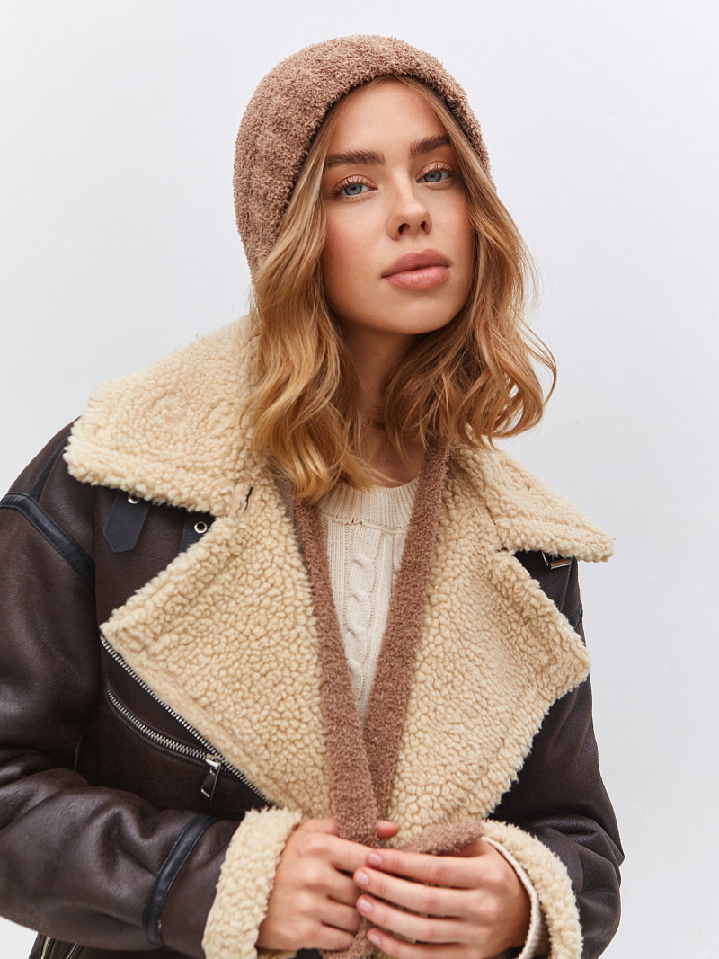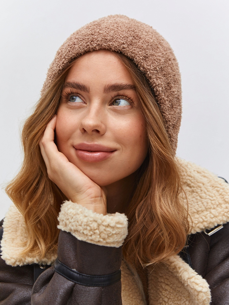 Чепчик одинарный с шерстью мериноса, с завязками. Скромный, лаконичный дизайн.Изделие с плюшем должно быть в вашем образе