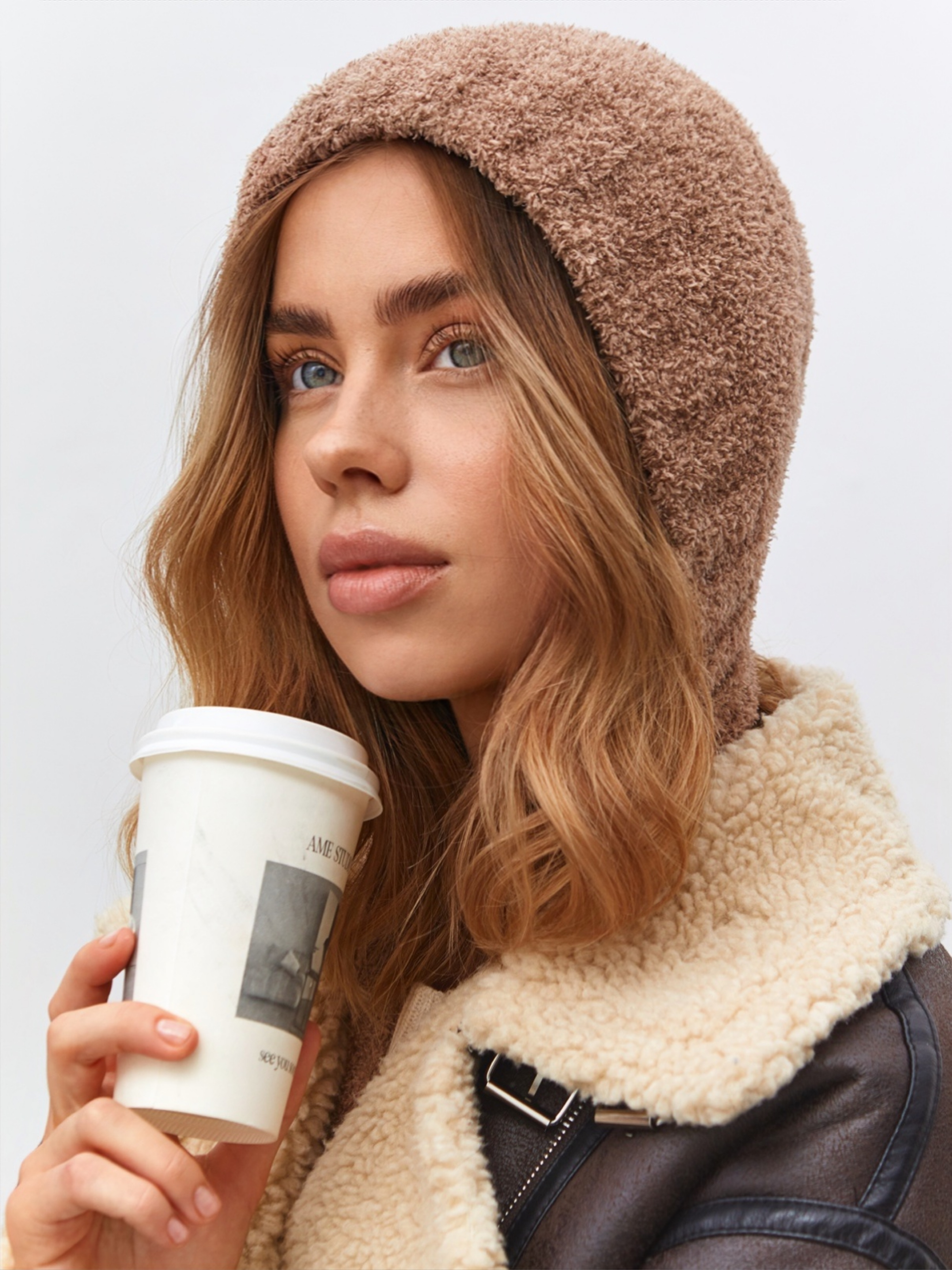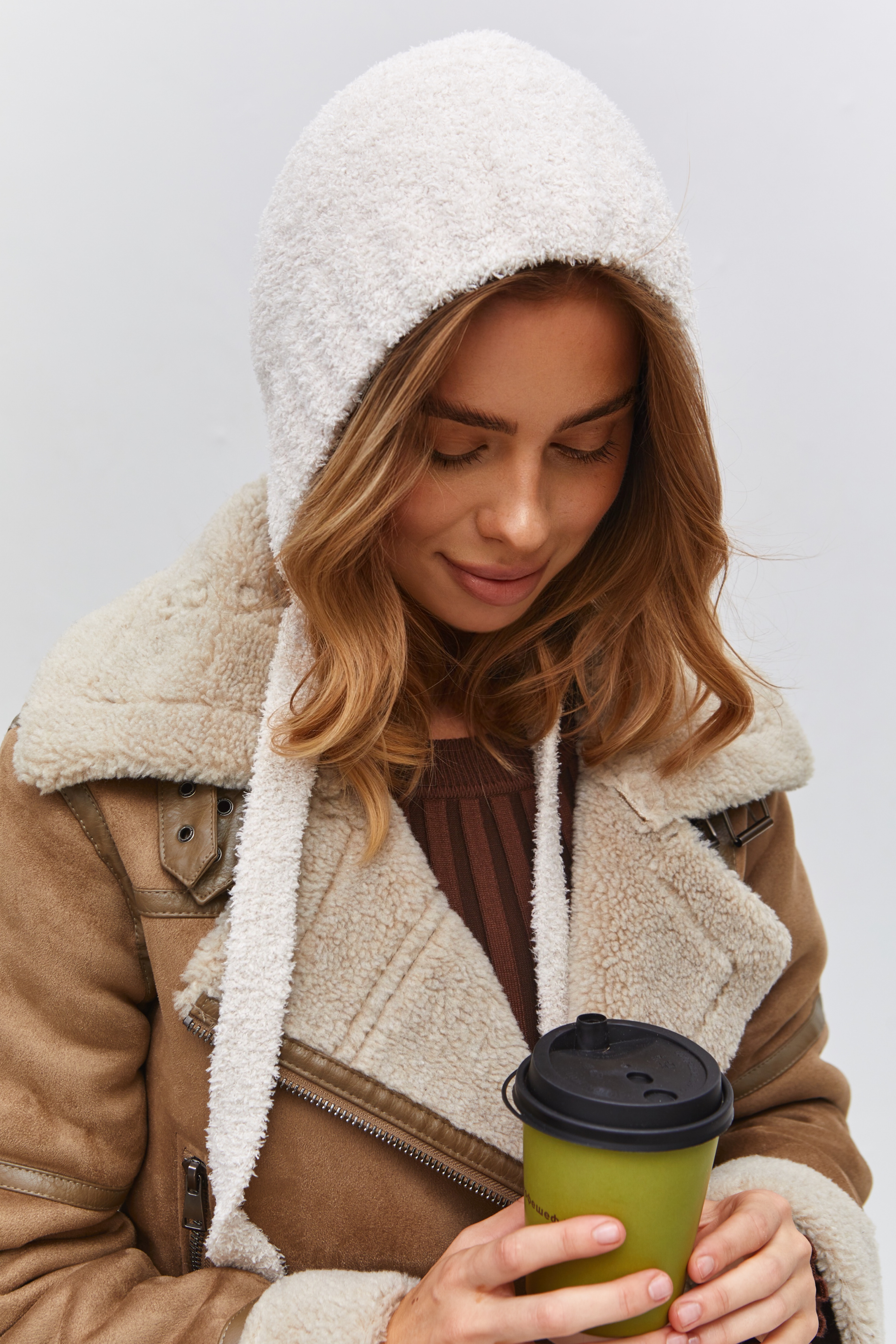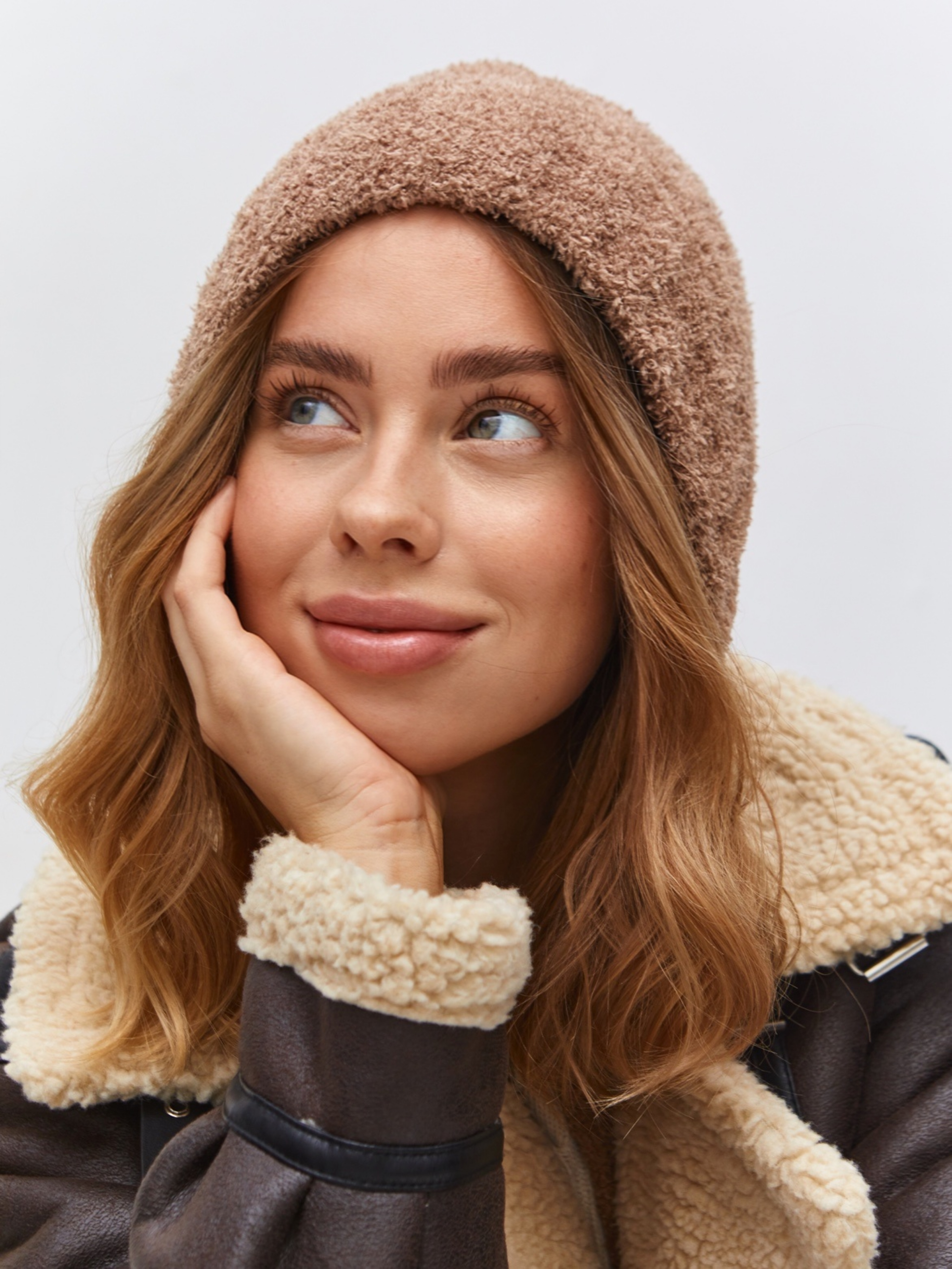 Чепчик одинарный с шерстью мериноса, с завязками. Скромный, лаконичный дизайн.Изделие с плюшем должно быть в вашем образе