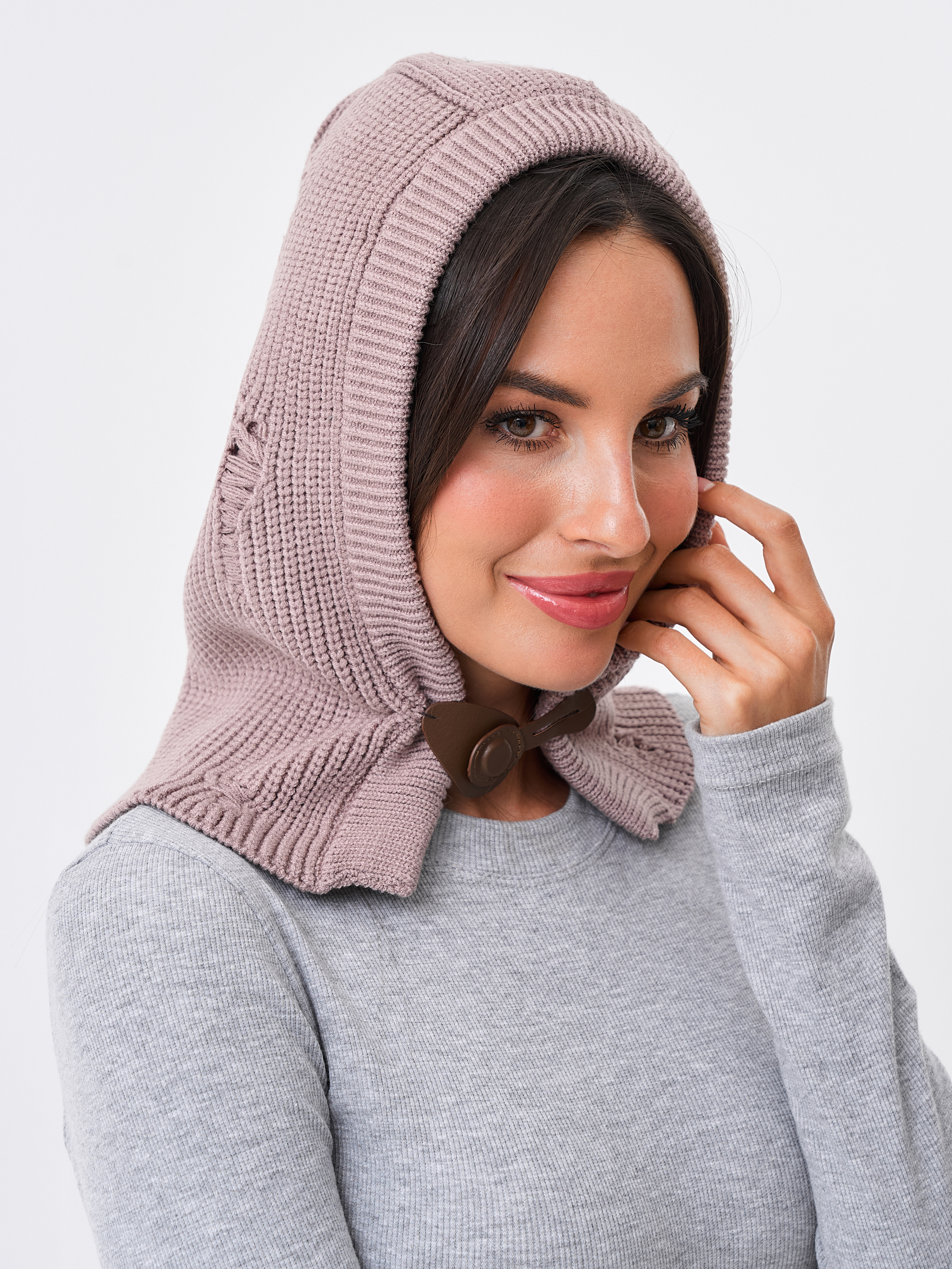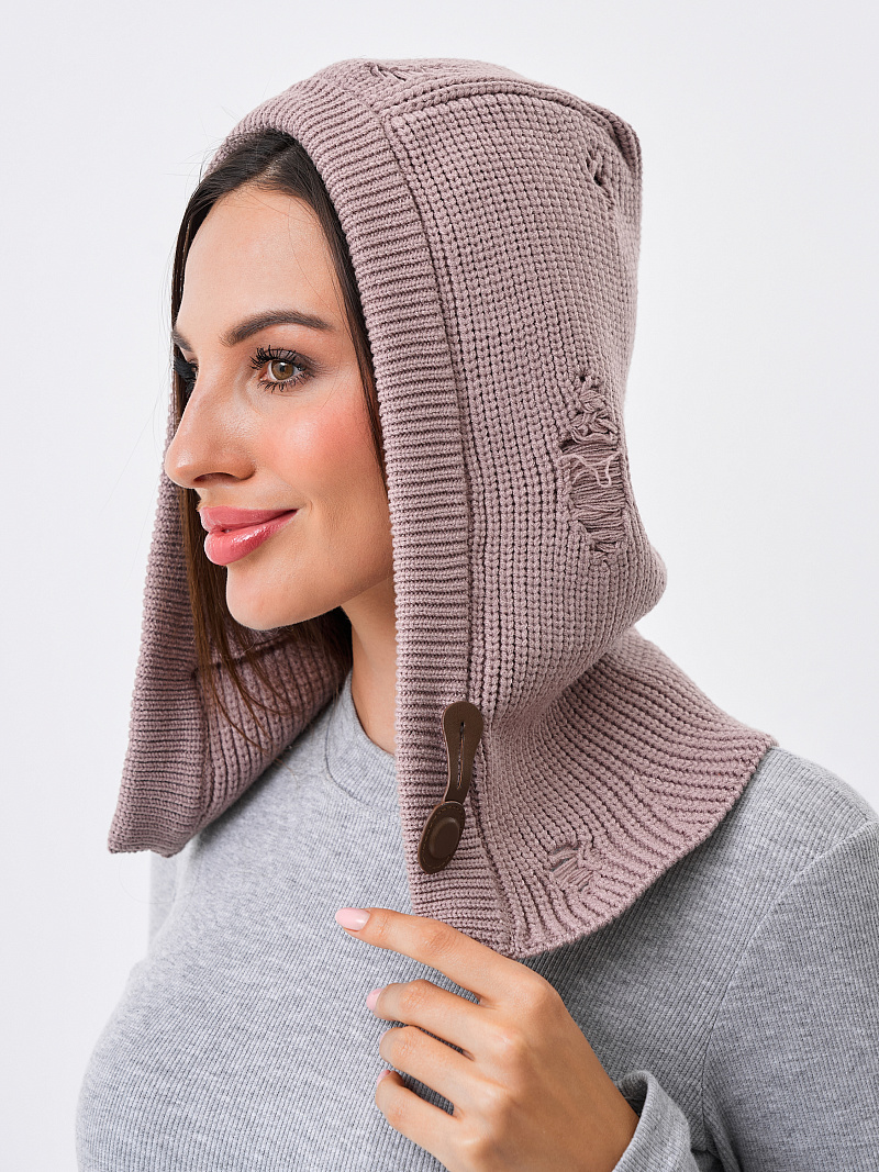 Капюшон двойной с кашемиром, с рваным эффектом, стильная кожаная застежка,без флиса.
