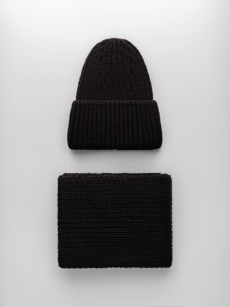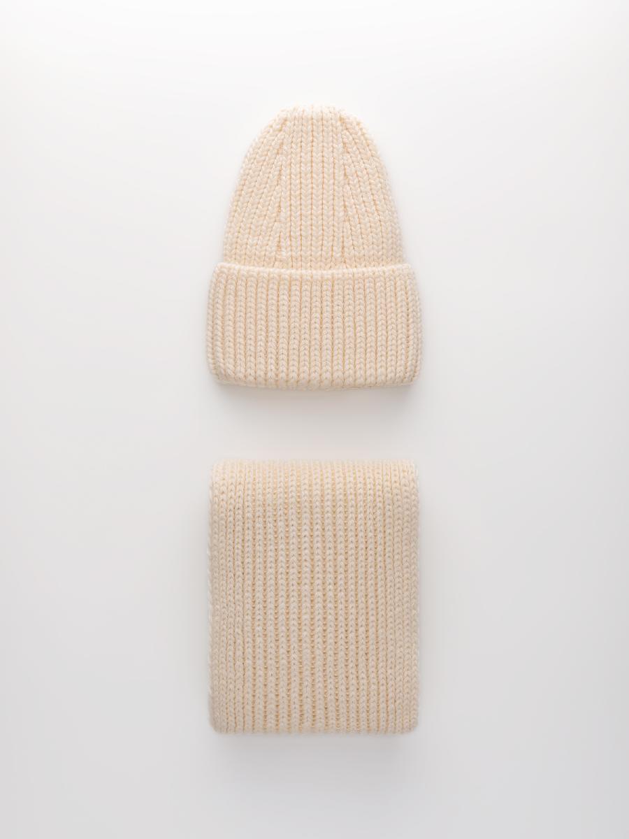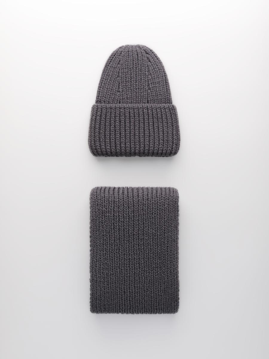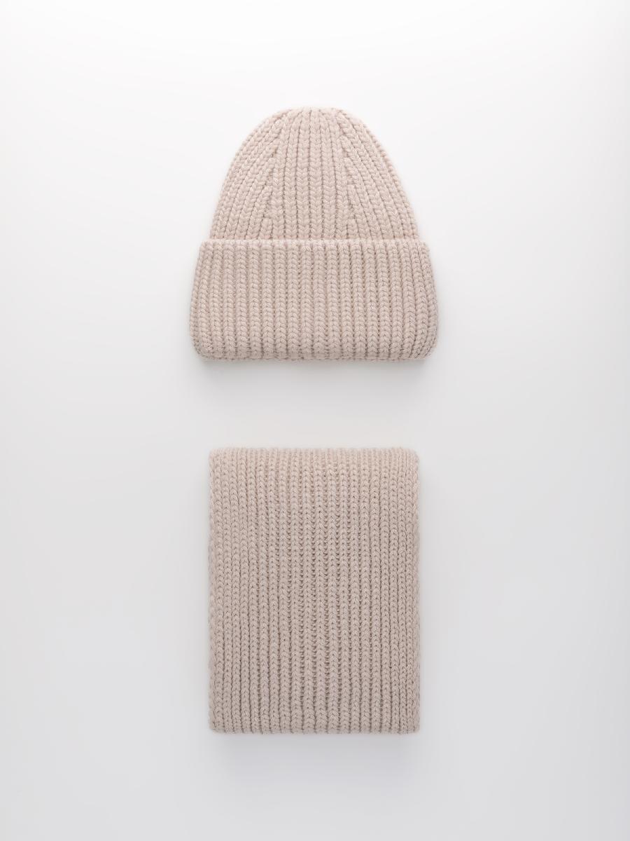 Комплект на флисе с шерстью мериноса. Шапка с контурной макушкой и отворотом, без декора + шарф. Размер шарфа: дл.105см ш.17см