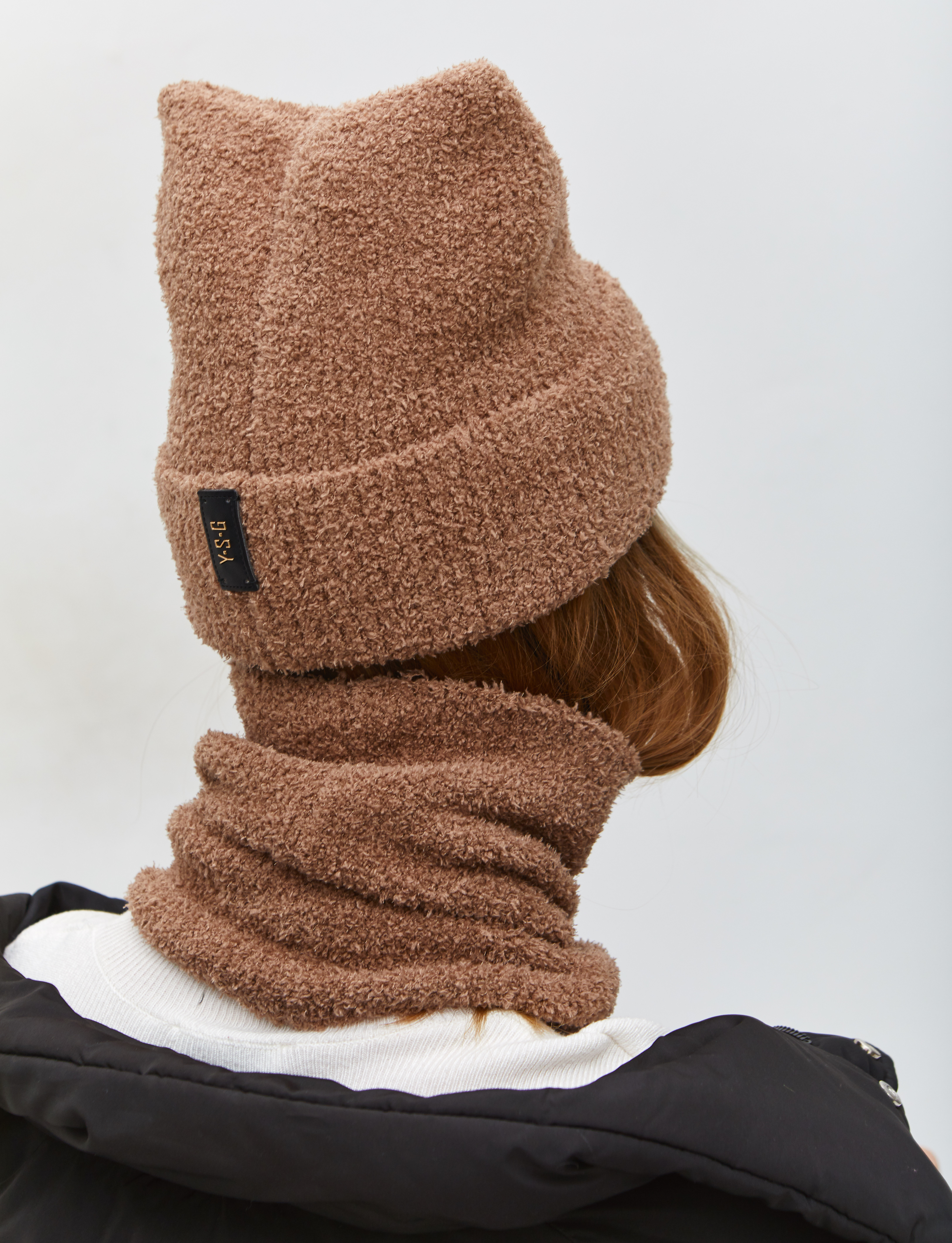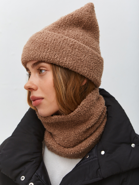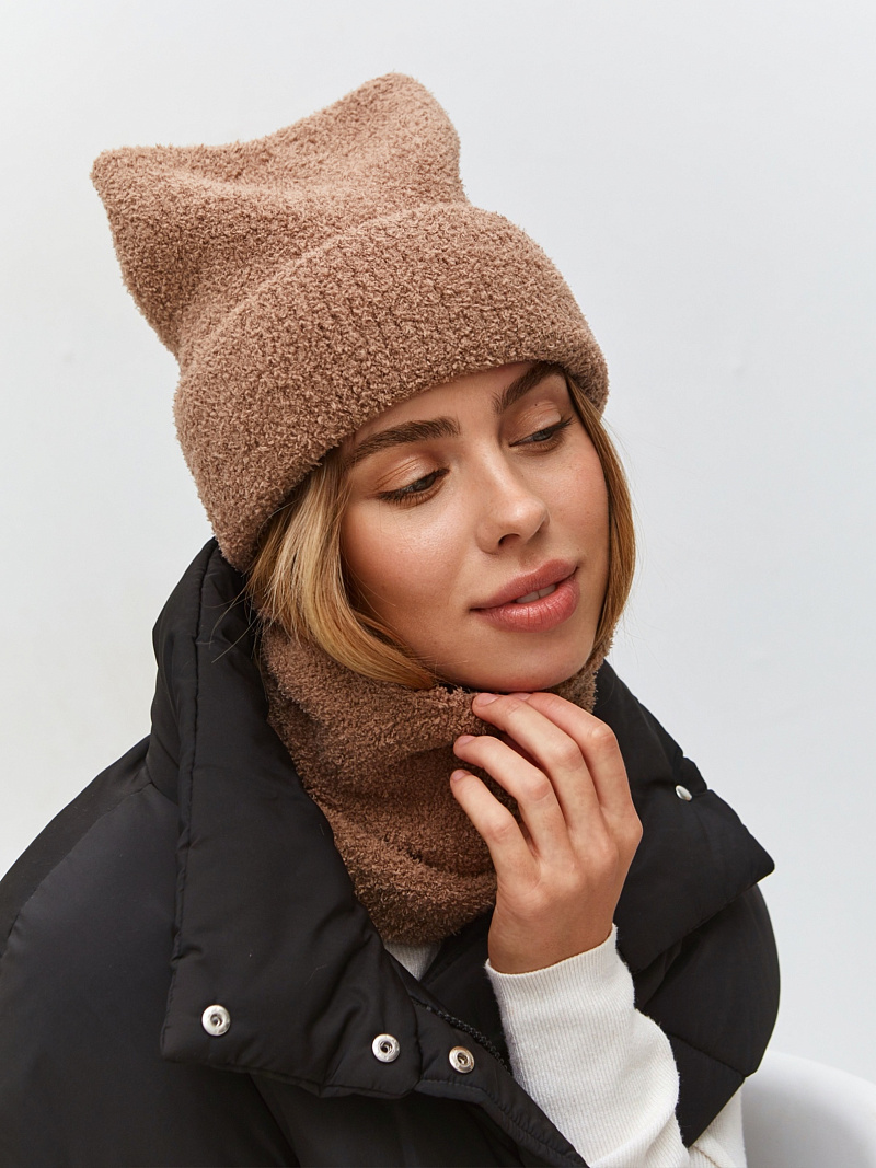 Комплект с шерстью мериноса. Шапка с отворотом, с ушками на макушке, кроенная, без декора, без флиса, кожаный декор. Изделие с плюшем должно быть в вашем образе