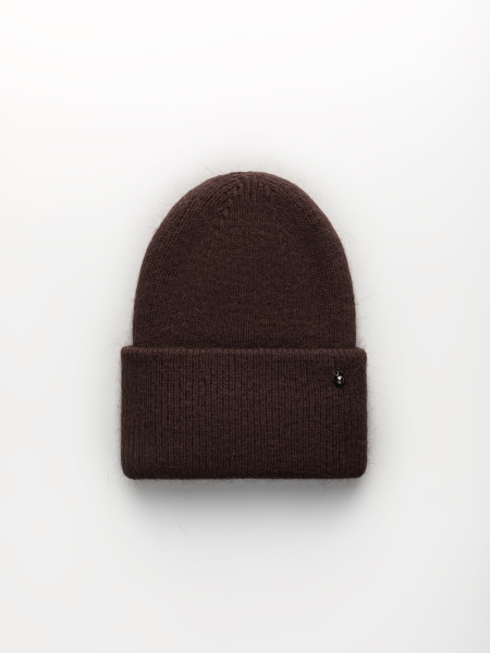 Шапка премиум-класса двойная с ангорой. Классический строгий дизайн, лаконичный металлический декор - подвеска.