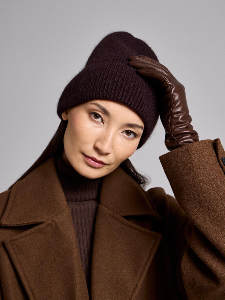 Шапка двойная с пухом енота, с отворотом, без флиса с металлическим декором.