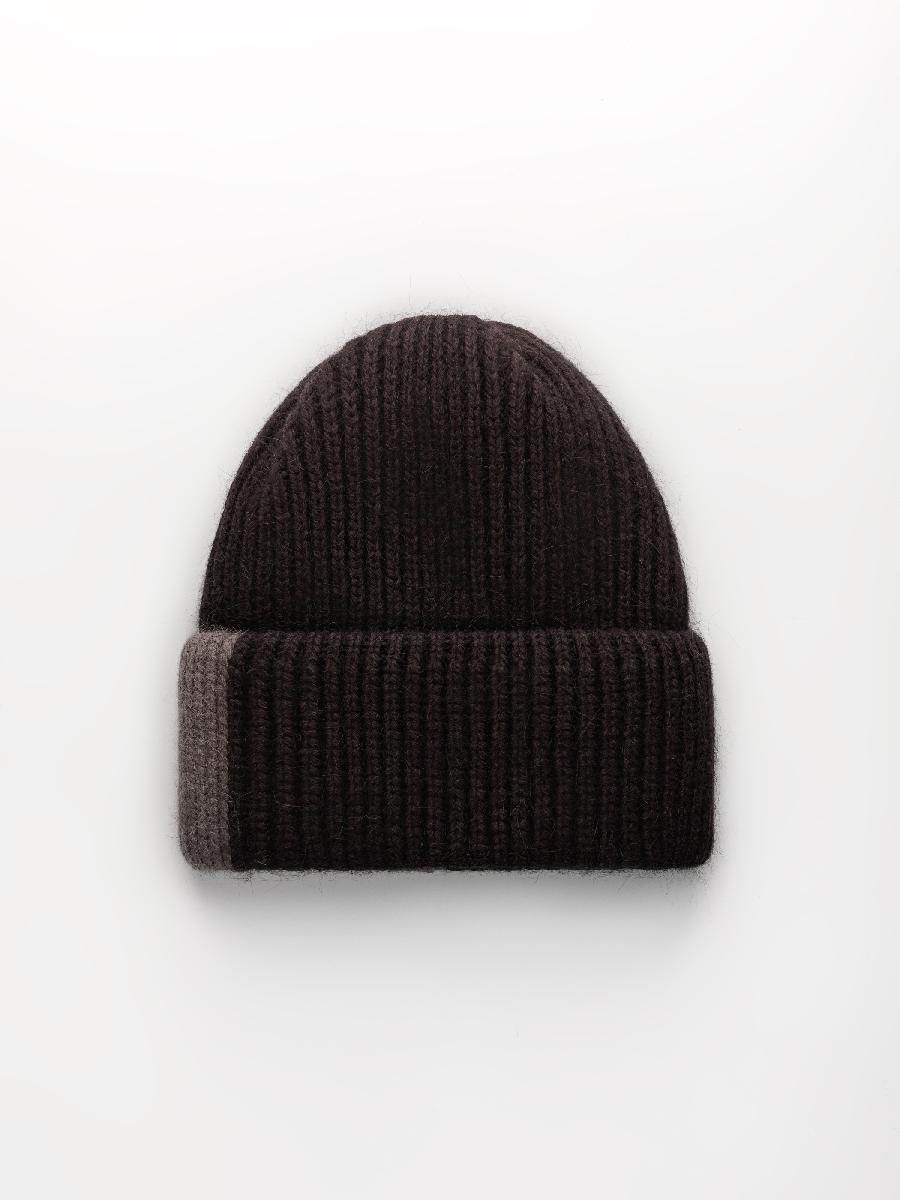 Шапка двухцветная на флисе с ангорой, с отворотом.