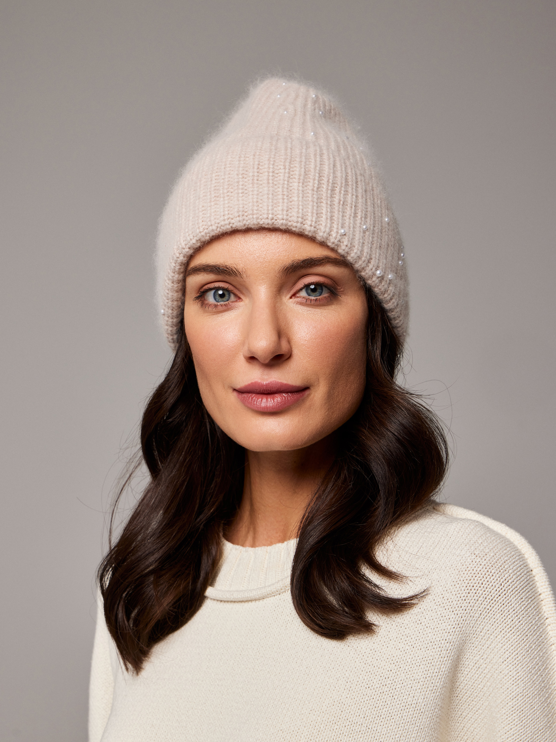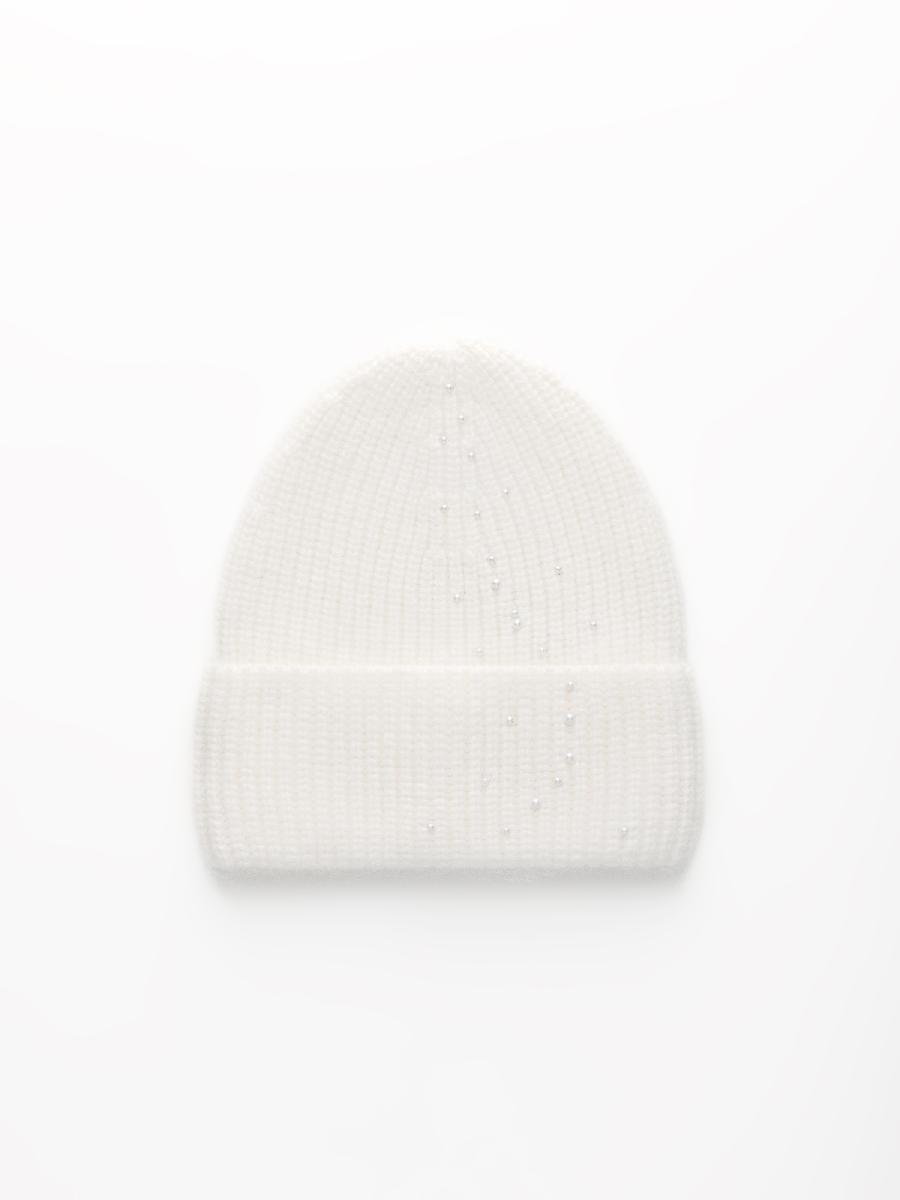 Средний размер вязки, с отворотом, без флиса, без декора, украшения в виде жемчуга.