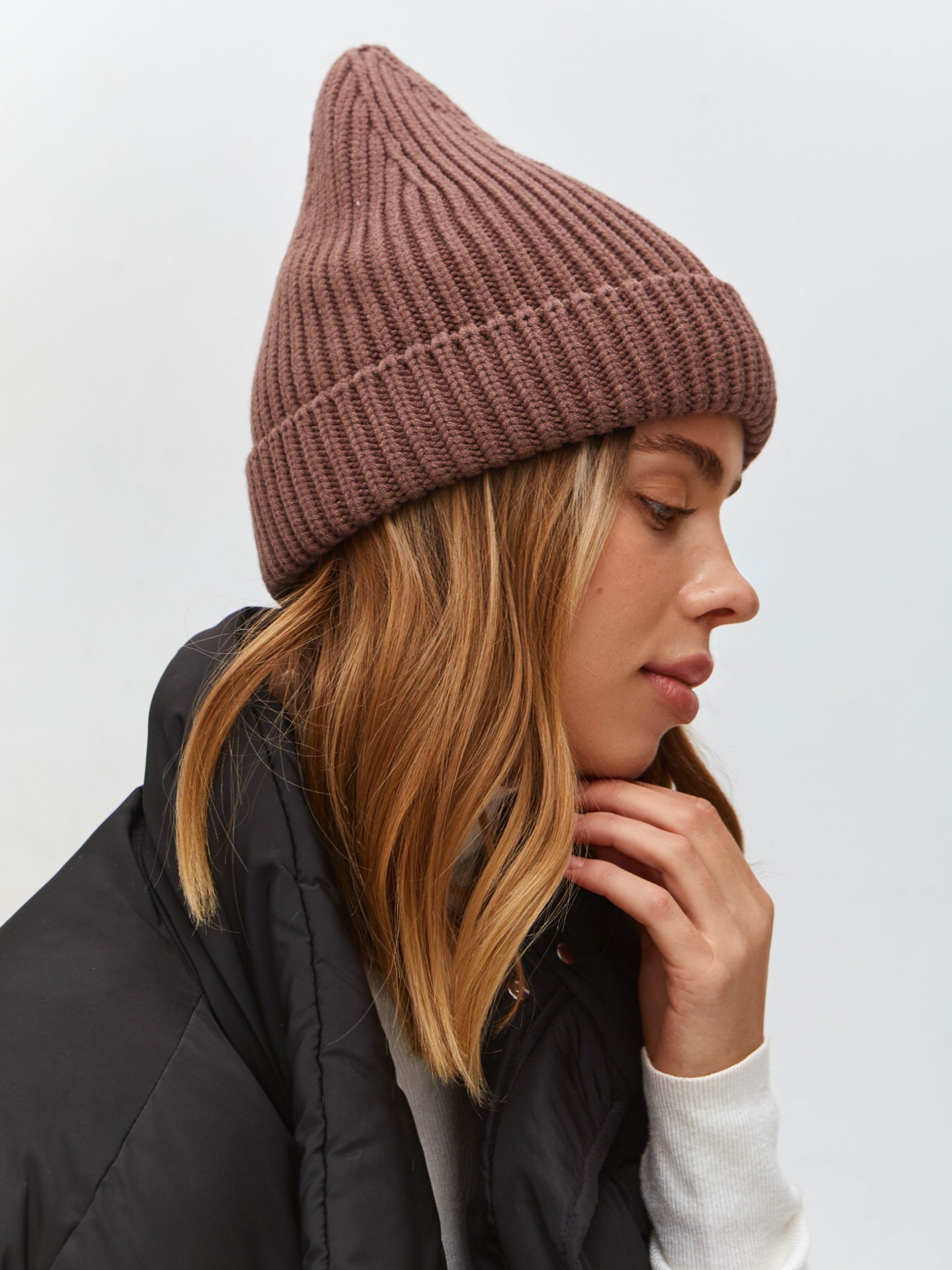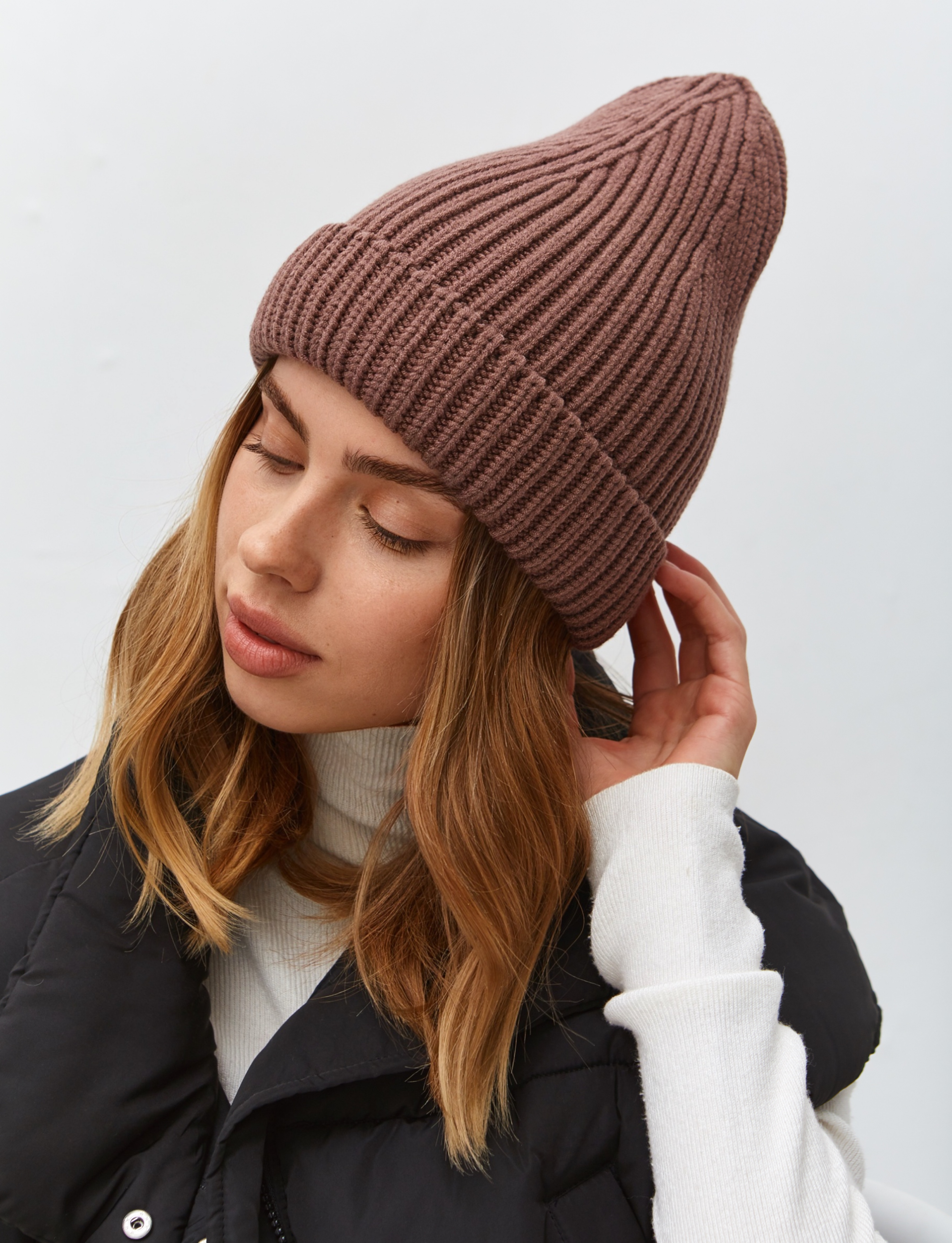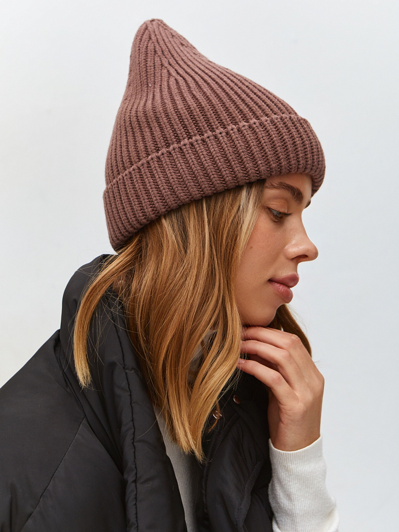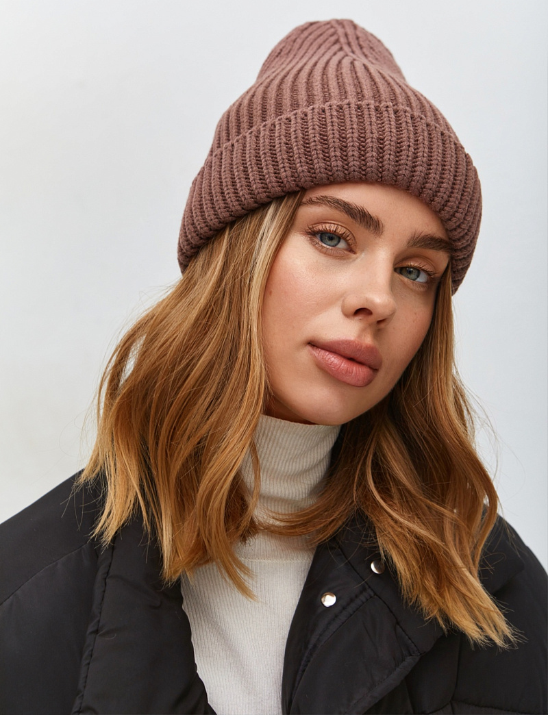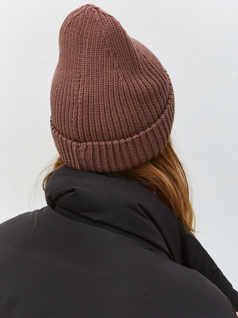 Шапка на флисе с кашемиром, с отворотом, контурной макушкой, с жаккардовым декором.