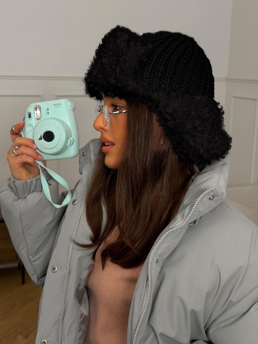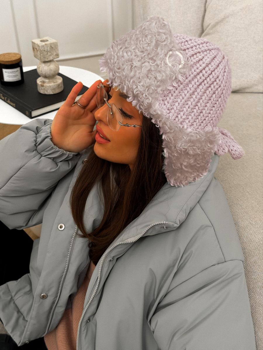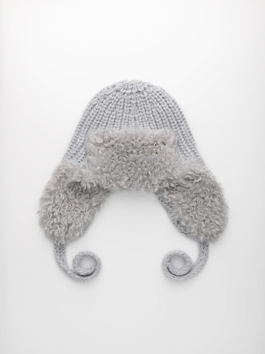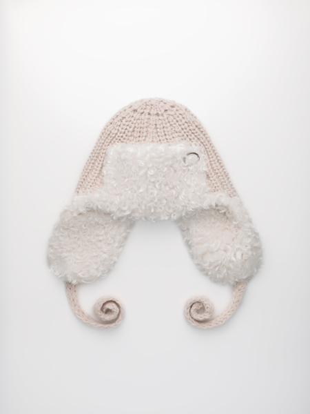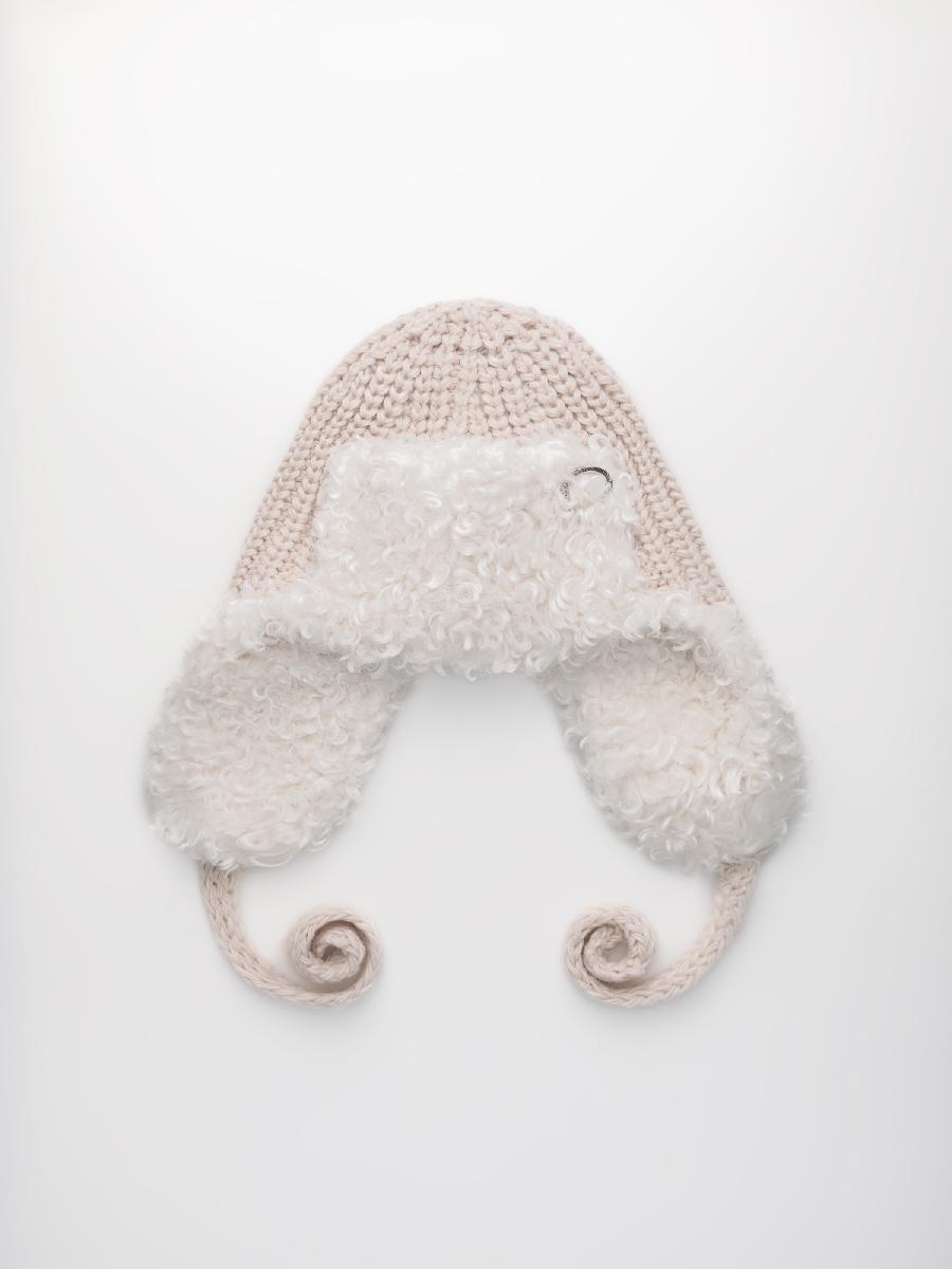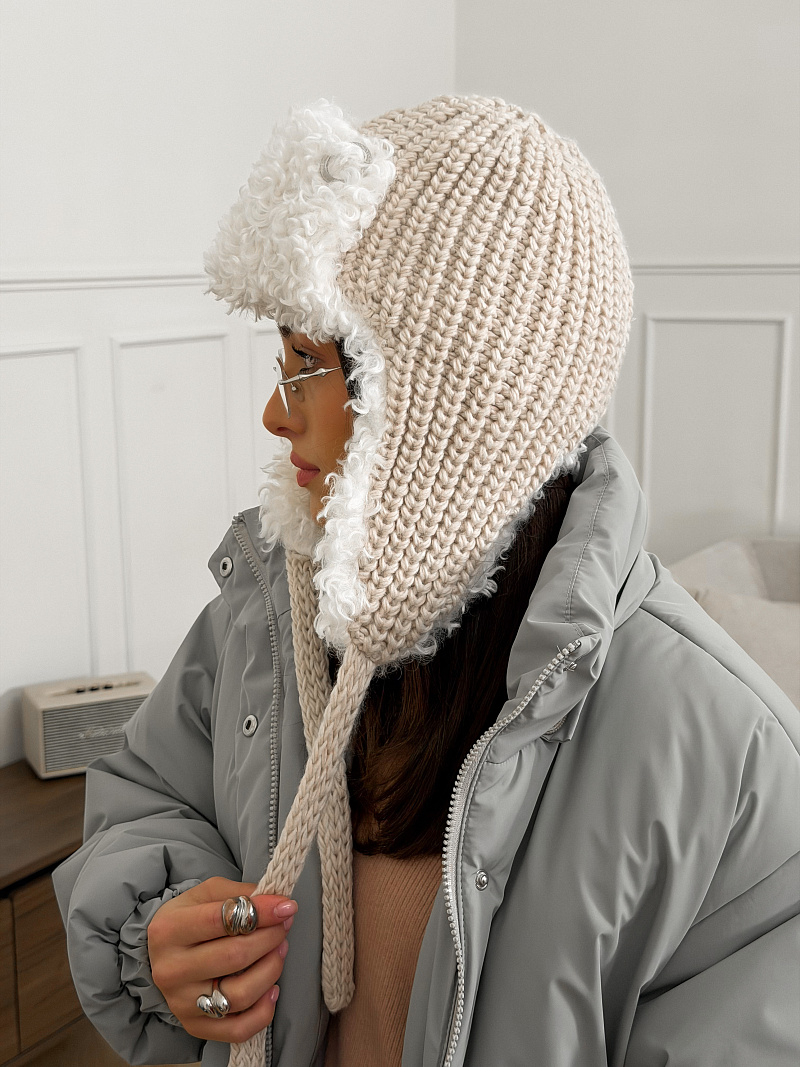 Ушанка на флисе с шерстью мериноса, комбинированная с мехом козы, с завязками. ***Фактура -коза, овца, барашек,каракуль***